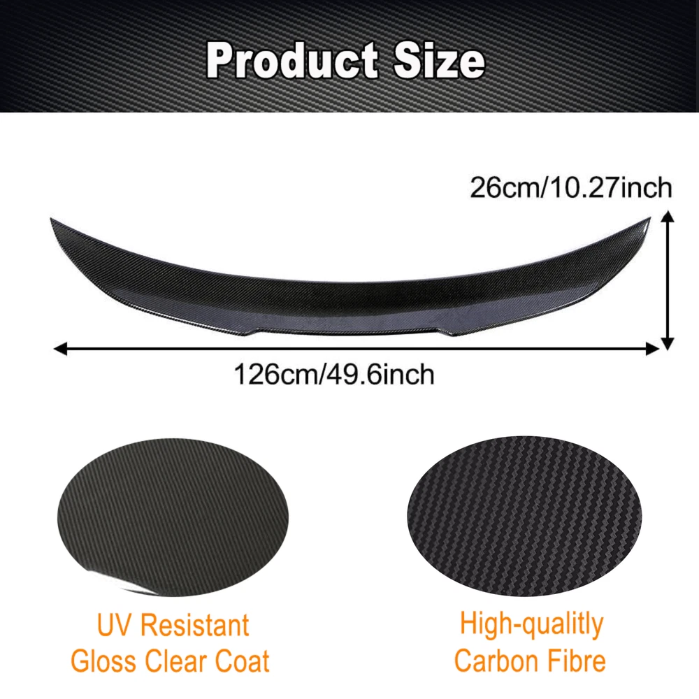 Description: 100% Brand New Extended Spoiler Compatible With 2010-2016 BMW 5 Series F10 PSM Style Duckbill High-Kick Trunk Spoiler Wing At Favorable Price Made of High-quality Lightweight ABS Plastic With Carbon Fiber Finish Increase The Down-Force and Improve Handling Improve Your Vehicle Aerodynamic & Sport Appearance Eazy Installation,No cutting or splicing, Professional Installation Is Highly Recommended. Fitment: 2010-2016 BMW 5 Series F10 PSM Style Specification Condition: 100% Aftermarket Brand New Type:Trunk Spoiler Wing Color: Carbon fiber Material: High-quality Plastic(ABS) Surface Finish:Carbon Fiber Printing Installation Method: Tape, adhesive Placement on Vehicle:Rear, Upper Installation Instruction Included: No Mounting Hardware Included: YESFeatures:durable,eazy Installation No cutting or splicing Packing Included: 1 x Trunk Spoiler Wing (with tape ) On Sep 27, 2024 at 20:51:49 PDT, seller added the following information: On Jan 7, 2025 at 09:53:20 PST, seller added the following information: