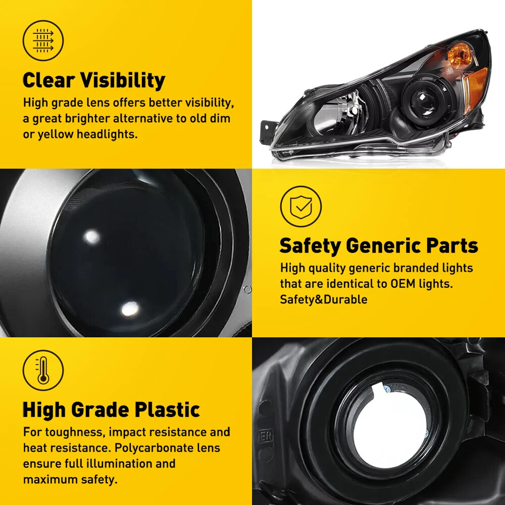 For 2010-2014 Subaru Outback Legacy Projector Black Headlights Lamp Assembly L+R