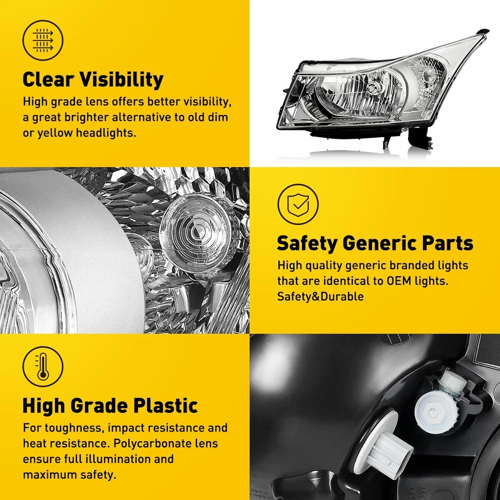 Fit for: 2011-2015 Chevy Cruze 4-Door Sedan 2016 Chevy Cruze Limited Models Only Specifications: OE number: 95900041, 95900042, 95291963, 95291964 GM2502361,GM2503361,GM2502356, GM2503356 Material: ABS+PC (ABS Plastic Housing/Polycarbonate lens) Appearance color: 1.Housing Color: Chrome 2.Lens Color:Clear 3.Reflector Color:White Note: Projector ×(Not include) DRL × (Not include) Bulb × (Not include) Features: *Easy to install: Direct replacement, drilling and cutting are not required. *Superior quality: For 2011 12-2015 Chevy Cruze 4-Door Sedan Chrome Housing Headlights Left & Right Fit for: 2011-2015 Chevy Cruze 4-Door Sedan 2016 Chevy Cruze Limited Models Only Specifications: OE number: 95900041, 95900042, 95291963, 95291964 GM2502361,GM2503361,GM2502356, GM2503356 Material: ABS+PC (ABS Plastic Housing/Polycarbonate lens) Appearance color: 1.Housing Color: Chrome 2.Lens Color:Clear 3.Reflector Color:White Note: Projector ×(Not include) DRL × (Not include) Bulb × (Not include) Features: *Easy to install: Direct replacement, drilling and cutting are not required. *Superior quality: Made of ABS and PC materials with toughness and heat resistance functions to ensure its long service life and durability. *Angle adjustment: Equipped with a headlamp Angle adjustment knob, you can adjust the best Angle of view through the knob. *Suggestion: 1.Please confirm the OE number before purchasing!!! 2.Professional installation is required!!! Packaging include: Headlights*2(Left+Right) Item Specifics Brand AUXITO Housing Color Chrome Placement on Vehicle Front Left Right Lens Color Clear Manufacturer Part Number 95900041 95900042 95291963 95291964 Interchange Part Number GM2502361 GM2503361_2011 2012 2013 2014 2015 Keyword Direct Fit Replacement Headlight Front Signal Lamp Keyword 1 Chrome Headlights Headlamps Left Right Pair PLUG&PLAY Package Include Driver Side & Passenger Side Attention [Compatible 2016 Cruze Limited Models Only] [Headlight] Bulb Low/ High Beam H4 Bulbs (Not Included) SAE DOT Compliant Yes Lens Heavy Duty Polycarbonate Dust and Moisture Protection Yes Return Free Return Shipping on damaged or defective items Headlight Style Factory Assembly Type Composite Lighting Technology Halogen Fitment Type Direct Replacement Bulbs Included No Material ABS PC (ABS Plastic Housing/Polycarbonate lens) Reflector Color White Features *Superior quality *Angle adjustment *Easy to install Packaging include Headlights*2(Left Right) Packaging include Headlights*2(Left Right) Warranty 1 Year Payment Variety of payment methods are accepted, such as credit, debit, gift cards, Apply pay, Google Pay, Paypal and Paypal Credit. Shipping 1. All items will be shipped in 24 hours after receiving your payment . 2. We ship this item to US only via USPS first class mail. It usually takes 3-5 working days to deliver. Returns 1. We offer 60 days return policy. 2. Please contact us if you have any questions with the products . 3. Refund will be sent after we got your returned package. 4. All returned items should be in the original packaging with tracking number. Contact Us We work from Monday - Saturday 9:00AM - 6:00PM, but we will reply once we get your message. There will be delay on response if you send message or E-Mail on Sunday. DESCRIPTION PAYMENT SHIPPING RETURN POLICY CONTACT US Shop Category Store Home LED Headlight ◈ 9005 HB3 ◈ 9006 HB4 ◈ 9007 HB5 ◈ H7 LED Plate Light LED Reverse Light LED Brake Light Rear Bumper Light Tail Light assemblies Car Parts & Accessories ◈ LED Third Brake Light ◈ Other Parts & Accessories Other New List Item 3PCS Camshaft/Crankshaft Position Sensor for Infiniti Maxima 350Z I35 FX35 M35 USD 23.99 AUXITO Smoke LED 3RD Rear Third Brake Stop Cargo Light For 2004-15 Nissan Titan USD 36.99 For 2003-2018 Dodge Ram 1500 2500 LED 3500 License Plate Lights Smoked Lamp Pair USD 15.99 Bumper Bracket For 2013 14-2015 Nissan Altima of Set 2 Front Left & Right Side USD 11.19 Front Rear Right Left Lower Door Molding For Door 2011 Toyota 12-2013 Highlander USD 197.99 Hot Item Rubber Seal Trim Prevent Water Leakage Windshield Sunroof Roof Top Window 10FT USD 12.34 FOR 94-04 MUSTANG PASSENGER or DRIVER SIDE MASTER POWER WINDOW CONTROL SWITCH USD 9.49 Auxito 9005 + H11 Combo LED Headlight 120W 80000LM High/Low Beam 6500K Bulbs Kit USD 46.99 Rubber Seal Trim Prevent Water Leakage Windshield Sunroof Roof Top Window 10FT USD 10.44 AUXITO Combo 4 9005 + H11 LED Headlight Kit Bulbs High Low Beam White 80000LM USD 35.99 Similar Item FOR 94-04 MUSTANG PASSENGER or DRIVER SIDE MASTER POWER WINDOW CONTROL SWITCH USD 9.49 Rubber Seal Trim Prevent Water Leakage Windshield Sunroof Roof Top Window 10FT USD 12.34 AUXITO Grille Garnish TSS Sensor Cover For 2018-2021 Toyota Tacoma TRD PRO BLACK USD 13.29 Rubber Seal Trim Prevent Water Leakage Windshield Sunroof Roof Top Window 10FT USD 10.44 WHITE LED Side Door Light Lamp For Toyota Camry Prius Avalon 4Runner 6000K 12V USD 11.39 Excellent Delivery For 2011 12-2015 Chevy Cruze 4-Door Sedan Chrome Housing Headlights Left & Right Fit for: 2011-2015 Chevy Cruze 4-Door Sedan 2016 Chevy Cruze Limited Models Only Specifications: OE number: 95900041, 95900042, 95291963, 95291964 GM2502361,GM2503361,GM2502356, GM2503356 Material: ABS+PC (ABS Plastic Housing/Polycarbonate lens) Appearance color: 1.Housing Color: Chrome 2.Lens Color:Clear 3.Reflector Color:White Note: Projector ×(Not include) DRL × (Not include) Bulb × (Not include) Features: *Easy to install: Direct replacement, drilling and cutting are not required. *Superior quality: Made of ABS and PC materials with toughness and heat resistance functions to ensure its long service life and durability. *Angle adjustment: Equipped with a headlamp Angle adjustment knob, you can adjust the best Angle of view through the knob. *Suggestion: 1.Please confirm the OE number before purchasing!!! 2.Professional installation is required!!! Packaging include: Headlights*2(Left+Right) Item Specifics Brand AUXITO Ho