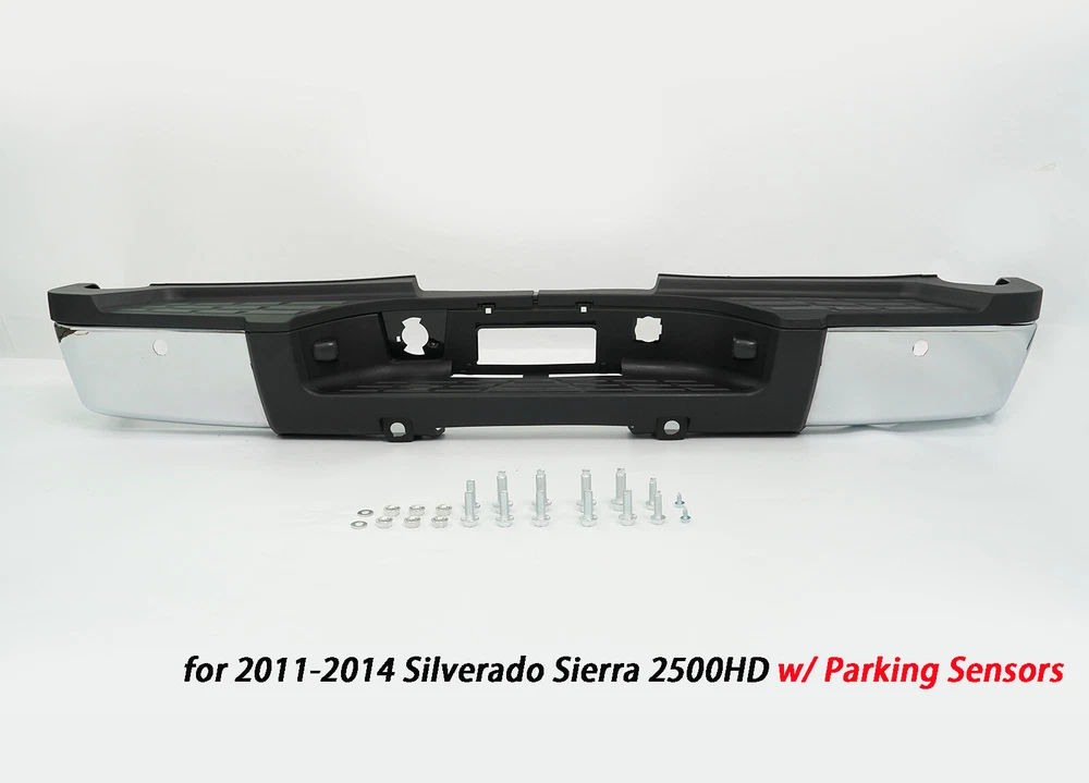 Fitment: For 2011-2014 Chevrolet Silverado 2500 HD 3500 HD For 2011-2014 GMC Sierra 2500 HD 3500 HD For Models With Park Assist Sensors Details Placement on Vehicle:Rear Color:Chrome Material:Steel Package Includes: 1*Rear Bumper Assembly