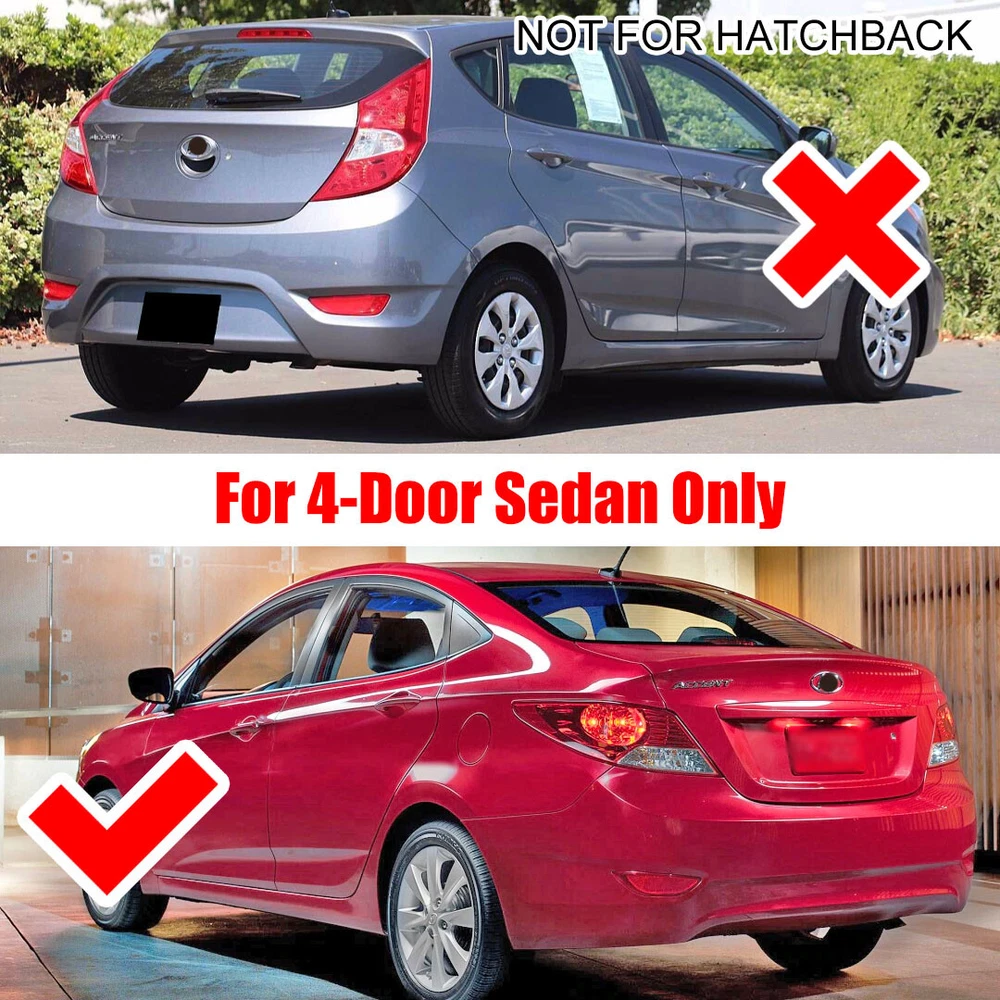 Product Description Brake Light / Parking Light Unlock Welcome Light Turn signal Light Specification: Lens Color: Red Placement of Vehicle:Rear Material: Plastic and PC Lens Light Source:SMD LED Voltage: DC12V Long lifespan:15000 + hours 4-Functions: Brake light, Parking light, Dynamic Turn Signal, Dynamic Unlock Welcome Light Features: LED Tail Light provides you with a decisive safety leap in road traffic and helps prevent 58% of accidents. Super bright LED, energy saving, long life,over 50000 working hour. High temperature resistant, more security and stability. Shake-proof, dustproof, waterproof, and corrosion resistant. Need to wire it to the tail lights!!! Fitment: For Hyundai Accent Sedan 2012-2017 Note: Not Fit Hatchback Model Please check our proudct shape and size is the same as your original light before you order! Package included: 2x LED Rear Bumper light Wiring Instruction: You need to wire these light to the tail light #1 Black Wire: Negative #2 Green Wire: Driving / Parking Light #3 Red Wire: Brake Light #4 Yellow Wire: Turn Signal LIght powered by You may also like For Hyundai Elantra Sedan 2024+ Mud Flaps Splash Guard Mudguard Fender Set Black 25.64 USD 26.99 USD Free shipping 5% off 4PC Mud Flaps Splash Guard Mudguard Fender For 2021-2023 Hyundai Elantra Sedan 24.06 USD 25.33 USD Free shipping 5% off 4PC For Hyundai Santa Fe 2019-2023 Front Rear Mud flap Slash Guard Mudguard Set 33.24 USD 34.99 USD Free shipping 5% off 8PCS Roof Rack Rail End Protective Cover Shell Cap For Hyundai Tucson 2004-2008 44.64 USD 46.99 USD Free shipping 5% off
