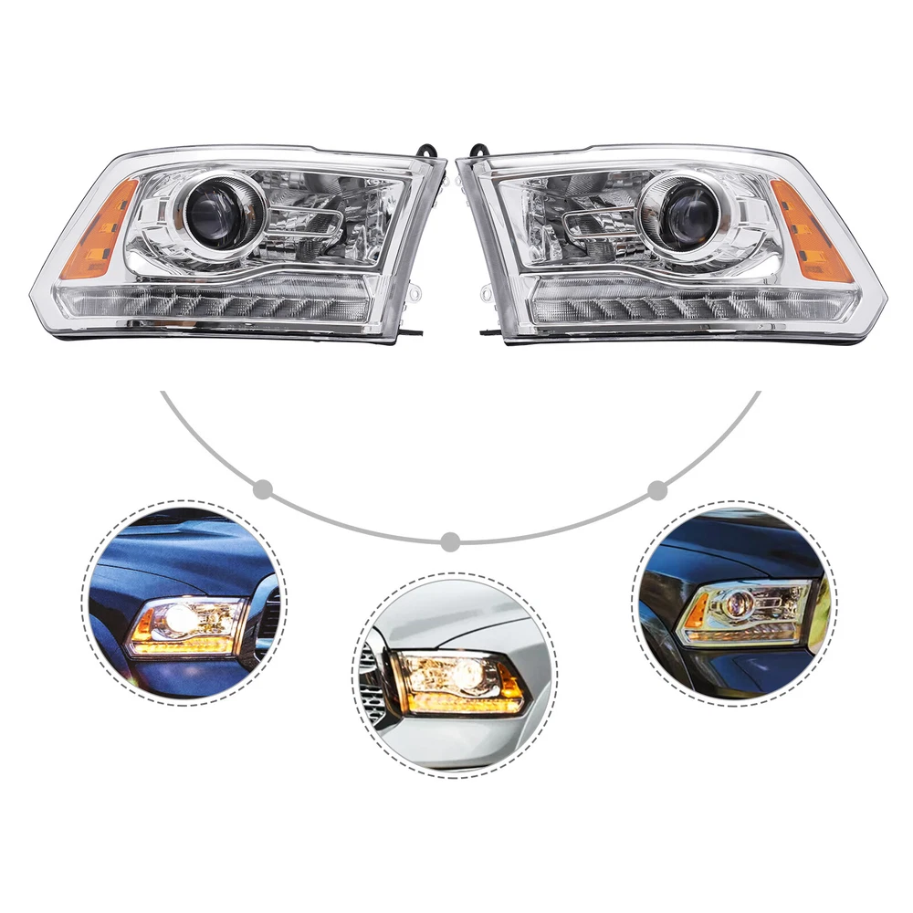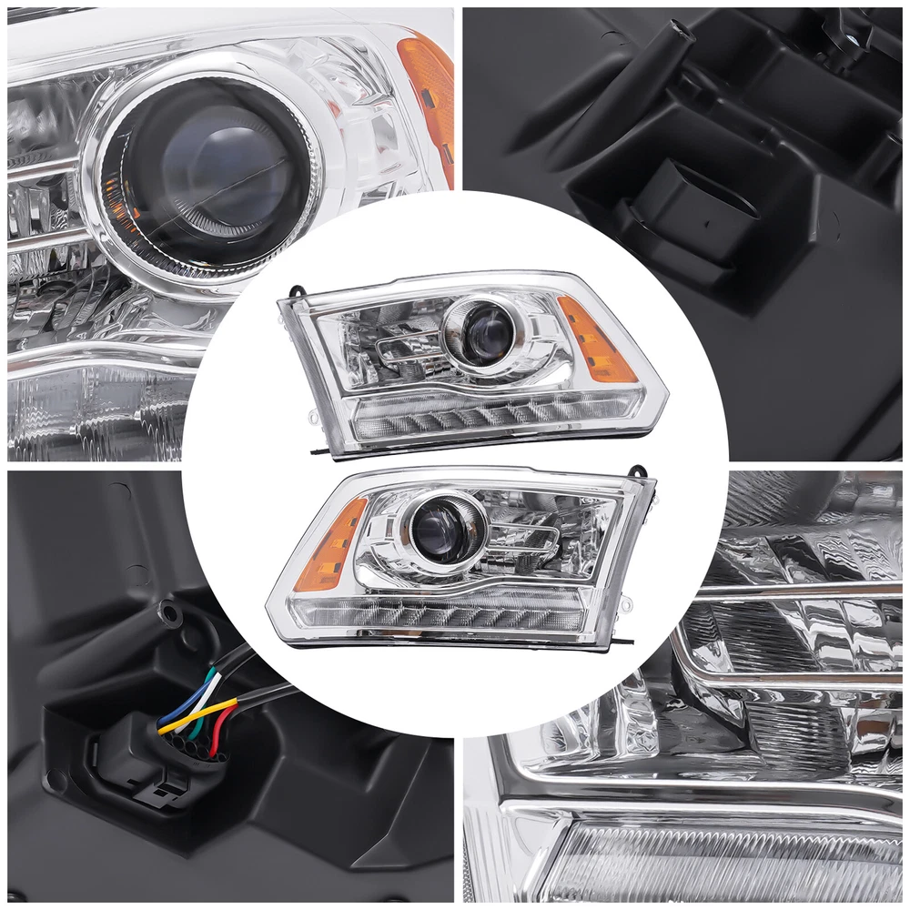 Factory Projector Headlights with LED DRL For 2013-2018 Dodge Ram 1500/2500/3500 Headlights Halogen w/ LED DRL Left & Right Side For 2013-2018 Ram 1500 2500 3500 Specifications OEM: CH2502245, CH2503245, CH2502244, CH2503244 Manufacturer Part Number: CH2502245, CH2503245, CH2502244, CH2503244 Interchangeable Part Number: 68093220AD, 68276122AC, 68324932AD, 68093217AD, 68324941AD, 68093216AD, 68324940AD Applicable Models: 2013-2018 Ram 1500 2500 3500, 2019 Ram 1500 Classic Condition: New Material: PP-TD40 Lens Color: Clear Housing Color: Chrome Working Voltage: 12V Light Source Type: Halogen, LED High Beam Type: 9006 (Included) Low Beam Type: 9005 (Included) Turn Signal Type: LED (Included) Side Marker Lamp Type: LED (Included) LED Daytime Running Light: Yes Installation Position: Front, Left, Right Way of Use: Direct Replacement Assembly Method: Closed Gross Weight: 7kg/ 15.43 lbs Net Weight: 6.5kg/ 14.33 lbs Package Size: 65*50*26cm/ 25.59*19.69*10.24in Key Highlights Good Compatibility: This product is a customized product, specially customized for the 2013-2018 Ram 1500 2500 3500 and 2019 Ram 1500 Classic. So it can be compatible with the adapted models. Good Customer Service: Communication is the best way to solve problems. If you encounter any problem after purchase, please contact us in time before opening or unpacking the box. We will do our best to solve the problem for you. High-quality Material: This product is made of high-quality PP-TD40, with high hardness, strong compression resistance , and long service life. Highlights Brand New, With High Quality Direct Replacement Trouble-free Installation Stylish Appearance Strong and Durable Exquisite Workmanship Easy to Clean Stable Performance Long Service Life Fits (As a Reference) For 2013-2018 Ram 1500 2500 3500, 2019 Ram 1500 Classic OEM Part Number: CH2502245, CH2503245, CH2502244, CH2503244 Package Included 1 Pair x Left & Right Headlamps Notes The product is compatible with factory projector headlight models only, and not w/ dual & quad beam headlight models. We strongly recommend professional installation. Please contact us if you have any questions. Please allow the slight color difference caused by the shooting light and 1-3cm error due to manual measurement, and make sure you do not mind before you place the order. Payment Delivery details Terms of sales About us Contact us Payment We accept ebay payment 。 Fees such as import duties, taxes are not included in the item price or shipping costs. These charges are the buyer's responsibility. Delivery details Shipping: 2-9 working days to: USA Terms of sales We maintain high standards of excellence and strive for hundred percent customer satisfaction. Feedback is very important to us. We hope that you contact us immediately before you give neutral or negative feedback, so that we can address your concerns. It is impossible to address issues if we do not know about them! About us Your satis faction is our ultimate goal. We work hard to earn your trust and future business. Our certified technicians have tested each item before shipping. The unit comes with 1 year limited warranty on all manufacturing defects. a) If you receive a defective item, you may return it or ask for a discount. Please contact us within 14 days after you receive the package. b) What you returned must be intact and in its original packaging as re? u. Customer is responsible for shipping costs of the returned item. c) We will cover the cost of shipping back t with the shipping rate indicated in the registration page. We will send you a new unit or refund the full payment you paid. Thank you. Contact us Business Hour Business Hour: Monday To Friday: 8:30 AM to 5:00 PM (Beijing China time) Due to time zones, our reply to your questions may not be immediately. But within above working time, we will reply your email within 24 hours. If it's non-workdays, please kindly be patient and wait till Monday. Please contact us with ebay message. Please feel free to contact us if you have any questions. Monday To Friday: 8:30 AM to 5:00 PM (Beijing China time) Due to time zones, our reply to your questions may not be immediately. But within above working time, we will reply your email within 24 hours. If it's non-workdays, please kindly be patient and wait till Monday. Please contact us with ebay message. Please feel free to contact us if you have any questions. Feature 1 Great Durability,Exquisite Appearance,High-quality Features stable performance Bundle Description no * Feature * Nice and Practical, High Quality Packaging Feature * Durable Bulb Shape Code / Type Headlight Assembly Manufacturer Warranty 3 Years Number of Bulbs / Universal Fitment No Country/Region of Manufacture Unknown !Features Compact Design,Unique Appearance,High quality Feature 2 Fast shipping UPC Does not apply Highlights Compact Design,Unique Appearance,high reliability Shipping Note Can not ship to Puerto Rico/Alaska/Hawaii Service: √Any problem, please contact the seller√ Certification DOT, SAE Assembly Type Composite Brand Unbranded Placement on Vehicle Front, Left, Right Applicable Models 2013-2018 Ram 1500 2500 3500, 2019 Ram 1500 Classic Housing Color Chrome OE/OEM Part Number CH2502245, CH2503245, CH2502244, CH2503244 Lens Color Clear Manufacturer Part Number CH2502245, CH2503245, CH2502244, CH2503244 Interchange Part Number 68093220AD, 68276122AC, 68324932AD, 68093217AD, 68324941AD, 68093216AD, 68324940AD Items Included Bulbs Light Source Type Halogen, LED Lighting Technology Halogen Material PP-TD40 Working Voltage 12V High Beam Type 9006 (Included) Low Beam Type 9005 (Included) Turn Signal Type LED (Included) Side Marker Lamp Type LED (Included) LED Daytime Running Light Yes Assembly Method Closed Light Color Cold White Way of Use Direct Replacement