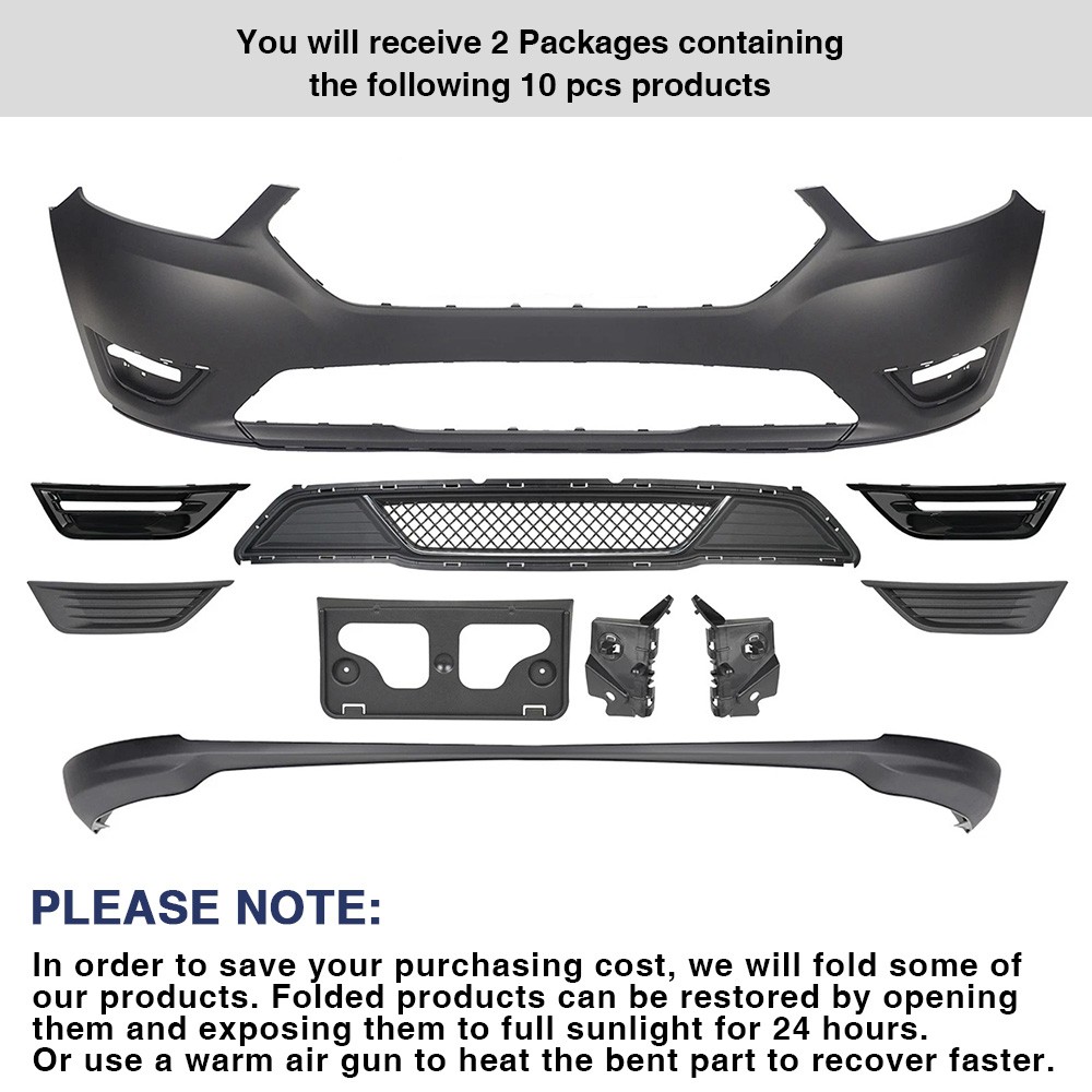 100% brand new in factory original package. Made from high grade OE comparable materials to withstand rough road wear and the test of time. An excellent replacement / accessory for your vehicle,No Modification needed.The quality is the same as the OEM. Direct Replacement. Perfect fitment. Give your vehicle a new style and appearance. Fitment: For 2013 2014 2015 2016 2017 2018 2019 Ford Taurus SE, SEL, Limited --If you are not sure if the item fits your vehicle ,please contact us first and provide the VIN Number and Picture of your vehicle , so we can check it for you, thanks. Attention: Please note that our products are delivered by folded. Once you receive the product, you can restore it according to the reference picture. The fold marks will disappear and will not affect the appearance or normal use. Specification: Condition: 100% Brand New Type: Bumper complete assembly set OEM Number: DG1Z-17D957-HAPTM, DG1Z-17D957-AAPTM, DG1Z-17D957-AA, DG1Z-17K945-AB, DG1Z17E811AA, DG1Z17E810AA, DG1Z-17E811-DA, DG1Z-17E810-DA, DG1Z17A385AA, AG1Z-17C947-B, AG1Z-17C947-A Material: polypropylene, metal Color: Black+Chrome Fitment Type: Direct Replacement Placement on Vehicle: Front, Right, Left, Lower, Upper Style: The quality is the same as the OEM Package including: 2 Packages you will received. 1 pc Front Bumper Cover (Without Park Sensor Hole) (OEM: DG1Z-17D957-HAPTM, DG1Z-17D957-AAPTM ) 1 pc Front Lower Bumper Valance Air Deflector (OEM: DG1Z-17D957-AA) 1 pc High Configuration Front Lower Grille Grill ( Matte Black With Chrome Trim ) (OEM: DG1Z-17K945-AB ) 2 pcs Textured Fog Light Covers ( Left+ Right) (Without Holes) (OEM:L: DG1Z17E811AA ;R: DG1Z17E810AA ) 2 pcs Glossy Black Fog Lamp Bezels ( Left+ Right) (With Holes) (OEM: L: DG1Z-17E811-DA ; R: DG1Z-17E810-DA ) 1 pc License Plate Bracket (With Screws) (OEM: DG1Z17A385AA ) 2 pcs Side Bumper Bracket (OEM: L: AG1Z-17C947-B ; R: AG1Z-17C947-A) Installation: We offer some screw fasteners with our products.It can be directly installed in the parts that are compatible with our product model. Note: If You Are Not Sure The Item 100% Fit For Your Vehicle Before Your Purchase. -Please Allow 1-3CM Differs Due To Manual Measurement. -Due To The Different Display And Different Light, The Picture May Not Reflect The Actual Color Of The Item. Thanks For Your Understanding. Please send me the photo of the vehicle you need to purchase for confirmation Shipping: Notice: The Guaranteed Date is automatically generated and displayed by ebay. We can't change it and can't control the speed of delivery, it's depend on the carrier. We will ship your item out asap after the payment is clear. Usually your Items will be shipped within 1 business day after your payment is cleared. International orders may take 10 to 30 business days to arrive. Return: 1.All items sold by us are being described to the best of our abilities, as accurate as possible, and with utmost conscientiousness on our part. However, to avoid any potential oversights, we respectfully request your assistance in helping us to make this a mutually satisfactory transaction by THOROUGHLY reviewing item description and photos, and asking all questions PRIOR TO BIDDING. 2.We stand behind the quality of all of our products. All products are double inspected before stocking and dispatching. However, sometimes mistake may slip by and the product may get damaged during the process of delivery. If such trouble occurs to you, please take a minute to refer to the following instruction. 3.If the package arrives at your location with obvious shipping damage (including broken envelop, empty package and etc), please refuse the shipment. 4.If you find the item is defective after you accept the shipment, please save everything that is attached in the package, including all the documents, and contact us immediately, either through eBay message or email address. 5.You should state your item ID, item title and what the damage is clearly in your email. And please be advised that digital photos must be attached to the email you send. 6.And please bear in mind that you should contact us within 3 days since the day you receive the package, or it will be your own responsibility to take the lost of the defective item.Items to be returned must be in original factory condition. Contact us: 1.Welcome to my Store,more product more surprise. 2.If you like our product,you can add us to favourite seller. 3.And if you want to see more products, you can visit. Before leaving us neutral or negative feedback, please contact us first. We will do everything we can to give you a satisfying solution. We do our best to resolve any issue. Leaving negative feedback and low ratings doesn't get things solved. So please talk with us and we will not let you down. On Oct 27, 2025 at 21:10:52 PDT, seller added the following information: