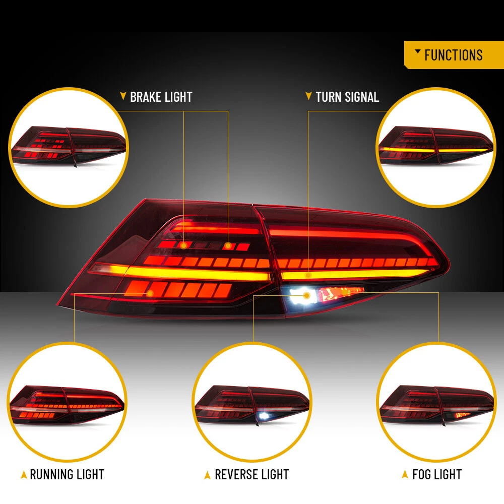 For 2014-19 VW Golf 7 MK7 GTI MK7.5 Tail Lights Upgrade FULL LED DRL Brake Light Description: Compatible for: For Volkswagen VW Golf MK7 MK7.5 2013 2014 2015 2016 2017 2018 2019 (Compatible with Hatchback only). Vehicle Exceptions: Note: For GTI/R models, you need to purchase additional wiring harness and decode the vehicle (with OBD11 or similar), related tutorials you can find them on YouTube. 2015–2017(MK7), 2018-2021(MK7.5) (US) Condition: Brand New Sold As: A Pair (Driver side & Passenger side) Tail Light Lens: Red Lens Running Light: LED (red) Signal Light: LED (amber) Sequential Turn signal Brake Light: LED (red) Reverse Light: LED (white) Fog Light: LED(Red) Installation: Plug & Play Bulbs Included: Full Built-in LED included, no need extra bulbs. Warranty: 1 year Tips: Professional installation is highly recommended Video(The video color is for reference only, and the physical object shall prevail) SPECIFIC SHIPPING ABOUT PAYMENT RETURN SPECIFIC SHIPPING ABOUT PAYMENT RETURN Store Categories Store Categories Headlights Taillights Headlights&Taillights LED Bulb Other For 2014-19 VW Golf 7 MK7 GTI MK7.5 Tail Lights Upgrade FULL LED DRL Brake Light Description: Compatible for: For Volkswagen VW Golf MK7 MK7.5 2013 2014 2015 2016 2017 2018 2019 (Compatible with Hatchback only). Vehicle Exceptions: Note: For GTI/R models, you need to purchase additional wiring harness and decode the vehicle (with OBD11 or similar), related tutorials you can find them on YouTube. 2015–2017(MK7), 2018-2021(MK7.5) (US) Condition: Brand New Sold As: A Pair (Driver side & Passenger side) Tail Light Lens: Red Lens Running Light: LED (red) Signal Light: LED (amber) Sequential Turn signal Brake Light: LED (red) Reverse Light: LED (white) Fog Light: LED(Red) Installation: Plug & Play Bulbs Included: Full Built-in LED included, no need extra bulbs. Warranty: 1 year Tips: Professional installation is highly recommended Video(The video color is for reference only, and the physical object shall prevail) SPECIFIC SHIPPING ABOUT PAYMENT RETURN SPECIFIC 1.This Price is for a left & right 1 pair 2.Bulk Discount is negotiable! 3.If you are interested in selling some of our products exclusive in the entire market,please contact us via eBay message! SHIPPING Our default shipping rates are for the 48 US states only via UPS Ground. No Alaska, Hawaii, Puerto Rico, APO, FPO or PO Box please. We usually ship within 1-2 business days of receiving cleared payment. Unless otherwise noted, Buyer pays shipping. Pick up at our facilities is available. Please contact us prior to your purchase to arrange pick up. For items marked with FREE shipping no shipping fees apply to 48 US states. Freight Items We will not ship freight items and some larger or fragile parts outside of the 48 US states. For large items that must be shipped via Freight Truck (i.e. engines, transmissions), the delivery site must be a commercially zoned address capable of unloading a freight truck. We can also arrange for you to pick up your freight item at your local freight terminal. For an accurate residential freight quote, please contact us before your purchase. If for some reason our shipping cost is greatly over this estimate, we reserve the right to ask for additional funds or an alternate ship to address. Shipping Deadlines We will process every order within 24 orders of checkout. Please allow 1-5 days for delivery. Most areas in the US are within 5 days. No Expedited shipping is available. ABOUT If you have a question about a part please contact us before purchasing. Our main contact method is by ebay messaging. We try to answer all messages within 24 hours, Monday - Friday 8am-5pm Eastern Standard Time . If we are unable to answer your questions before the listing ends the item will be re-listed again soon for you to purchase. PAYMENT RETURN 1. We offer 30 days return policy. 2. Please contact us within 30 days from the date you receive your package if you have any questions with the products . 3. Refund will be sent after we got your returned package. 4. All returned items should be in the original packaging with tracking number. On Jan 12, 2025 at 23:59:13 PST, seller added the following information: