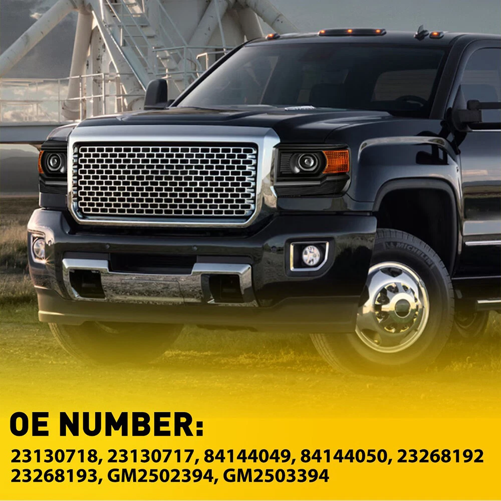 Fit for: 2014-2015 GMC Sierra 1500 Base / Denali / SLE / SLT models only 2015-2019 GMC Sierra 2500HD Base / Denali / SLE / SLT models only 2015-2019 GMC Sierra 3500HD Base / Denali / SLE / SLT / Chassis models only Does Not Fit Models with LED DRL Headlights Does Not Fit 2014 Old Body Style Models Does Not Fit Models with HID Headlights Specifications: OE number: 23130718 23130717 84144049 84144050 23268192 23268193 GM2502394, GM2503394 Material: ABS+PC (ABS Plastic Housing/Polycarbonate lens) Appearance color: 1.Housing Color:Black 2.Lens Color:Clear 3.Reflector Color:Amber Note: For 2014-2015 GMC Sierra 1500 Black Amber Pair Headlights Assembly 12V Fit for: 2014-2015 GMC Sierra 1500 Base / Denali / SLE / SLT models only 2015-2019 GMC Sierra 2500HD Base / Denali / SLE / SLT models only 2015-2019 GMC Sierra 3500HD Base / Denali / SLE / SLT / Chassis models only Does Not Fit Models with LED DRL Headlights Does Not Fit 2014 Old Body Style Models Does Not Fit Models with HID Headlights Specifications: OE number: 23130718 23130717 84144049 84144050 23268192 23268193 GM2502394, GM2503394 Material: ABS+PC (ABS Plastic Housing/Polycarbonate lens) Appearance color: 1.Housing Color:Black 2.Lens Color:Clear 3.Reflector Color:Amber Note: Projector √ ( Include) DRL × (Not Include) Bulb × ( Not include) Features: *Easy to install: Direct replacement, drilling and cutting are not required. *Superior quality: Made of ABS and PC materials with toughness and heat resistance functions to ensure its long service life and durability. *Angle adjustment: Equipped with a headlamp Angle adjustment knob, you can adjust the best Angle of view through the knob. *Suggestion: 1.Please confirm the OE number before purchasing!!! 2.Professional installation is required!!! Packaging include: Headlights*2(Left+Right) Item Specifics Mounting Style Screws Bulbs Included No. Reuse Existing Bulbs Fitment Type Direct Replacement Items Included Driver & Passenger Side Headlgihts Material ABS Plastic / Polycarbonate Lens Superseded Part Number GM2502394, GM2503394 Placement on Vehicle Front, Left, Right California Prop 65 Warning This product contains chemicals known to the State. Brand AUXITO Bulb Shape Code H7 High / Low Beam Type Headlight Assembly Interchange Part Number 23130718 23130717 84144049 84144050 2014 2015 2016 2017 2018 Parking Light 7443 OE/OEM Part Number GM2503394 GM2502394 15 16 17 Housing Color Black Style OE Features Projector Housing Lens Color Clear Lens / Amber Reflector Please Note Fit Models with Halogen Headlights Only Turn Signal 7443A Lighting Technology Halogen Number of Bulbs 0 Light Color Cold White Manufacturer Warranty 1 Year Payment We only accept PayPal payment, should be received within 3 days from the date of purchase. Please keep the consistency of Paypal address and ebay address. Payment should be made within 4 days once you won a item ,or ebay will launch Unpaid Reminder agaist you and there will be bad record on your ebay account . Buyers are responsible for import duties, custom fees and taxes.Please check with your country's custom office to determine the additional costs before you finally make the purchase Shipping All items will be shipped in 48 hours after receiving your payment . We ship this item to US only via USPS first class mail. It usually takes 3-6 working days to deliver. Returns We offer 30 days return policy. Please contact us within 30 days t from the date you receive your order if you have any issues with the product or want return .Refund will be send after we got your resend package. All returned items should be in the original packaging , return tracking information should be provided .. Buyer is responsible for return shipping cost due to the problem not caused by item quality itself . Contact Us Our office hours are MONDAY - FRIDAY 9:00PM - 6:00PM PST, but we will response you once we get your message .There will be some delay on response if you send message or E-Mail on weekend. FAQ Q1: Will this bulb fit my vehicle? A: We can match almost any vehicle to one of our bulb sizes. eBay only lets us include partial vehicle fitments per listing, but if your vehicle does not show up on the compatibility table at the top of our listings, welcome you to contact us for free consulation before purchasing a product. Q2: My item has not arrived, what's taking so long? A: Sometimes items take longer than expected, especially if it’s going far or to rural area. Check with your post office to see if your item has been held up. Sometimes USPS will not update a tracking number until it has arrived at its destination. If your item still has not arrived after a few days, let us know so we can double check for you and help solve it asap. Q3: Do I need to mention the Year, Make and Model in the notes when place order? A: YES. Please include the Year, Make, and Model in the notes section during checkout to ensure you receive everything needed for your kit! Q4: My bulbs won't fit, help! A: Special bulb holder may be required. See if you can take the holder from the stock bulb. If not, let us know. The bulb size may be wrong, double check the item you received with the item you ordered. Do you have an aftermarket lighting housing? These may not be perfectly fitted for aftermarket bulbs and will require some manual modifications. Q5: Neither side lighting up? Both sides flicker, flash, or work inconsistantly. A:Check the headlight fuses, and then check the ballast plugs to insure correct installation. If this doesn't work, there may be a voltage problem with the vehicle. You probably just need a relay or capacitor. Q6: WARNING ABOUT POLARITY Unlike halogen bulbs, LED are polarity sensitive. BEFORE you start your LED kit installation, verify the polarity on your vehicle by simply plugging the LED bulb into your vehicle socket. - if your light turns on, please proceed to install both bulbs onto your vehicle. - if your light DOES NOT turn on, disconnect the bulb and flip the socket in