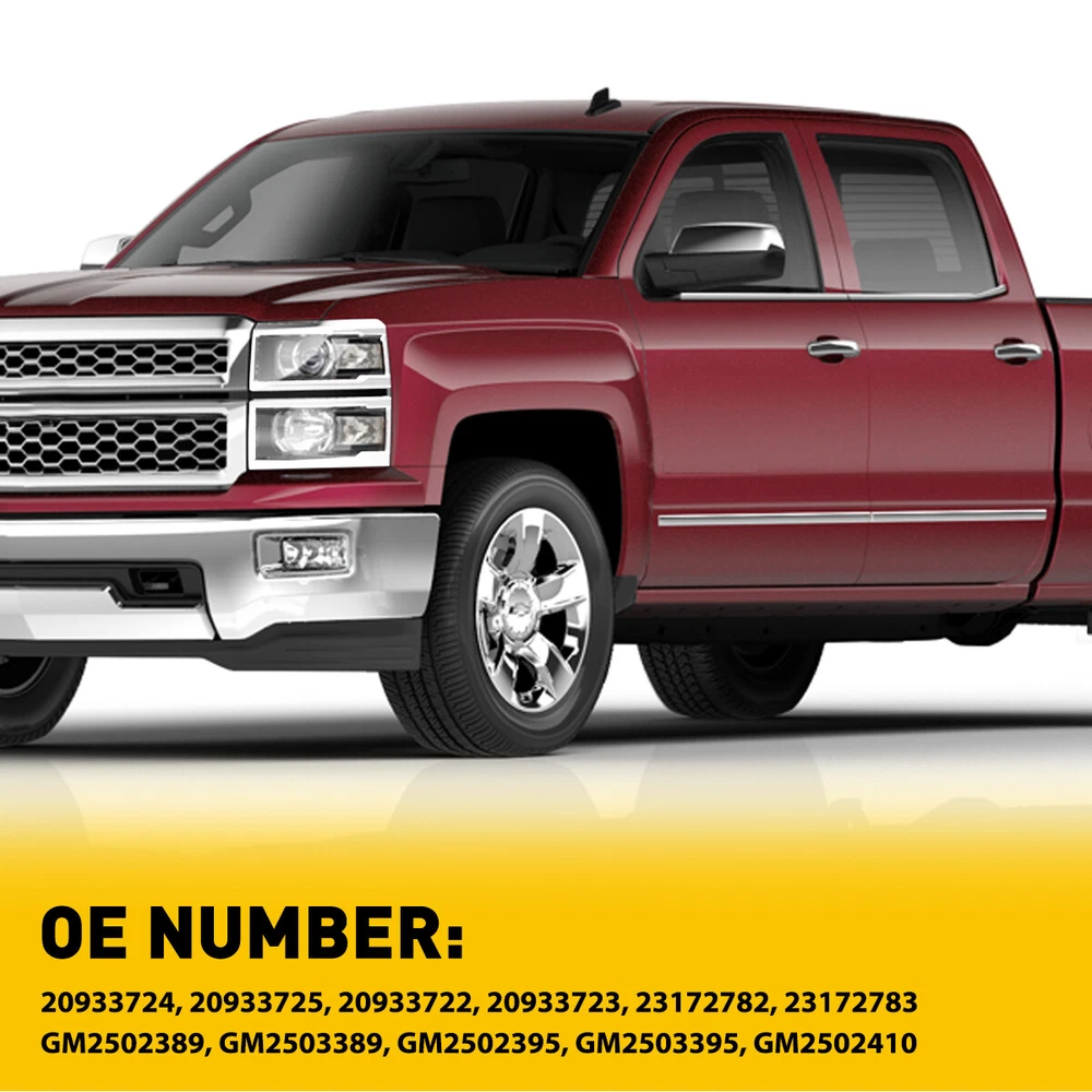 Fit for: 2014-2015 Chevy Silverado 1500 models only (Fit 2014 New Body style models only; Does NOT fit HD models) Specifications: OE number: 20933724, 20933725, 20933722, 20933723, 23172782, 23172783 GM2502389, GM2503389, GM2502395, GM2503395, GM2502410 Material: ABS+PC (ABS Plastic Housing/Polycarbonate lens) Appearance color: 1.Housing Color:Black 2.Lens Color:Clear 3.Reflector Color:White Note: Projector √(Include) DRL × (Not Include) Bulb × ( Not include) Features: *Easy to install: For 2014-2015 Silverado 1500 Housing Replacement Projector Headlamps Light EPU Fit for: 2014-2015 Chevy Silverado 1500 models only (Fit 2014 New Body style models only; Does NOT fit HD models) Specifications: OE number: 20933724, 20933725, 20933722, 20933723, 23172782, 23172783 GM2502389, GM2503389, GM2502395, GM2503395, GM2502410 Material: ABS+PC (ABS Plastic Housing/Polycarbonate lens) Appearance color: 1.Housing Color:Black 2.Lens Color:Clear 3.Reflector Color:White Note: Projector √(Include) DRL × (Not Include) Bulb × ( Not include) Features: *Easy to install: Direct replacement, drilling and cutting are not required. *Superior quality: Made of ABS and PC materials with toughness and heat resistance functions to ensure its long service life and durability. *Angle adjustment: Equipped with a headlamp Angle adjustment knob, you can adjust the best Angle of view through the knob. *Suggestion: 1.Please confirm the OE number before purchasing!!! 2.Professional installation is required!!! Packaging include: Headlights*2(Left+Right) Item Specifics Brand AUXITO Fitment Type Direct Replacement Manufacturer Warranty Yes Material ABS PC (ABS Plastic Housing/Polycarbonate lens) Bulbs Included No Type Headlight Assembly Placement on Vehicle Front, Right,Left,Driver Side & Passenger Side Beam Type Low Beam, High Beam Assembly Type Composite Specifics For Models With Factory Halogen Headlights Only OE/OEM Part Number 20933724,20933725,20933722,20933723,23172782,23172783 Other Part Number GM2502389,GM2503389,GM2502395,GM2503395,GM2502410 Interchange Part Number GM2502389,GM2503389,GM2502395,GM2503395,GM2502410 Superseded Part Number 20933724,20933725,20933722,20933723,23172782,23172783 Mounting Style Screws Headlight Style Headlight Style Factory, Projector Housing Color Black Reflector Color White Features Factory Headlights, OE-Certified, SAE-Certified, Sealed Assembly Lighting Technology Halogen Bulb Shape Code 9005 HB3 High / H1 Low Beam; Bulb Not Required Fitment For 2014-2015 Chevy Silverado 1500 models only Compatible/Replacement For 2014-2015 Chevy Silverado 1500 models only Turn Signal/Parking Light 7443A 7443 Note Does NOT fit HD models Payment 1. We can only accept payment from PayPal. 2. Please keep the consistency of Paypal address and ebay address. Shipping 1. All items will be shipped in 12 hours after receiving your payment . 2. We ship this item to US only via USPS first class mail. It usually takes 3-5 working days to deliver. Returns 1. We offer 30 days return policy. 2. Please contact us within 30 days from the date you receive your package if you have any questions with the products . 3. Refund will be sent after we got your returned package. 4. All returned items should be in the original packaging with tracking number. Contact Us We work from Monday - Saturday 9:00AM - 6:00PM, but we will reply once we get your message. There will be delay on response if you send message or E-Mail on Sunday. DESCRIPTION PAYMENT SHIPPING RETURN POLICY CONTACT US Shop Category Store Home Other Hot Item Universal Car Windshield Wiper Squirter Washer Nozzle Spray Jet Kit Fluid Hose T USD 9.99 1set Control Knob Speed Fan Heater A/C For Jeep Wrangler TJ 99-06 5011218AA USD 9.99 Rear Left or Right Outside Door Handle for 2010-2016 Toyota 4Runner Lexus GX460 USD 14.24 For 2002-2008 Dodge Chrysler Stereo Car Radio Wiring Harness Adapter USD 11.59 Door Latch Cables LH+RH Front For 2007-2013 Chevy Silverado 1500 2500 HD 3500 HD USD 17.99 New List Item For 2008-2012 Honda 2.4L Accord Upstream Downstream Oxygen O2 Sensor Replacement USD 38.99 Outside Door Handle For Colorado Chevy 2004-2012 Textured New Left Driver Rear USD 12.99 For 2002-2008 Dodge Ram 2500 1500 3500 Chrome 4 Door Handle + Tailgate Covers USD 24.99 FOR FD FUSION 2014 2013 2015 2016 2017 2018 2019 HOOD HINGE RIGHT & LEFT PAIR USD 32.99 10pcs 2-LED Marker Red Oval Side Truck Trailer Lights Clearance Light Waterproof USD 12.99 Excellent Delivery For 2014-2015 Silverado 1500 Housing Replacement Projector Headlamps Light EPU Fit for: 2014-2015 Chevy Silverado 1500 models only (Fit 2014 New Body style models only; Does NOT fit HD models) Specifications: OE number: 20933724, 20933725, 20933722, 20933723, 23172782, 23172783 GM2502389, GM2503389, GM2502395, GM2503395, GM2502410 Material: ABS+PC (ABS Plastic Housing/Polycarbonate lens) Appearance color: 1.Housing Color:Black 2.Lens Color:Clear 3.Reflector Color:White Note: Projector √(Include) DRL × (Not Include) Bulb × ( Not include) Features: *Easy to install: Direct replacement, drilling and cutting are not required. *Superior quality: Made of ABS and PC materials with toughness and heat resistance functions to ensure its long service life and durability. *Angle adjustment: Equipped with a headlamp Angle adjustment knob, you can adjust the best Angle of view through the knob. *Suggestion: 1.Please confirm the OE number before purchasing!!! 2.Professional installation is required!!! Packaging include: Headlights*2(Left+Right) Payment Shipping Returns Contact Us 1. We can only accept payment from PayPal. 2. Please keep the consistency of Paypal address and ebay address. 1. All items will be shipped in 12 hours after receiving your payment . 2. We ship this item to US only via USPS first class mail. It usually takes 3-5 working days to deliver. 1. We offer 30 days return policy. 2. Please contact us within 30 days from the date you receive your package if you have any questions with the products . 3. Ref