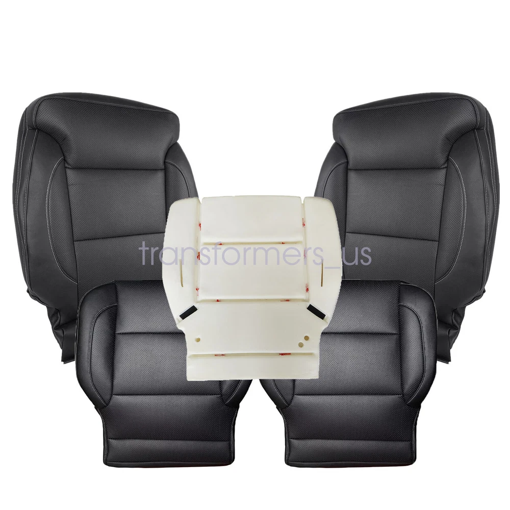 For 2014-2019 Chevy Silverado LTZ Front Leather Seat Cover Black / Foam Cushion 20 14-2019 For Chevy Silverado/GMC Sierra 1500, 2500HD, 3500HD, LT, LS, LTZ, Z71 Hybrid Front Driver / Passenger Bottom / Top Leather Seat Cover Black Note: Seat Cover Color is Jet Black Microfiber Leather Perforated With White Stitching On Side Description: Type: Driver / Passenger Bottom / Top Replacement Seat Cover Black / Foam Side: Driver / Passenger Side Seat Cover Color: Jet Black - 's Exact Color Match Interior Trim Code: H2U, H1Y or H3B or 4AA (Codes on Sticker Inside Glove Box) Material: Microfiber Leather & High Density Foam Make: Chevy/GMC Model: Sil verado LT, LS, LTZ, Z71, Hybrid / Sierra SLT, SLE, Z71 Fit Years : 2014 2015 2016 2017 2018 2019 This item is a new Custom-made, replacement in " Jet Black " C olor for: 2014-2018 GMC Sierra 1500 SLT, SLE, Z71, Hybrid (Single-Cab, Extended-Cab, Crew-Cab) 2015-2019 GMC Sierra 2500HD SLT, SLE, Z71 (Single-Cab, Extended-Cab, Crew-Cab) 2015-2019 GMC Sierra 3500HD SLT, SLE, Z71 (Single-Cab, Extended-Cab, Crew-Cab) 2015-2019 Chevrolet Tahoe LT, LS, LTZ, Z71, Midnight Ed, Premier, Sport, PPV, SSV, 2WD, 4X4 2015-2019 Chevrolet Suburban LT, LS, LTZ, Z71, Premier, Sport, HD, 2WD, 4X4 2014-2018 Chevrolet Silverado 1500 LT, LS, LTZ, Z71, Hybrid (Single-Cab, Extended-Cab, Crew-Cab) 2015-2019 Chevrolet Silverado 2500HD LT, LS, LTZ, Z71 (Single-Cab, Extended-Cab, Crew-Cab) 2015-2019 Chevrolet Silverado 3500HD LT, LS, LTZ, Z71 (Single-Cab, Extended-Cab, Crew-Cab) 2015 - 2019 GMC Yukon Denali 2015 - 2019 GMC Yukon 1500 XL Denali Heated Seats: Fits Heated Seats and Non Heated Seats Power Seats: Fits Power Seats and Non Power Seats Vehicles Seat Cover's Attached Padding: ½ Inch attached foam padding Warranty: 5 Year Seat Cover Type: Factory's Seat Cover's Replacement-NOT a pull Over, you'll take off the old cover, and install the new cover Package Including: Choose your pieces If you do not know how to install, please contact us , We can provide video installation instructions Tips: This Driver / Passenger Bottom / Top Replacement seat cover, built to factory specs with Quality Microfiber Leather to match the Interior of your vehicle! Our product is exactly the same as your existing cover and guaranteed to fit perfectly on your seat foam Pad. Any wrinkles seen in the pictures is from being in a box and guaranteed to disappear once installed Correctly. Please note this item is a replacement, not a slip on or pull over. Please Note: Actual Replacement Cover. NOT A SLIP ON or PULLOVER. You will remove the old cover & then install the New Cover. Communication is the best way to solve the problem. If you have any problems after purchasing, please contact us in time, before opening return or case. General Policies : Dear customer,if you have any questions,you can contact us,we will provide the best service for you. Shipping policy : The item will be shipped within 24 hours on payment received except the holidays.(except weekends & official holidays). You can log on to eBay to check your logistics tracking number. Please confirm address before purchase, and cannot change address once purchased. If you need to receive the item quickly, please contact us, you can pay the postage to choose other logistics. Payment: Please purchase and pay for the item through the eBay,only accpected the paypal payment. Returns: Please contact us first when return, exchange and refund is required. Any direct return of purchased items will not be processed. Item must be returned in new condition, as received with all accompanied accessories and literature, including the factory carton. Shipping, handling is not refundable unless item is returned because of defect. If the product is defective or damage upon arrival,please contact us immediately,we will provide the solve the problem. Returns accepted within 30 days of delivery date and item must be in new condition. About us: Our goal is complete customer satisfaction. We will be very honored to provide you with quality service. If there is an issue with shipping or the item you purchased please contact us via ebay message or call us before opening a case or leaving feedback.We will try our best to resolve any kind of issue. For 2014-2019 Chevy Silverado LTZ Front Leather Seat Cover Black / Foam Cushion 20 14-2019 For Chevy Silverado/GMC Sierra 1500, 2500HD, 3500HD, LT, LS, LTZ, Z71 Hybrid Front Driver / Passenger Bottom / Top Leather Seat Cover Black Note: Seat Cover Color is Jet Black Microfiber Leather Perforated With White Stitching On Side Description: Type: Driver / Passenger Bottom / Top Replacement Seat Cover Black / Foam Side: Driver / Passenger Side Seat Cover Color: Jet Black - 's Exact Color Match Interior Trim Code: H2U, H1Y or H3B or 4AA (Codes on Sticker Inside Glove Box) Material: Microfiber Leather & High Density Foam Make: Chevy/GMC Model: Sil verado LT, LS, LTZ, Z71, Hybrid / Sierra SLT, SLE, Z71 Fit Years : 2014 2015 2016 2017 2018 2019 This item is a new Custom-made, replacement in " Jet Black " C olor for: 2014-2018 GMC Sierra 1500 SLT, SLE, Z71, Hybrid (Single-Cab, Extended-Cab, Crew-Cab) 2015-2019 GMC Sierra 2500HD SLT, SLE, Z71 (Single-Cab, Extended-Cab, Crew-Cab) 2015-2019 GMC Sierra 3500HD SLT, SLE, Z71 (Single-Cab, Extended-Cab, Crew-Cab) 2015-2019 Chevrolet Tahoe LT, LS, LTZ, Z71, Midnight Ed, Premier, Sport, PPV, SSV, 2WD, 4X4 2015-2019 Chevrolet Suburban LT, LS, LTZ, Z71, Premier, Sport, HD, 2WD, 4X4 2014-2018 Chevrolet Silverado 1500 LT, LS, LTZ, Z71, Hybrid (Single-Cab, Extended-Cab, Crew-Cab) 2015-2019 Chevrolet Silverado 2500HD LT, LS, LTZ, Z71 (Single-Cab, Extended-Cab, Crew-Cab) 2015-2019 Chevrolet Silverado 3500HD LT, LS, LTZ, Z71 (Single-Cab, Extended-Cab, Crew-Cab) 2015 - 2019 GMC Yukon Denali 2015 - 2019 GMC Yukon 1500 XL Denali Heated Seats: Fits Heated Seats and Non Heated Seats Power Seats: Fits Power Seats and Non Power Seats Vehicles Seat Cover's Attached Padding: ½ Inch attached foam padding Warranty: 