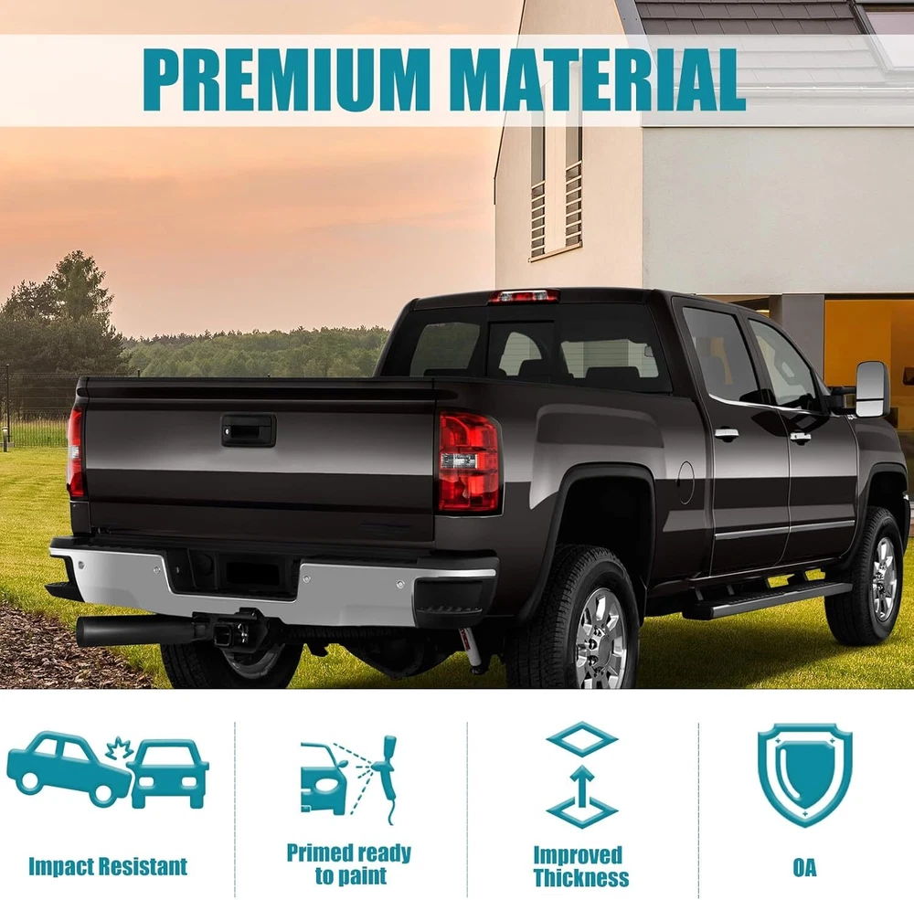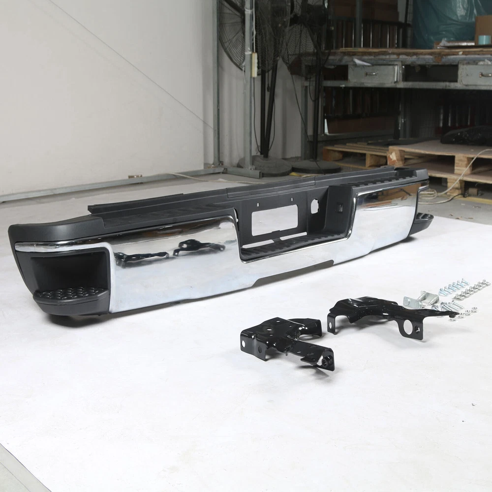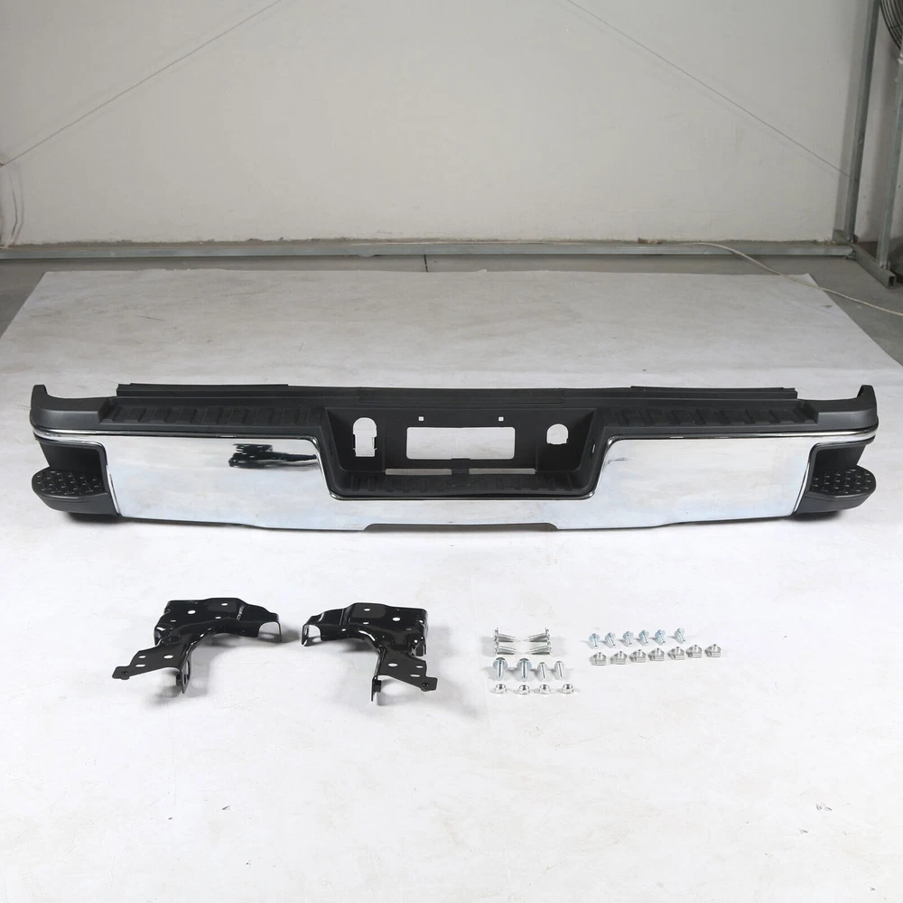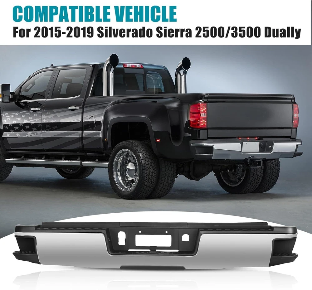 Park Assist Sensor Cut-out Rear Bumper Compatible with 2015-2019 Chevy Silverado/GMC Sierra 2500 HD 3500 HD, Step Bumper with Parking Sensor Hole without Tow Hitch for Dual Rear Wheel (Dually) Models , Chrome Bar Replacement Step Pad Assembly Product Description About this item Chrome Rear Bumper Assembly: Enhance the look of your 2015-2019 Silverado Sierra 2500 3500 with this and stylish chrome rear bumper assembly. compatible with Specific Models: Designed to compatible with seamlessly on Silverado Sierra 2500 3500 models from 2015 to 2019, e a precise and custom compatible with. Integed Park Assist: This rear bumper assembly comes equipped with park assist sensors, making parking and ee your vehicle easier and safer. Easy Installation: With a straightforward installation process, you can quickly upgrade your vehicle's rear bumper without the need compatible with professional help. Enhanced ion and Style: Not only does this chrome rear bumper assembly your vehicle, but it also adds a touch of sophistication and style to your Silverado Sierra 2500 3500. Features: 2015-2019 Chevrolet Silverado 2500 HD 2015-2019 Chevrolet Silverado 3500 HD 2015-2019 GMC Sierra 2500 HD 2015-2019 GMC Sierra 3500 HD For Models With Park Sensors For Use With Factory Tow Hitch (Hitch Plate Not Included) For Dual Rear Wheel (Dually) Models ONLY High Polished Chrome Finish Includes Reinforcement, Brackets, Hardware, Lamps and Step Pad Direct OE Replacement W/o Park Assist Sensor Cut-out Chrome Steel Rear Step Bumper Replacement for 2015-2019 Chevy Silverado Sierra 2500HD 3500HD Single Rear Wheels without Park Assist Sensor Holes GM1103182 Product Description About this item Compatible with: specifically designed replacement for 2015-2019 Silverado 2500HD 3500HD 2015-2019 Sierra 2500HD 3500HD, ensuring a secure and stable installation Premium quality steel: constructed from steel and chrome for an extra layer of protection and an aesthetic appeal, is designed to withstand daily crash, ensuring a long-lasting performance Easy installation: no drilling or cutting required, designed as a direct replacement for your original step bumper. Installation instruction is not included. Professional installation would be highly recommended Stable use: the stepped bumper provides additional protection for your vehicle, ensuring stable driving on the road Complete package: it comes with 1 x rear bumper as shown in the picture. All these components are of good quality, ensuring reliable performance and functionality Features: It undergoes strict factory testing to ensure reliable performance and a long service life It is designed to be a direct replacement, made to factory specifications, so no modifications are required This rear bumper is the good fit for your vehicle, seamlessly integrating with the overall design and enhancing its aesthetics Not only does this rear bumper provide excellent protection for your vehicle, but it also offers a stylish and sleek appearance Its finish adds a touch of elegance to your car while effectively guarding avoid impacts, scratches, and other forms of damage Fitment: Replacement for 2015-2019 Silverado 2500HD Replacement for 2015-2019 Silverado 3500HD Replacement for 2015-2019 Sierra 2500HD Replacement for 2015-2019 Sierra 3500HD Specifications: Part number: replacement for GM1103182 23108142-PFM 84078289 Color: chrome Material: steel Type: rear step bumper Placement on vehicle: rear Fitment type: direct replacement Attachment type: bolt-on Package included: 1 x rear step bumper shown in pictures Notes: With corner step Without hitch draw bar Without mounting brackets For Single Rear Wheel Models ONLY For models without park assist holes only For use with factory tow hitch (no stabilizer plate included) Payment Delivery Details Return Feedback Contact us Payment We accept payment by any of the following methods: Delivery Details Shipping Time Your item will ship within 3 days (Mon-Fri) of your cleared payment. Items will be shipped to the shipping address you specify via Paypal only. We are NOT able to change the shipping address once payment has been made. A tracking number will be provided once your item has shipped. Domestic Buyers No shipping to PO BOX and APO addresses. No shipping to PR, AK, HI. International Buyers International buyers please note: Import duties, taxes and charges are not included in the item price or shipping charges. These charges are the buyer's responsibility. Please check with your country's customs office to determine what these additional costs will be prior to bidding/buying. Return All returns must have RMA number. Returns with no RMA number will be avoided! 1. Changed your mind and don't want the item anymore? We back our products with a 30-DAY SATISFACTION GUARANTEE! (Item must be in the original condition as it was received. 30 Days Refund, 30 Day Replacement.). Brand New items will have 30 days warranty or replacement policy. 2. Restocking fees will be charged ONLY on Brand New items. 3. Defective/Dead items will be fully refunded or replaced after matching the serial number with the one in our records. 4. Mobile phones and tablets MUST be restored to factory setting. 5. If your order arrives incorrect or the package is damaged in result of a carrier company, you must notify us within 4 days of receipt. Defective items will be credited only after matching the serial number with the one in our records. We are aware of all fraud cases and have all the items details in our records. 6. If there is a quality issue or malfunction with the product, we strongly suggest you to contact the original manufacturer. 7. Any item needed to be returned must be securely packaged, insured and shipped with tracking for safety. We cannot be responsible for lost damaged packages. We carefully inspect returned items upon receipt before any possible refunds, credits, or exchanges. Feedback Customer satisfaction is our top priority. Please give us a chance to resolve any issues 
