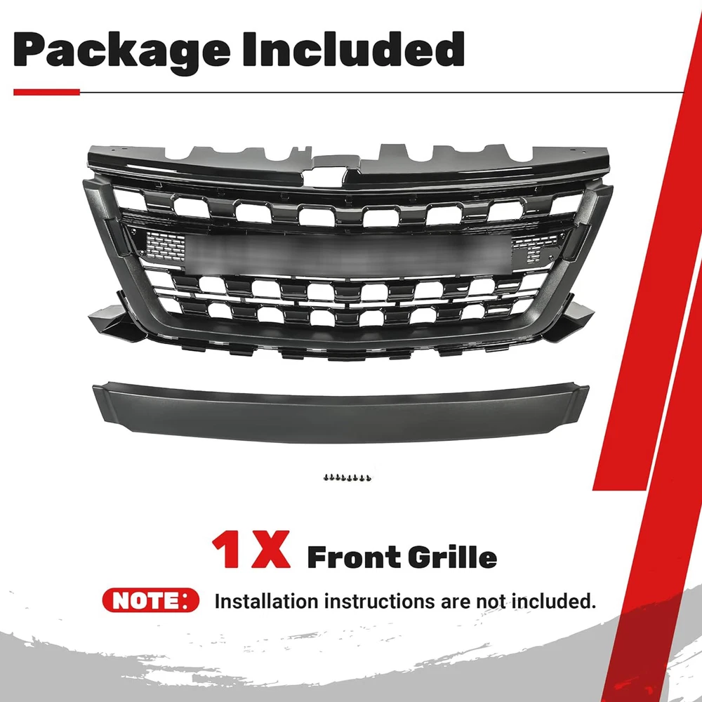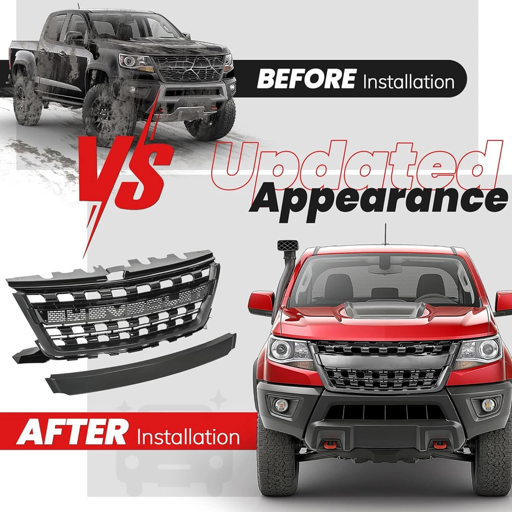 For 2015-2020 Chevrolet Colorado Front Grille Grill Upper WT LT Z71 Matte Black Fitment: Fit For 2015 2016 2017 2018 2019 2020 Chevrolet Colorado Package List: 1*Front Grille Specification: Color: Matte Black Material: ABS Plastic Finish: Powder Coated Note: Installation instructions are not included, but installation is very simple and professional installation is highly recommended Payment Delivery details Terms of sales Return Policy Contact us Payment We support payment methods such as paypal, Google Pay and VISA. Delivery details We only ship to USA! We ship to your eBay address. Each package will be shipped to US by Fedex with tracking number. Please check your shipping address carefully before checkout, it can't be changed if order completed. All items will be shipped within 1-2 business day upon receipt of payment.Orders placed on weekend will be shipped within 3 days. If you do not receive your item in 7-10 business days.please contact us immediately for further assistance. We will be responsible for any damages or losses incurred in the shipping proces Terms of sales Please Note: Please allow minor errors due to manual measurement. Monitors are not calibrated same, item colour displayed in photos may be showing slightly different from the real object. Please take the real one as standard.Thanks for your understanding. Return Policy 14 Days Return & Exchange Policy: * We give you a 14 days money-back guarantee to return any items purchased, no questions asked, hassle-free. * You can return for refund or exchange same product or different product (difference of price will be charged) within 14 days after you receive the item. * Any returning or exchanging items must be in the original package and new condition. We reserve rights to refuse refit or damaged items (caused by buyer) for return and exchange. * No returns will be accepted if you contacted us after 30 days of receiving the item. * Exchange fee: No restocking fee will be charged, however Buyers are responsible to pay the return shipping fee and exchange reshipping fee, depending on the weight of merchandise. * Email our Customer Service Department first before return the item back. Please specify your item number, your eBay ID, and the reason for the return. Click here to contact us directly. Contact us If you have any problem with our service or products, please do contact us ASAP before leaving a neutral or negative feedback . We work hard to make sure every customs 100% satisfied and solve any problem for you. Any other questions please also feel free to contact us. We will be delighted to help. Your satisfaction is our pursuit. Glad to deal with you in the future.