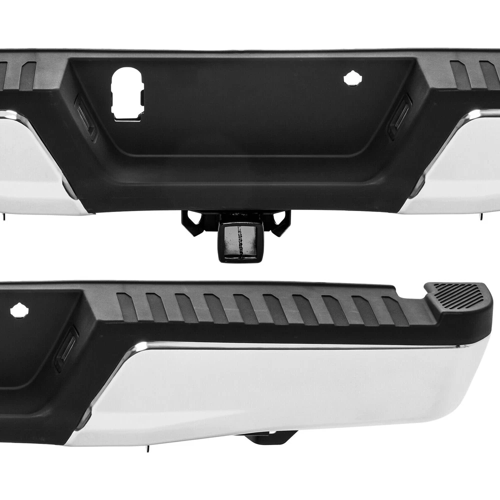 Package Content: 1x Pickup Rear Bumper 1 x Set of Mounting Brackets Some Bolts and Screws Item Specifications: Condition: 100% Brand New Color: Chorme Material: Carbon Steel Warranty: 5 Years Type: Bumper Assembly Placement on Vehicle: Rear Fitment Type: Direct Replacement Notice: For Models with Tow Hitch Fitment: Fit Ford F-150 2015-2020 Not Fit 2019/2020 F-150 Limiter Models Not Fit F-150 Raptor Models For Models Without Park Assist Holes, with Tow Hitch Features: Simple Installation Process Practical and Ornamental Coexis High-quality Steel Raw Materials Integrated Step Fits Perfectly with the Vehicle Protect the Vehicle and Reduce Damage On Mar 20, 2024 at 01:52:52 PDT, seller added the following information: On Jun 16, 2024 at 08:30:14 PDT, seller added the following information: On Dec 3, 2024 at 02:54:00 PST, seller added the following information: