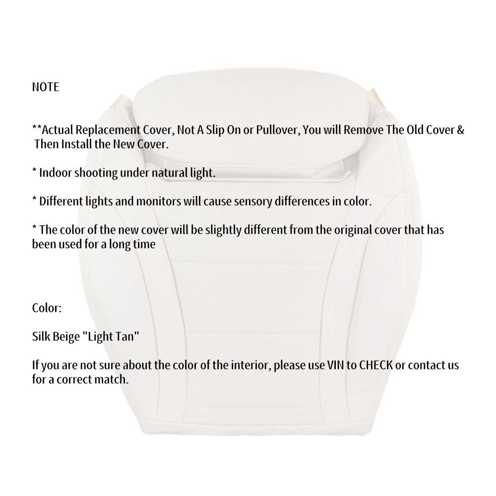 For 2015-2021 Mercedes Benz C300 Driver Bottom Leather Seat Cover Tan Fitment: 2015-2021 Fits Mercedes Benz C250, C300,C350,c350e,C400, 4Matic, Sport, Exclusive, Luxury Fits Heated and Non-heated Seats. (Heated and Powered seats will not be affected with the change to a new cover because the wiring for the heating elements are connected to the cushion not the actual seat.) Tools Required: Snips, Flat Head Screw Driver, Phillips Screw Driver, Socket, Wrench & Drill.(NOT included) NOTE **Actual Replacement Cover, Not A Slip On or Pullover, You will Remove The Old Cover & Then Install the New Cover. * Indoor shooting under natural light. * Different lights and monitors will cause sensory differences in color. * The color of the new cover will definitely be slightly different from the original cover that has been used for a long time Package included: 1x Bottom Seat Cover ,Foam pad and frame are not included