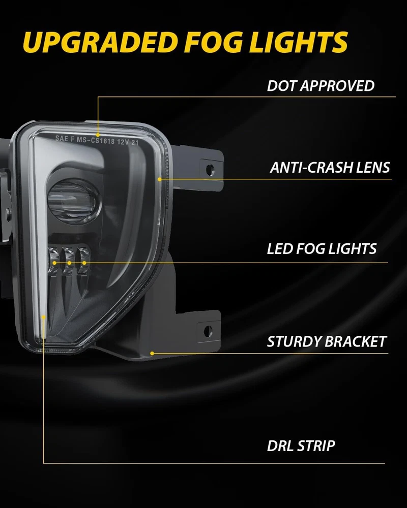 DESCRIPTION Height: 184.2mm/ 7.25inch Width: 229.1mm/ 9.02inch Depth: 143.8mm/ 5.66inch Color Temperature: 6500K Halo Voltage: 12V DC Fog Lights Input Voltage:12V DC Theoretical Power:45W Lumen: 2000LM/each, 4000LM/set Outer Lens Material: PC Housing Material: Die-cast Aluminum Housing Color: Black Outer Lens Color: Clear Inner Bezel Color: Black Waterproof Rate: IP67 Certification: DOT, SAE FEATURES DOT Compliant Lamps-- These led fog lights are REAL DOT Approved , Certified DOT ID on the lens. Meets or Exceeds all Regulation in the U.S. & Canada. Legal on the road. Super Bright with DRL Functions-- High Intensity LED Chips to give out 6500K Cool white. Up to 4000lm a set of Fog Lights, effectively enhance the visibility on daytime or nighttime driving, Special 7-shape DRL features a new stylish look to your truck and extra illumination. Well-Made Construction-- IP67 Waterproof Rating Fog Lamps. Made with Non-fading Pure PC Lens and Sturdy Aluminum Alloy housing. High Resistant to Water, Impact, And Corrosion, Long Lasting. 100% OEM size-- 1:1 same size as stock lights. The LED fog lights are perfectly fit for the 2016-2018 Chevy Silverado 1500 truck.The fog lights kit features bolt-on installation that makes installation easier. With a DRL design. Looks better and brighter. Easy Installation-- Comes as a set with necessary connectors and everything you need to install. Less than 20 minutes install. Note: Please used the included adapter harness to plug right into the factory pigtails when installing the fog lights. The separate yellow wire is the positive"+" for the daytime running light. ) There is TWO way to CONNECT the DRL WIRES: 1. Run the yellow wire "+" of the DRL to the positive of the front position light, the DRL will be on with the position light. 2. Use a Circuit Fuse Tap(10A) and plug it into the fuse box. ----Run a wire to each light then joined them into one wire running to the fuse box. You could tap into that with a fuse tap . FITMENTS For 2016 2017 2018 Chevy Silverado 1500 Models Only Interchange Part Number:Replace for 84000613, 84000614, GM2592315,GM2593315 PACKAGE INCLUDES 1 Pair of LED Fog Lights for 2016-2018 Chevy Silverado Fog Lights CUSTOMER REVIEWS Payment Shipping Returns Contact us Feedback Payment Payment methods : Payment is expected within 7 days of auction close. Unpaid Items will be forfeited per eBay . Immediate payment needs to be processed for items with Add to Cart option so that any promotional discounts can be applied to your order immediately. International Buyers – Please Note: a) Import duties, taxes and charges are not included in the item price or shipping charges. These charges are the buyer's responsibility. b) Please check with your country’s customs office to determine what these additional costs will be prior to bidding /bu ying. Shipping 1.All items will be shipped to your eBay Address .Please update your latest address when you check out,and please make sure to provide us with correct,precise and detailed shipping address. 2.If your shipping address and the item location both are US, it will be shipped by USPS or UPS. All items will ship within 1-2 business days after the we receiving clear payment. 3.Service transit time is provided by the carrier. Transit times may be a little delayed during holiday season. 4.International order will be sent from China within 3 business day after the we receiving clear payment. ---For International Orders. Both are the same products and same warranty. Duties and taxes may apply. Please check with your country's custom and eBay policy for more information. 5.Where is my tracking number? Please log on your account, click "my eBay"-->"my summary", or open your email box and find the shipping notification email. Returns Our 30 days Satisfaction Guarantee assures our customers that they will receive all orders promptly and exactly as described. In addition, we offer FREE RETURNS for US buyers. It allows customers to return faulty and unused products for any reason within 30 days from the date of purchase. *Please contact us first before you sent a return request* The seller is responsible for all return shipping, including those due to customer errors or defective items. 1) If you receive an item that is incorrect, damaged, defective or not as described, please contact us for a partial/full refund or replacement. 2) If you want to return the item, please contact us within 30 days after receiving the package. 3) If you open a return request ,please select the reason for return: Doesn't fit/Changed my mind/Just didn't like it/Order by mistake. 4) We provide the 1 year of product warranty. If your product have quality problem within the warranty period, please contact us to provide repair or replacement services to you. Note: Return products must also be in its original condition: including box, packaging and all other accessories Contact us Our Working Time:(GMT+8)Monday to Friday,9:00-18:00. Have Question or Problem? Please contact us first! 1. We will reply you within 24 hours once we receive your email during business days. There will be some delay on response if you send message or E-Mail on weekend. 2. Describe your question clearly. We have a very professional and attentive customer support team. We will give you the best solution by our great communications. 3. We have always been trying to provide the best service and reliable product for every customer. However, sometimes may happen accident. Please contact us solve any issue before leaving a negative feedback. Feedback 1.We appreciate your business and strive to improve our customer service and our commitment to quality. 2.We will leave a positive feedback immediately after payment is received. We appreciate a positive feedback as much as you do. 3.If for some reason there is any issue with the purchase, please contact us prior to leaving feedback, and we will be glad to work with you to have it resolved.