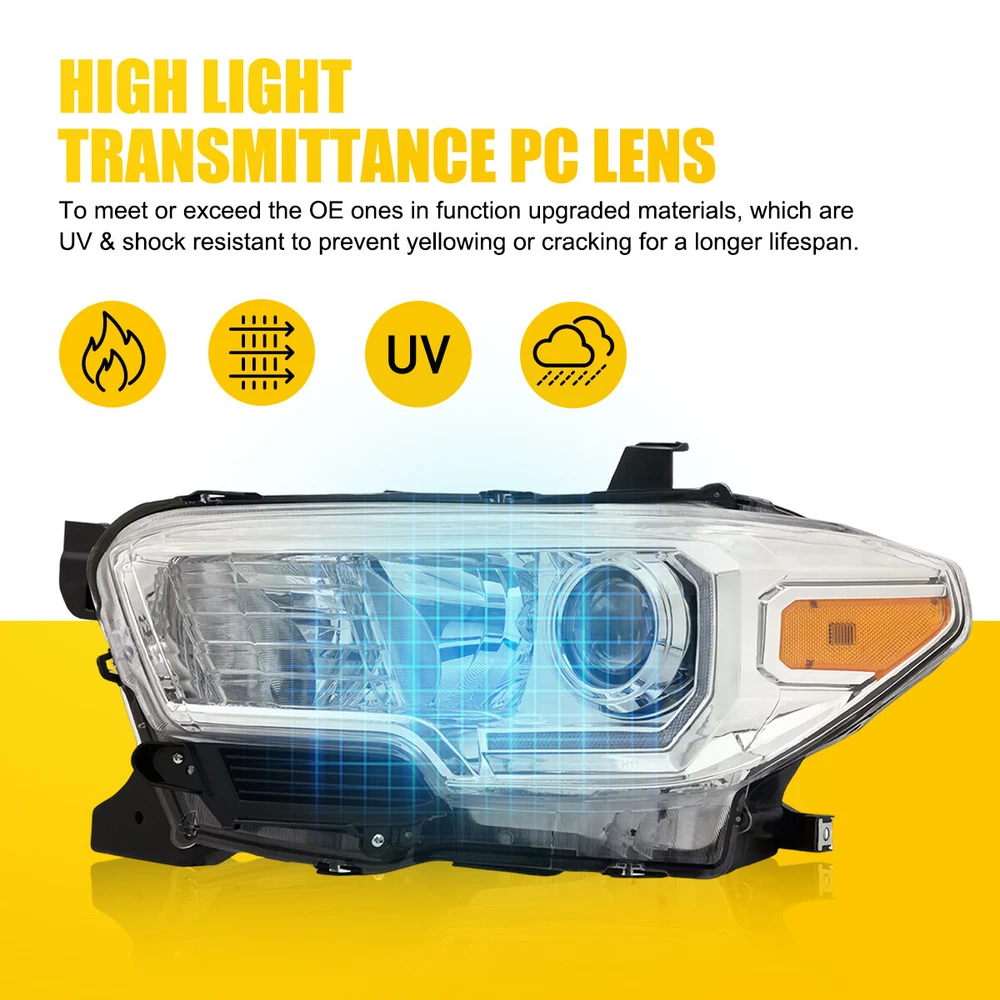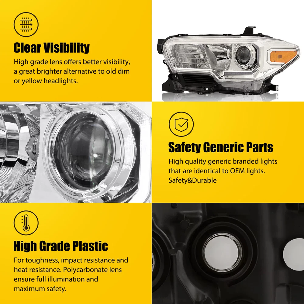 Fit for: 2016-2022 Toyota Tacoma w/ LED DRL Halogen Headlight Model Compatible w/ Factory LED DRL Halogen Headlight Models Only Not Compatible w/o Factory LED DRL Halogen Headlight Models Not Compatible 2020-2022 Full LED Headlight Models Specifications: OE number: 8115004270, 8111004270, 8111004260, 8115004260, 8115004280, 8111004280 TO2502244, TO2503244, TO2502254, TO2503254, TO2503243, TO2502243 Material: ABS+PC (ABS Plastic Housing/Polycarbonate lens) Appearance color: 1.Housing Color:Chrome 2.Lens Color:Clear 3.Reflector Color:Amber Note: Projector √( Include) For 2016-2022 Toyota Tacoma Pair Chrome Headlight Assemblies W/Projector DRL EPU Fit for: 2016-2022 Toyota Tacoma w/ LED DRL Halogen Headlight Model Compatible w/ Factory LED DRL Halogen Headlight Models Only Not Compatible w/o Factory LED DRL Halogen Headlight Models Not Compatible 2020-2022 Full LED Headlight Models Specifications: OE number: 8115004270, 8111004270, 8111004260, 8115004260, 8115004280, 8111004280 TO2502244, TO2503244, TO2502254, TO2503254, TO2503243, TO2502243 Material: ABS+PC (ABS Plastic Housing/Polycarbonate lens) Appearance color: 1.Housing Color:Chrome 2.Lens Color:Clear 3.Reflector Color:Amber Note: Projector √( Include) DRL √ (Include) Bulb × ( Not include) Features: *Easy to install: Direct replacement, drilling and cutting are not required. *Superior quality: Made of ABS and PC materials with toughness and heat resistance functions to ensure its long service life and durability. *Angle adjustment: Equipped with a headlamp Angle adjustment knob, you can adjust the best Angle of view through the knob. *Suggestion: 1.Please confirm the OE number before purchasing!!! 2.Professional installation is required!!! Packaging include: Headlights*2(Left+Right) Item Specifics Manufacturer Part Number 81150-04260, 81150-04270 Brand AUXITO Type Headlight Assembly Number of Bulbs 0 Include Bulbs No! Bulbs are not include! Placement on Vehicle Front Left Right Package Include Driver Side & Passenger Side Housing Color Chrome Lens Color Clear Features Direct replacement Reflector Color Amber Other Part Number TO2503243, TO2502243 Interchange Part Number 8115004280, 8111004280 OE/OEM Part Number 8115004270, 8111004270, 8111004260, 8115004260 Superseded Part Number TO2502244, TO2503244, TO2502254, TO2503254 Packaging include Headlights*2(Left Right) Include Projector Projector are include! Include DRL DRL are include! Material ABS PC (ABS Plastic Housing/Polycarbonate lens) Manufacturer Warranty 1 Year Universal Fitment No Fit For 1 For 2016-22 Toyota Tacoma w/ LED DRL Halogen Headlight Payment 1. We can only accept payment from PayPal. 2. Please keep the consistency of Paypal address and ebay address. Shipping 1. All items will be shipped in 12 hours after receiving your payment . 2. We ship this item to US only via USPS first class mail. It usually takes 3-5 working days to deliver. Returns 1. We offer 30 days return policy. 2. Please contact us within 30 days from the date you receive your package if you have any questions with the products . 3. Refund will be sent after we got your returned package. 4. All returned items should be in the original packaging with tracking number. Contact Us We work from Monday - Saturday 9:00AM - 6:00PM, but we will reply once we get your message. There will be delay on response if you send message or E-Mail on Sunday. DESCRIPTION PAYMENT SHIPPING RETURN POLICY CONTACT US Shop Category Store Home Other Hot Item Universal Car Windshield Wiper Squirter Washer Nozzle Spray Jet Kit Fluid Hose T USD 9.99 Door Latch Cables LH+RH Front For 2007-2013 Chevy Silverado 1500 2500 HD 3500 HD USD 17.99 1set Control Knob Speed Fan Heater A/C For Jeep Wrangler TJ 99-06 5011218AA USD 9.99 For 2002-2008 Dodge Chrysler Stereo Car Radio Wiring Harness Adapter USD 11.59 Rear Left or Right Outside Door Handle for 2010-2016 Toyota 4Runner Lexus GX460 USD 14.99 New List Item Ignition Switch Lock for Cylinder Honda CRV Civic Element Odyssey 2002-2014 NEW USD 15.99 AUXITO PSX26W 12278 LED for GMC Chevy Suburban 6000K Yukon XL Fog Light Bulbs USD 20.99 Gray Interior Door Handle For 95-98 Chevrolet K1500 of Set 2 Front or Rear USD 25.99 Power Seat Switch 25974714 for 2011-18 Buick Regal Camaro Chevrolet Driver Side USD 18.99 Bumper Bracket For 2009-2010 Corolla Toyota Front Driver Side and Passenger Side USD 11.99 Excellent Delivery For 2016-2022 Toyota Tacoma Pair Chrome Headlight Assemblies W/Projector DRL EPU Fit for: 2016-2022 Toyota Tacoma w/ LED DRL Halogen Headlight Model Compatible w/ Factory LED DRL Halogen Headlight Models Only Not Compatible w/o Factory LED DRL Halogen Headlight Models Not Compatible 2020-2022 Full LED Headlight Models Specifications: OE number: 8115004270, 8111004270, 8111004260, 8115004260, 8115004280, 8111004280 TO2502244, TO2503244, TO2502254, TO2503254, TO2503243, TO2502243 Material: ABS+PC (ABS Plastic Housing/Polycarbonate lens) Appearance color: 1.Housing Color:Chrome 2.Lens Color:Clear 3.Reflector Color:Amber Note: Projector √( Include) DRL √ (Include) Bulb × ( Not include) Features: *Easy to install: Direct replacement, drilling and cutting are not required. *Superior quality: Made of ABS and PC materials with toughness and heat resistance functions to ensure its long service life and durability. *Angle adjustment: Equipped with a headlamp Angle adjustment knob, you can adjust the best Angle of view through the knob. *Suggestion: 1.Please confirm the OE number before purchasing!!! 2.Professional installation is required!!! Packaging include: Headlights*2(Left+Right) Payment Shipping Returns Contact Us 1. We can only accept payment from PayPal. 2. Please keep the consistency of Paypal address and ebay address. 1. All items will be shipped in 12 hours after receiving your payment . 2. We ship this item to US only via USPS first class mail. It usually takes 3-5 working days to deliver. 1. We offer 30 days return policy. 2. Please contact us within 30 days from the d