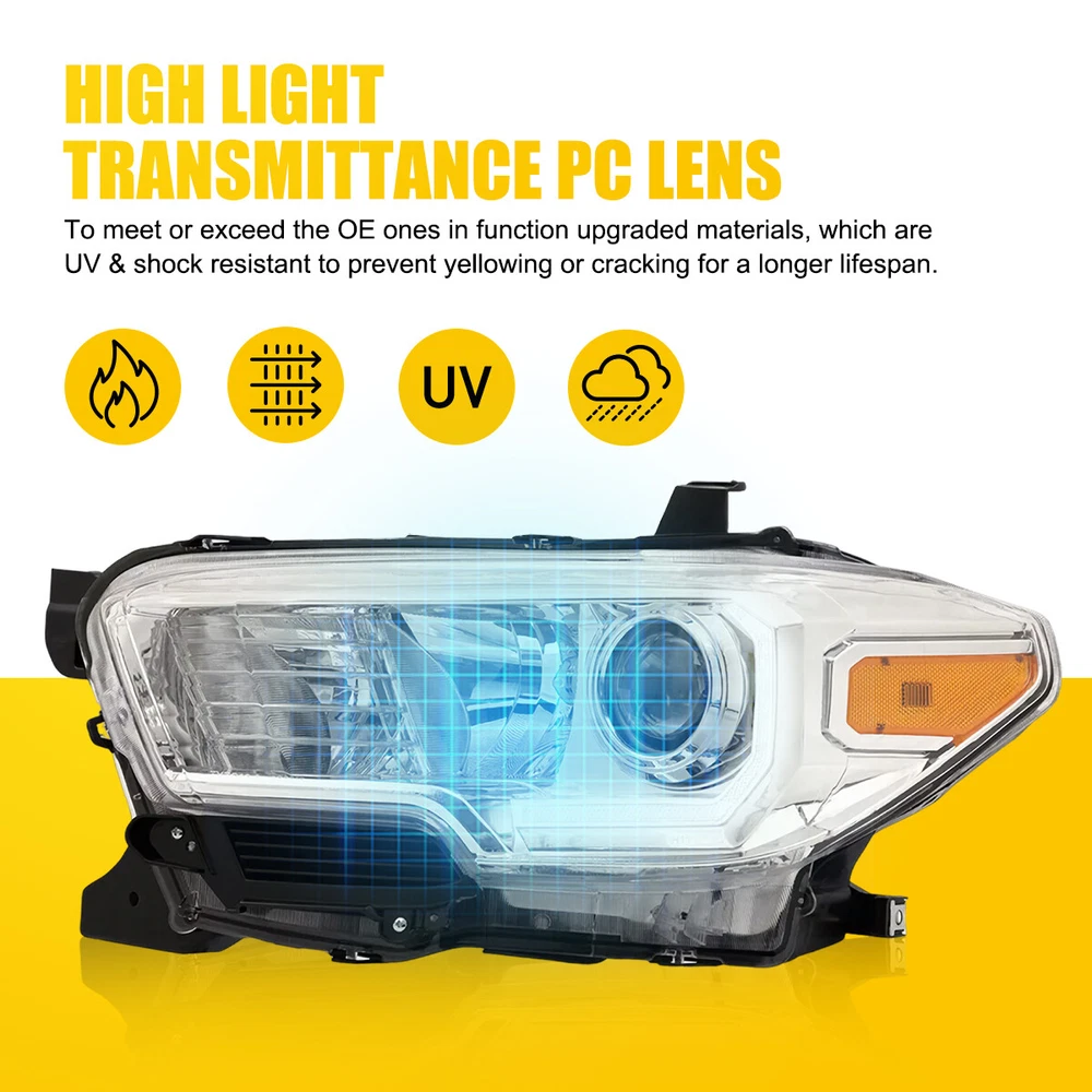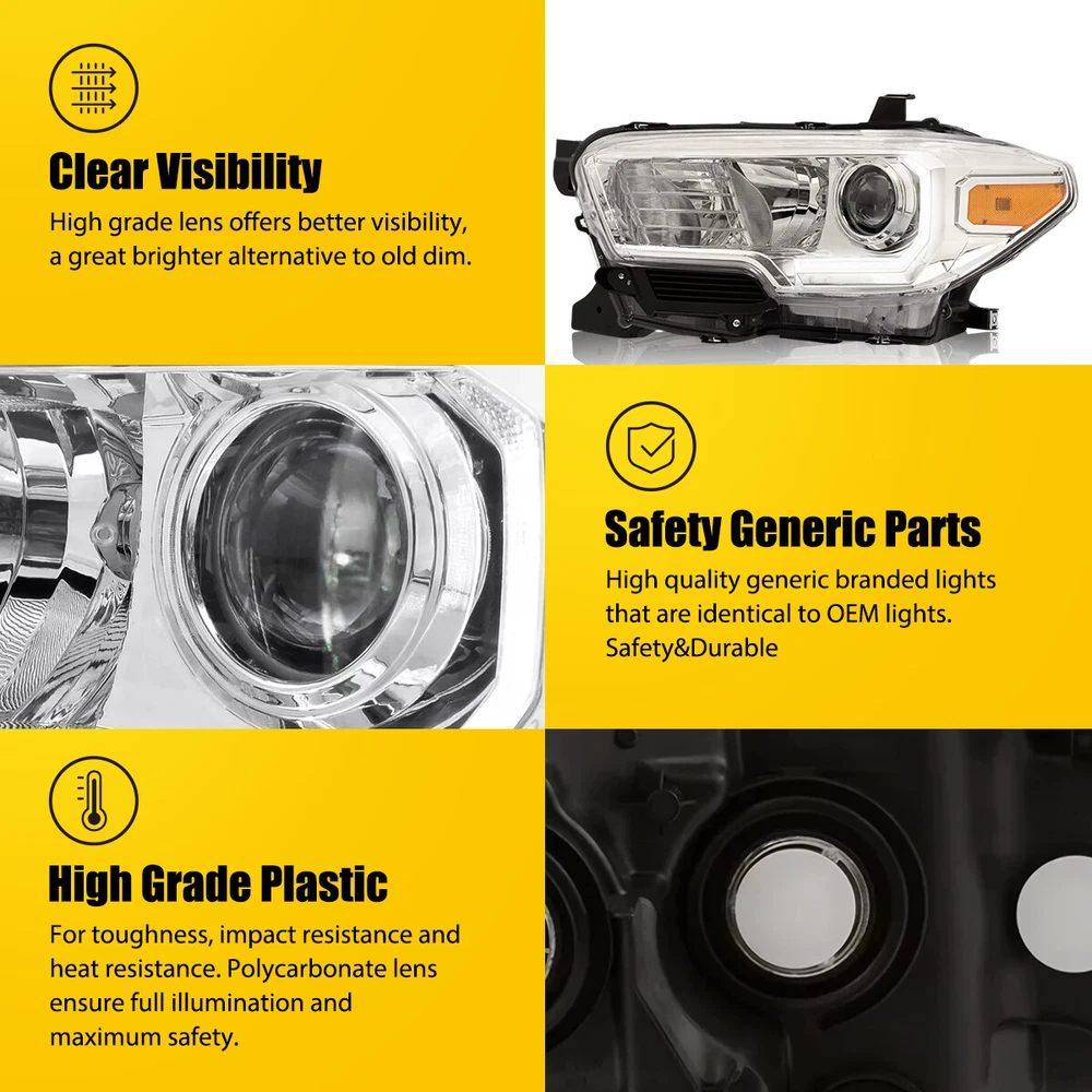 Fit for: 2016-2022 Toyota Tacoma w/ LED DRL Halogen Headlight Model Compatible w/ Factory LED DRL Halogen Headlight Models Only Not Compatible w/o Factory LED DRL Halogen Headlight Models Not Compatible 2020-2022 Full LED Headlight Models Specifications: OE number: 8115004270, 8111004270, 8111004260, 8115004260, 8115004280, 8111004280 TO2502244, TO2503244, TO2502254, TO2503254, TO2503243, TO2502243 Material: ABS+PC (ABS Plastic Housing/Polycarbonate lens) Appearance color: 1.Housing Color:Chrome 2.Lens Color:Clear 3.Reflector Color:Amber Note: Projector √( Include) For 2016-2022 Toyota Tacoma w/ LED DRL Chrome Headlights Assembly Lamps Pair Fit for: 2016-2022 Toyota Tacoma w/ LED DRL Halogen Headlight Model Compatible w/ Factory LED DRL Halogen Headlight Models Only Not Compatible w/o Factory LED DRL Halogen Headlight Models Not Compatible 2020-2022 Full LED Headlight Models Specifications: OE number: 8115004270, 8111004270, 8111004260, 8115004260, 8115004280, 8111004280 TO2502244, TO2503244, TO2502254, TO2503254, TO2503243, TO2502243 Material: ABS+PC (ABS Plastic Housing/Polycarbonate lens) Appearance color: 1.Housing Color:Chrome 2.Lens Color:Clear 3.Reflector Color:Amber Note: Projector √( Include) DRL √ (Include) Bulb × ( Not include) Features: *Easy to install: Direct replacement, drilling and cutting are not required. *Superior quality: Made of ABS and PC materials with toughness and heat resistance functions to ensure its long service life and durability. *Angle adjustment: Equipped with a headlamp Angle adjustment knob, you can adjust the best Angle of view through the knob. *Suggestion: 1.Please confirm the OE number before purchasing!!! 2.Professional installation is required!!! Packaging include: Headlights*2(Left+Right) Item Specifics Fitment Type Direct Replacement Bulbs Included No Items Included Driver Side & Passenger Side Manufacturer Part Number 81150-04260, 81150-04270 Placement on Vehicle Front Left Right Brand AUXITO Bulb Shape Code H11/ H9 Interchange Part Number TO2502244, TO2503244 Manufacturer Warranty 1 Year OE/OEM Part Number TO2502244, TO2503244 Housing Color Chrome Features DOT-Certified SAE-Certified Lens Color Clear Universal Fitment No Replace OE Number TO2502242/TO2503242 Lighting Technology Halogen Number of Bulbs 0 Type Headlight Assembly Light Color Cold White Payment Returns DESCRIPTION PAYMENT SHIPPING RETURN POLICY CONTACT US Shop Category Store Home LED Headlight ◈ H4 ◈ H13 LED Reverse Light ◈ T15/921/W16W LED License Plate Light LED Side Marker Light Car Parts & Accessories Tail Light assemblies Other Hot Item Picture New List Item 4PC Smoked Lens LED Front Side Lamp Marker White For 2003-09 Dodge Ram 2500 3500 USD 15.99 For 2015-2020 Chevy Tahoe Suburban [OE Style] LED DRL Headlights Headlamps LH USD 139.99 Smoked Lens White LED Bumper Rear Side Marker Lights For 1993-2002 Chevy Camaro USD 22.29 Pair Halogen Headlight Set For 2011-2015 Chevrolet Chevy Cruze 4-Door Sedan EOV USD 113.99 For 2016-2018 Honda HRV HR-V Chrome Housing Headlights Assembly Left&Right Pair USD 145.99 Help & Info Payment Policy Shipping Policy Return Policy FAQ About Us For 2016-2022 Toyota Tacoma w/ LED DRL Chrome Headlights Assembly Lamps Pair Fit for: 2016-2022 Toyota Tacoma w/ LED DRL Halogen Headlight Model Compatible w/ Factory LED DRL Halogen Headlight Models Only Not Compatible w/o Factory LED DRL Halogen Headlight Models Not Compatible 2020-2022 Full LED Headlight Models Specifications: OE number: 8115004270, 8111004270, 8111004260, 8115004260, 8115004280, 8111004280 TO2502244, TO2503244, TO2502254, TO2503254, TO2503243, TO2502243 Material: ABS+PC (ABS Plastic Housing/Polycarbonate lens) Appearance color: 1.Housing Color:Chrome 2.Lens Color:Clear 3.Reflector Color:Amber Note: Projector √( Include) DRL √ (Include) Bulb × ( Not include) Features: *Easy to install: Direct replacement, drilling and cutting are not required. *Superior quality: Made of ABS and PC materials with toughness and heat resistance functions to ensure its long service life and durability. *Angle adjustment: Equipped with a headlamp Angle adjustment knob, you can adjust the best Angle of view through the knob. *Suggestion: 1.Please confirm the OE number before purchasing!!! 2.Professional installation is required!!! Packaging include: Headlights*2(Left+Right) Payment Returns All rights reserved. On Dec 17, 2024 at 09:34:18 PST, seller added the following information: