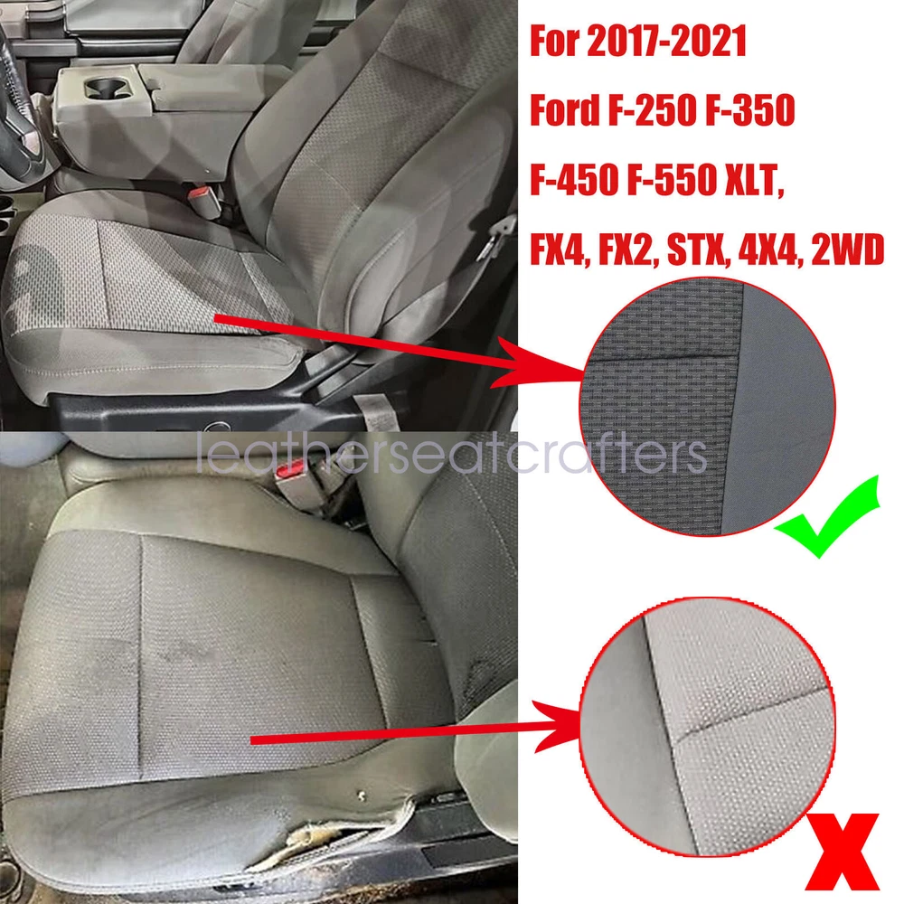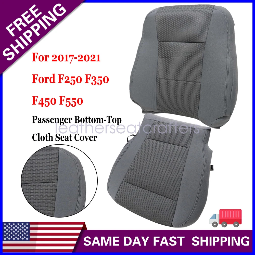 For 2017-2021 Ford F250 F350 F450 F550 XL Driver Passenger Gray Cloth Seat Cover Details For 20 17 -20 21 Ford F250 F350 F450 F550 Driver Passenger Bottom Top Replacement Cloth Seat Cover Gray Specifications : Name: Driver Passenger Replacement Bottom -Top Cloth Seat Cover Color: Gray Trim Color Code: 2S or 3S Material: Cloth Make: Ford Model: Ford F250 F350 F450 F550 Heated Seats: Fits Heated Seats and Non Heated Seats Seat Cover's Attached Padding: ½ Inch attached foam padding Fitment: 2017 Ford F-250 F-350 F-450 F-550 XLT, FX4, FX2, STX, 4X4, 2WD, Single-Cab, Quad-Cab (X-Cab), Crew-Cab 2018 Ford F-250 F-350 F-450 F-550 XLT, FX4, FX2, STX, 4X4, 2WD, Single-Cab, Quad-Cab (X-Cab), Crew-Cab 2019 Ford F-250 F-350 F-450 F-550 XLT, FX4, FX2, STX, 4X4, 2WD, Single-Cab, Quad-Cab (X-Cab), Crew-Cab 2020 Ford F-250 F-350 F-450 F-550 XLT, FX4, FX2, STX, 4X4, 2WD, Single-Cab, Quad-Cab (X-Cab), Crew-Cab 2021 Ford F-250 F-350 F-450 F-550 XLT, FX4, FX2, STX, 4X4, 2WD, Single-Cab, Quad-Cab (X-Cab), Crew-Cab Package Content: 1 x Driver Side + 1x Passenger Side Bottom -Top Replacement Cloth Seat Cover If you do not know how to install, please contact us , We can provide video installation instructions Tips: This Driver Passenger Bottom Top Replacement seat cover, built to factory specs with Quality Cloth to match the Interior of your vehicle! Our product is exactly the same as your existing cover and guaranteed to fit perfectly on your seat foam Pad. Any wrinkles seen in the pictures is from being in a box and guaranteed to disappear once installed Correctly. (Foam pad and frame are not included). Please Note: Actual Replacement Cover. NOT A SLIP ON or PULLOVER. You will remove the old cover & then install the New Cover. Communication is the best way to solve the problem. If you have any problems after purchasing, please contact us in time, before opening return or case. Shipping policy: Payment: Returns: About us: Shipping policy: 1.Orders are usually shipped within 24 hours after your payment(except weekends & official holidays). You can log on to eBay to check your logistics tracking number. 2.Please make sure to provide us with correct,precise and detailed shipping address before purchase, and cannot change it once purchased. Payment: PayPal payment accepted only.Please purchase and pay for the item through the eBay. Returns: 1.If any item is defective upon receipt or do not work, please contact us for the condition,we will provide a solution for such cases. 2.Return is accepted within 30 days after the buyer receiving the item. About us: 1.Thanks for purchasing in our store,if you have any questions, please contact us immediately. We will provide you with the high quality service. 2.If you are satisfied with our products, please give us a positive feedback. On Dec 20, 2024 at 01:43:37 PST, seller added the following information: