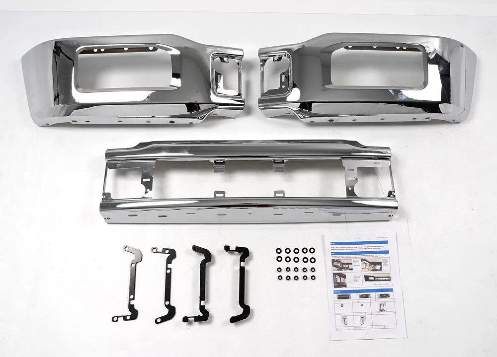 Specification: OE/OEM Part Number:JL3Z17757A Interchange Part Number:FO1002430 Color:Chrome Material :Steel Fitment 2018 - 2020 Ford F-150 Package : 1 set front bumper face bar & Installation Manual