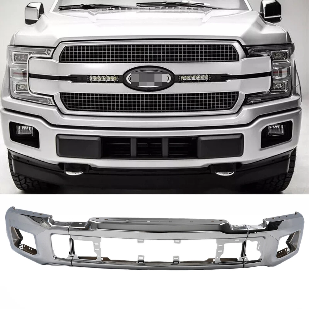 Specification: OE/OEM Part Number:JL3Z17757A Interchange Part Number:FO1002430 Color:Chrome Material :Steel Fitment 2018 - 2020 Ford F-150 Package : 1 set front bumper face bar & Installation Manual