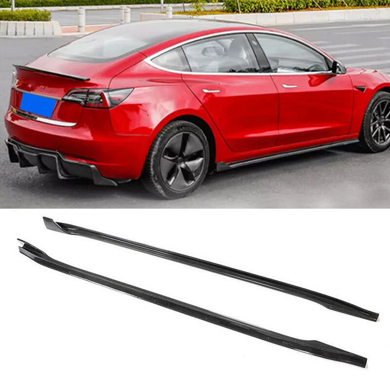For 2019-2020 Tesla Model 3 Sedan Real Carbon Fiber Side Skirt Lip Spoiler 2pcs Material :Carbon Fiber Color :Carbon Fiber Placement on Vehicle: Left, Right. Fitment Type :Direct Replacement 1Set* Side Skirt Spoiler (instructions not included, installation not included) Reminder: 1.Please check the vehicle information carefully before purchasing to make sure our items are what you need. 2.This product does not come with installation instructions, it is highly recommended to get a professional maintenance worker to do the installation. 3.If you can't determine the vehicle information, please provide the vehicle VIN and the front picture of the vehicle. 4.If you have any questions, please contact us. We will reply within 24 hours. For 2019-2020 Tesla Model 3 Sedan Real Carbon Fiber Side Skirt Lip Spoiler 2pcs Material : Carbon Fiber Color : Carbon Fiber Placement on Vehicle: Left, Right. Fitment Type : Direct Replacement 1Set* Side Skirt Spoiler (instructions not included, installation not included) Benefits of installing side skirts: Side skirts are skirts installed on both sides of the body, the effect is also equivalent to the air dam, used to reduce the airflow from both sides of the body into the bottom of the car. Has a certain spoiler effect, under certain conditions can significantly reduce air resistance, side skirt is part of the body spoiler kit, aesthetics is the second. Can reduce the reverse airflow generated by the vehicle traveling, high-speed as if the ground sucked chassis, a large degree of increased operational stability. It can make the wind resistance generated when the car running at high speed from the bottom of the car, so as not to cause the vehicle to drift when driving. Reminder: 1.Please check the vehicle information carefully before purchasing to make sure our items are what you need. 2.This product does not come with installation instructions, it is highly recommended to get a professional maintenance worker to do the installation. 3.If you can't determine the vehicle information, please provide the vehicle VIN and the front picture of the vehicle. 4.The parts are strictly carried out by the factory for production and production, and we are committed to creating the most perfect items. 5.If you have any questions, please contact us. We will reply within 24 hours.