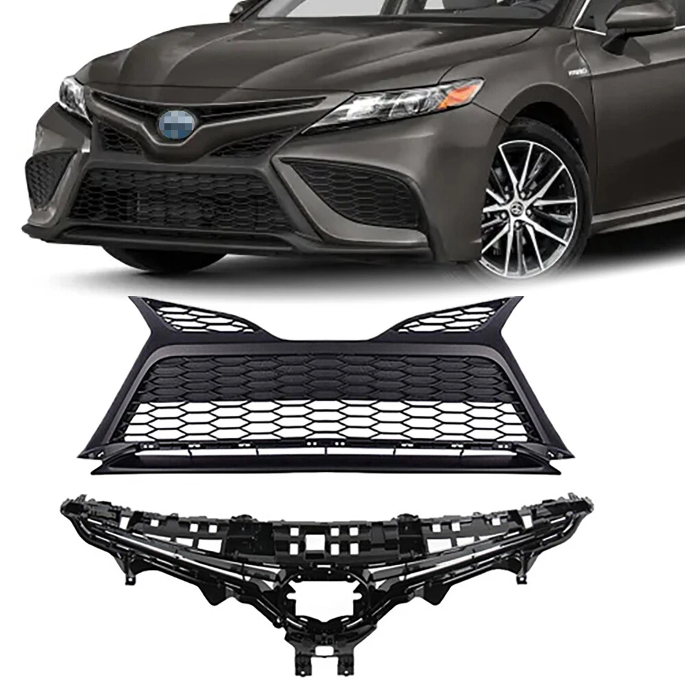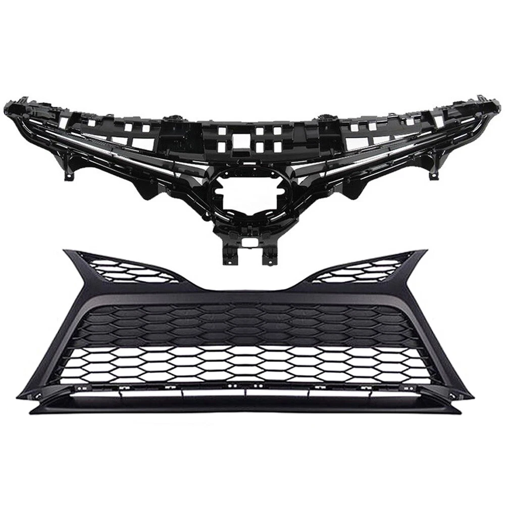 For 2021 2022 Toyota Camry SE XSE Front Upper Lower Bumper Grille Assembly Set Note You need to replace the vehicle logo by yourself if it isn't suitable in some models. Features: 100% Brand New Made from high-quality ABS Polished finish with luxury feel Precise fitment. No modifications needed Factory Style Fitment: 2021 2022 Toyota Camry SE XSE. Will not fit L LE XLE models. For models without Parking Sensors Package Included: 2x Front Grille Notes: Professional Installation is Highly Recommended Installation Instruction is NOT Included An awesome grille not only enhances the overall appearance of your vehicle, but also helps the engine stay cool and prevents debris from passing through. Our high-quality grilles are made from durable and lightweight ABS and feature luxury designs that will transform your vehicle's appearance.