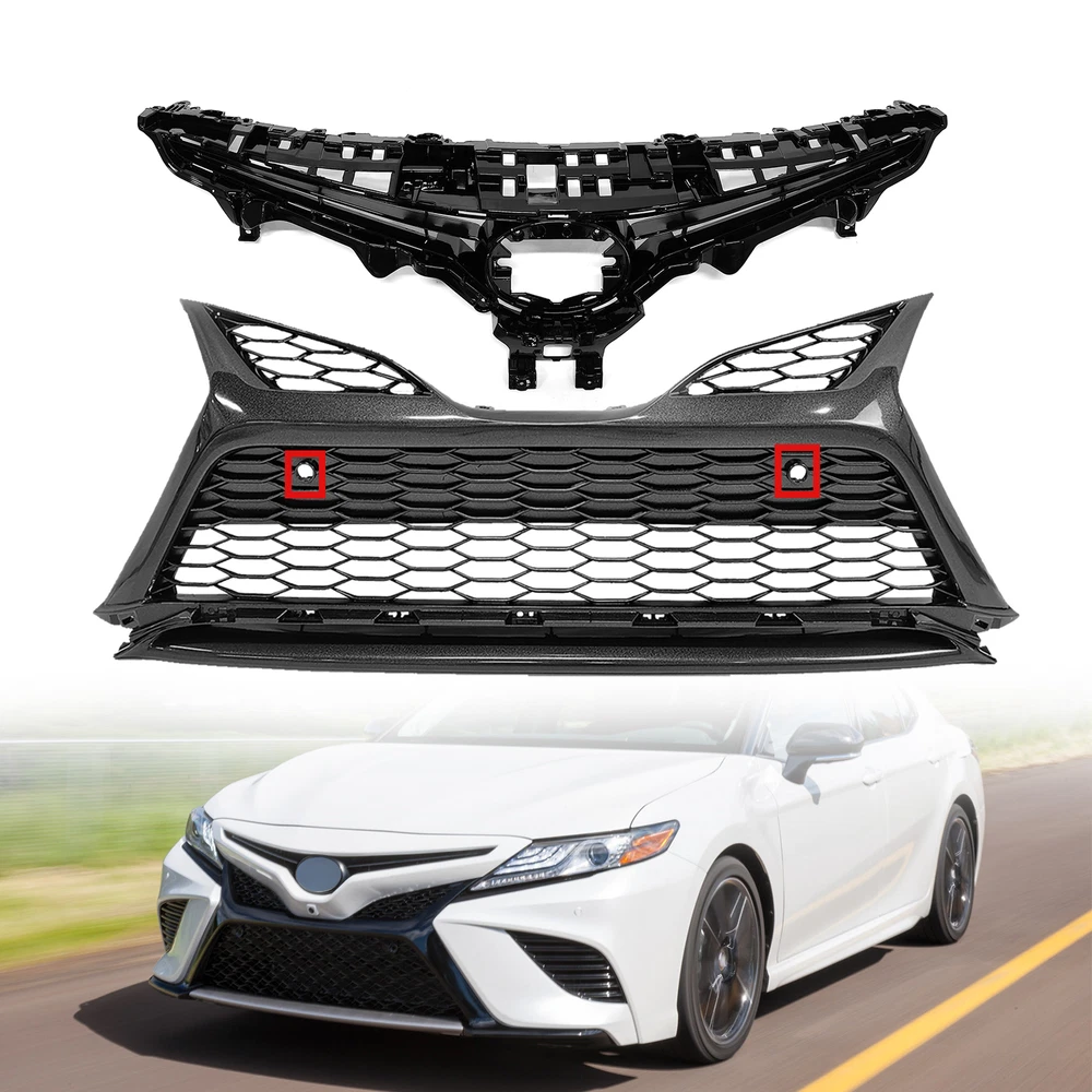 Product Description Features: Made of high quality finished ABS plastic - extremely durable. An excellent replacement of your old fashion stock grille, which gives your vehicle a unique look in the crowd. Custom fit application for each car.Easy to install. Easy to install, no modification needed. High strength, good toughness, corrosion resistant and not easily bent or cracked. Unique design makes your car more edgy and dominant. Fitment: For 2021 2022 Toyota Camry SE XSE Package includes: 2PCS Black Front Bumper Upper Lower Grille Se About Returns Better Experience: Please contact us regarding any problem of the product before leaving the negative feedback, we will try our best to solve the problem. Please double check the OE number or fitment before place the order, the buyer is responsible for the return cost if order wrong item or does not like it etc. We provide free return in some products, please make sure to use the original package for return, and make sure wrap well to avoid any surcharge due to box oversized or item damaged when it is returned. Thank you for your purchase and support! We are committed to our customer's satisfaction. Shipping from USA (usually 2-6 days), Fast Shipping and Good Service. About Returns Please contact us regarding any problem of the product before leaving the negative feedback, we will try our best to solve the problem. Please double check the OE number or fitment before place the order, the buyer is responsible for the return cost if order wrong item or does not like it etc. We provide free return in some products, please make sure to use the original package for return, and make sure wrap well to avoid any surcharge due to box oversized or item damaged when it is returned. Thank you for your purchase and support! Better Experience: We are committed to our customer's satisfaction. Shipping from USA (usually 2-6 days), Fast Shipping and Good Service. powered by