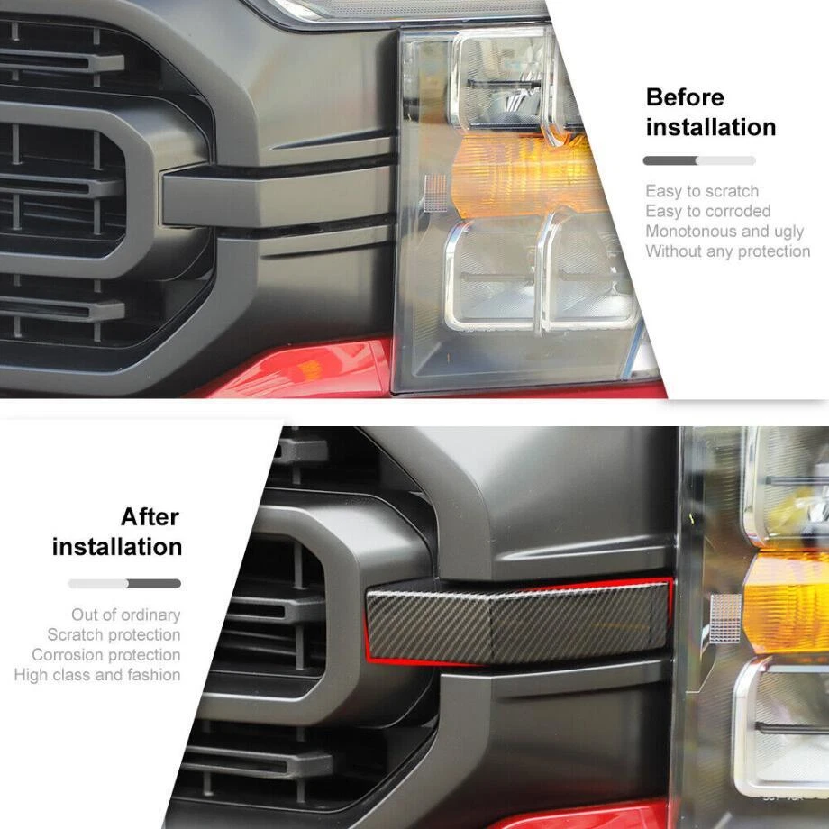Fitment: Fit For Ford F150 F-150 2021 2022 2023 "Before purchase Please note that this product only fits the Ford F150 F-150 (XL, XLT) car model" Feature: Condition:100% Brand new Material: Made of high quality ABS Color: Carbon Fiber Style(Black) Package including:2PCS Made in a ISO9001 Factory,good quality and have been exported all over the world Easy installation.3M automotive adhesive tape is attached. (Sold as seen, please ensure suitability carefully before purchase) INSTRUCTION MANUAL IS NOT INCLUDED For 2021-2023 Ford F150 F-150 Carbon Fiber Front Grille Insert Cover Trim Bezels Fitment: Fit For Ford F150 F-150 2021 2022 2023 "Before purchase Please note that this product only fits the Ford F150 F-150 (XL, XLT) car model" Feature: Condition:100% Brand new Material: Made of high quality ABS Color: Carbon Fiber Style(Black) Package including:2PCS Made in a ISO9001 Factory,good quality and have been exported all over the world Easy installation.3M automotive adhesive tape is attached. (Sold as seen, please ensure suitability carefully before purchase) INSTRUCTION MANUAL IS NOT INCLUDED Installation method: Step1: please clean the place with 50% alcohol to make sure no dust. Step2: remove the 3m glue in back; Step3 : heat the 3m glue by hot air gun;(A tip for putting on with supplied 3m tape is to warm the handles and the covers this makes the glue on the tape more sticky and they will stay on for ever!) Step 4: install the products in the right place ,Don't wash your car within 48hours. Customer Service If you cannot find the answers to your questions in this listing, please contact us , we will reply u ASAP,we will try our best to pleasure to serve u ! we hope have more happy and longtime shopping experience with u ! Shipping We will ship your order within 120 hours after receiving your verified payment (Excluding Weekends and Public Holidays) ! If u need delivery now , pls inform us , we will delivery it ASAP! shipping Shipping and handing Payment Refunds and returns About us shipping Country Approx / Delivery time United States : 8-25 working days United Kingdom / Australia / Canada : 20-35 working days Brazil / South America : may take up to 5-8 weeks due to strict Custom Inspection Italy / France / Spain / Germany/Eastern Europe : may take up to 6-8 weeks due to strict Custom Inspection Shipping and handing Item will be shipped within 24 -48 hours after full payment is received. · We ship worldwide with flat rate China Post , and other standard international shipping. this international order may take a longer time to arrive, Normally the shippment to worldwide is used to take 8 to 25 business days, exclude Weekend. Payment We accept PayPal only. Payment must be received in 7 business days of auction closing. Any special request cannot be accepted after 24 hours of payment, because most of orders will be processed instantly and same day dispatched. Refunds and returns Please contact us before leaving Netural or Negative feedback if you are not satisfied our service or products. Good communication is helpful for both of us to resolve any problems and issues. We are promising to try our best to provide the best service and 100% satisfaction for valuable buyer like you · All of the items are new. If it is not in new conditions, refund is offered. Otherwise, replacement can be offered for defective product. We will exchange or give the seller credit to buyer. · Please email us for all returns, and exchange shipping and handling charges are non-refundable. · Customers are responsible for return shippment fee except for wrong shipment or defective products. About us If you have any questions, please feel free to email our service specialists 24 Hours a Day, 7 Days a Week, and we will reply you ASAP. If no response within 24 Hours, please check the spam of mail box or kindly re-send it to us. We greatly appreciate your POSITIVE feedback. Please do NOT leave negative or neutral feedback without any contact. If you haven't received item in 30 days, please contact us and we will arrange refund. Advantage Will Never fade or rust Country/Region of Manufacture China Items Automotive > Exterior Accessories Approve Made in an ISO 9001 facility to ensure good quality Color Carbon Fiber Style(Black) Manufacturer Part Number Does Not Apply Placement on Vehicle Exterior, Front, Left, Right Brand Unbranded Fitment Type Paste covering decorations Manufacturer Warranty 1 Year External Testing Certification ISO9001(ISO9001) Compatible with For Ford F150 F-150 2021 2022 2023 Material High quality ABS plastic Features Beautiful & Scratch Resistant Finish Painted Type Hood Package include 2PIECES/SET