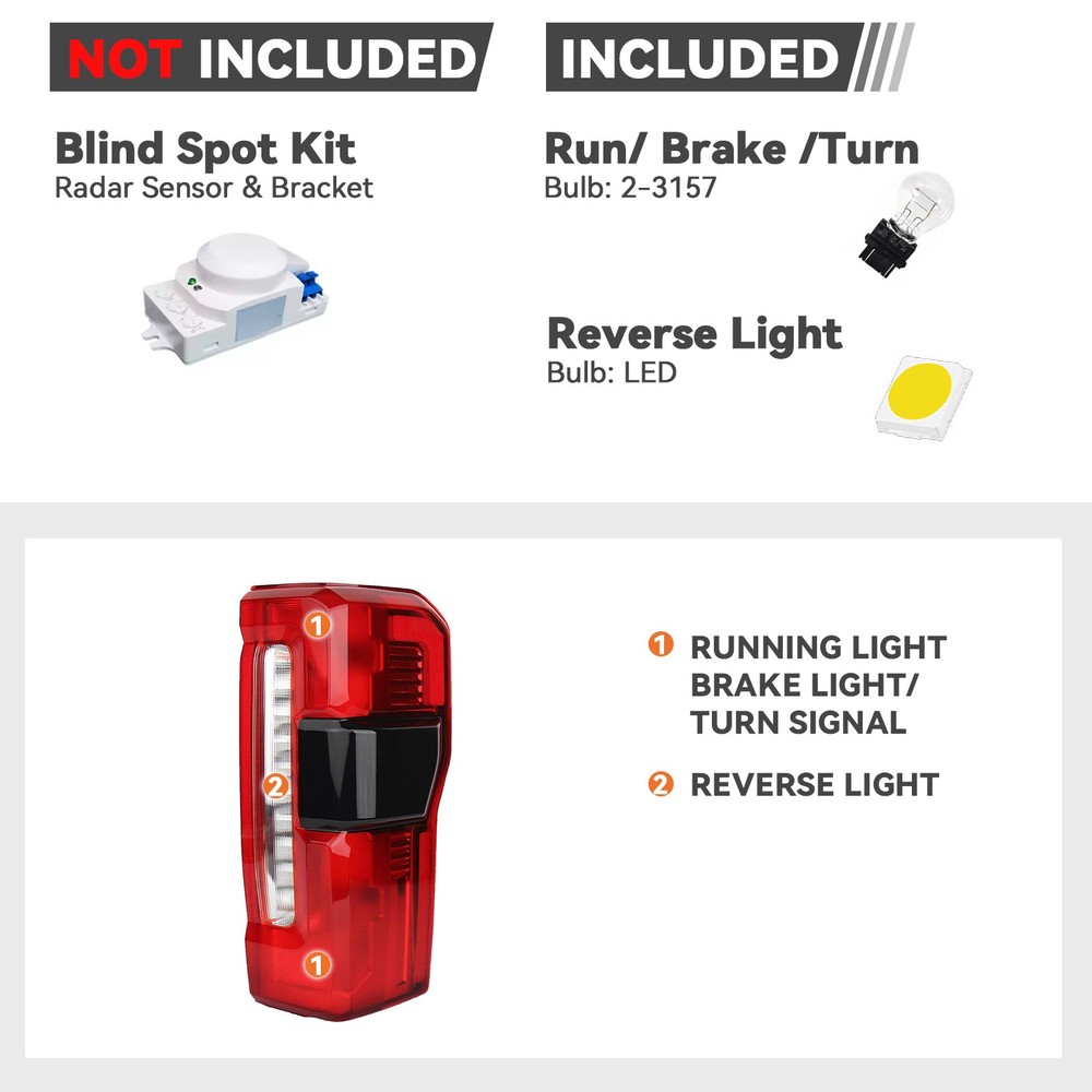 For 2023-2025 Ford F-250 Super Duty Halogen Tail Light Rear Lamp With Blind Spot Passenger Right Side Fitment For 2 023 2024 2025 Ford F-250 Super Duty King Ranch, Lariat, XL, XLT With Blind Spot Information System Without Blind Spot Module Please Re-use original Blind Spot module. Description This tail light assembly is a direct replacement for your original tail light, ensuring a perfect fit and easy to install. Providing with bright and clear illumination,this tail light assembly is DOT and SAE certified, meaning it meets or exceeds the standards for quality and safety. Item Specifications OEM: PC3Z13404B Fits Following: For Ford f250 Super Duty_23 24 25 Condition: 100% Brand New Warranty: 1 Year Fitment Type: Direct Replacement Lighting Technology: Halogen Material: Plastic Interchange Part Number: P C3Z-13404-J, PC3Z-13404-E, PC3Z-13404-F Package Content 1pc Passenger Right Side Tail light ( OEM: PC3Z13404B ) Features Direct Replacement. Perfect fitment. Made of fresh raw plastic particles, got better density consistency and tenacity. Reliable after-sales guarantee. Shipping The Guaranteed Date is automatically generated and displayed by ebay. We can't change it.But we will ship your item out asap after the payment is clear. Usually your Items will be shipped within 1 business day after your payment is cleared. International orders may take 10 to 30 business days to arrive.Thanks for your patience. Return If the package arrives at your location with obvious shipping damage (including broken envelop, empty package and etc), please refuse the shipment. If you find the item is defective after you accept the shipment, please save everything that is attached in the package, including all the documents, and contact us immediately, either through eBay message or email address. You need to state your item ID, item title and what the damage is clearly in your email. And please be advised that digital photos must be attached to the email you send. Notice If you have any questions, please contact to us before leaving bad feedback, we will try our best to solve your problems, thanks for your understanding. On Jan 28, 2026 at 19:44:29 PST, seller added the following information: On Jan 28, 2026 at 22:47:15 PST, seller added the following information: