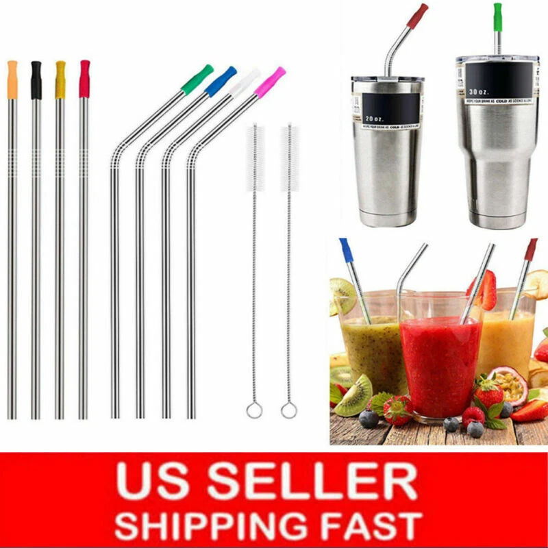 Product Description Features: 1.Set of 8 metal straws and 2 straw cleaning brushes: 4 pieces 10.5" straight straws and 4 pieces 10.5" bent straws for 30oz tumblers and 2 pieces 9.4" straw cleaning brushes. 2.Made of food-grade 304 stainless steel, environmentally friendly, plastic free and BPA free, no metal aftertaste, reusable and dishwasher safe. 3.Perfect for cold drink, cocktail, soda, juice, ice tea, etc.The sturdiness also make them great stir sticks. 4.With removable soft silicon covers, you will never again experience hot or cold metal on your lip. 5.Ideal for any parties and convenient to take them anywhere with you, family reunion, girl's night out, cocktail party, Patio BBQ, picnics, boating and more. 6.Easy to clean with 2 cleaning brushes. Featuring a stainless steel handle and nylon bristles, the brush is of the perfect size for these straws, also suitable for cleaning cups and bottles. Specification: Material: Straws: 304 Stainless Steel Cleaning Brushes: 304 Stainless Steel+Nylon Bristles Size: Straws: 6*267mm Cleaning Brushes: 240mm Package -1 4 x Stainless Steel Bent Straws +4 Straight Straws +2 x Straw Cleaning Brushes 8 x Silicon Covers (Random Colors) Package -2 2 bent+2 straight+1 brush (NO Silicon Covers) Package -3 3 bent+3 straight+1 brush (NO Silicon Covers) Package -3 1 x Stainless Steel Bent Straws (NO Silicon Covers) Package -4 1 x Stainless Steel Straight Straws (NO Silicon Covers) Payment Shipping Returns PayPal is easy and safe, and we accept PayPal payment. Please do not hesitate to contact us if you have any questions of payment procedures. Services Handling time Insurance Tracking Number USA Standard Shipping 1-6 Not include With CANADA USPS First Class Mail \International 5-10 Not include With Items dispatched to buyer's PayPal confirmed address from Monday to Friday ( Weekend & Holiday excluded ) via USPS after payment has been received. Please check your shipping address carefully before checkout. If you want to change the address, pls kindly contact us through ebay message within three hours after payment. Otherwise, any change information may be disregarded once dispatched. Postage includes packaging material, shipping label, handling fee and so on. Do not provide local pick up service. Our purpose as a seller on ebay is trying our best for 100% customer's satisfaction. We will leave positive feedback for you once receiving your payment. If you feel delighted with this transation,Pls give us all 5-stars . We strive for 5-star service by providing high-quality goods and perfect service.Therefore,pls take the transaction seriously. (Positive) feedback is simply what we seek for. If you have any problems about your purchase,just let us know through "MY MESSAGES" . We promise that we will try our best to solve problem for you since our mission as ebay seller is make sure that you are satisfied with your every transaction. So Pls contact us first to get the best solution before leave a (Negativa) or (Neutral) feedback. ^ ^ Thank you so much! ^ ^ Do believe: It needs cooperation and negotiation between buyer and seller to seek a solution for the problem, any bad feedback is little value. Payment PayPal is easy and safe, and we accept PayPal payment. Please do not hesitate to contact us if you have any questions of payment procedures. Shipping Services Handling time Insurance Tracking Number USA Standard Shipping 1-6 Not include With CANADA USPS First Class Mail \International 5-10 Not include With Items dispatched to buyer's PayPal confirmed address from Monday to Friday ( Weekend & Holiday excluded ) via USPS after payment has been received. Please check your shipping address carefully before checkout. If you want to change the address, pls kindly contact us through ebay message within three hours after payment. Otherwise, any change information may be disregarded once dispatched. Postage includes packaging material, shipping label, handling fee and so on. Do not provide local pick up service. Returns Our purpose as a seller on ebay is trying our best for 100% customer's satisfaction. We will leave positive feedback for you once receiving your payment. If you feel delighted with this transation,Pls give us all 5-stars . We strive for 5-star service by providing high-quality goods and perfect service.Therefore,pls take the transaction seriously. (Positive) feedback is simply what we seek for. If you have any problems about your purchase,just let us know through "MY MESSAGES" . We promise that we will try our best to solve problem for you since our mission as ebay seller is make sure that you are satisfied with your every transaction. So Pls contact us first to get the best solution before leave a (Negativa) or (Neutral) feedback. ^ ^ Thank you so much! ^ ^ Do believe: It needs cooperation and negotiation between buyer and seller to seek a solution for the problem, any bad feedback is little value. powered by