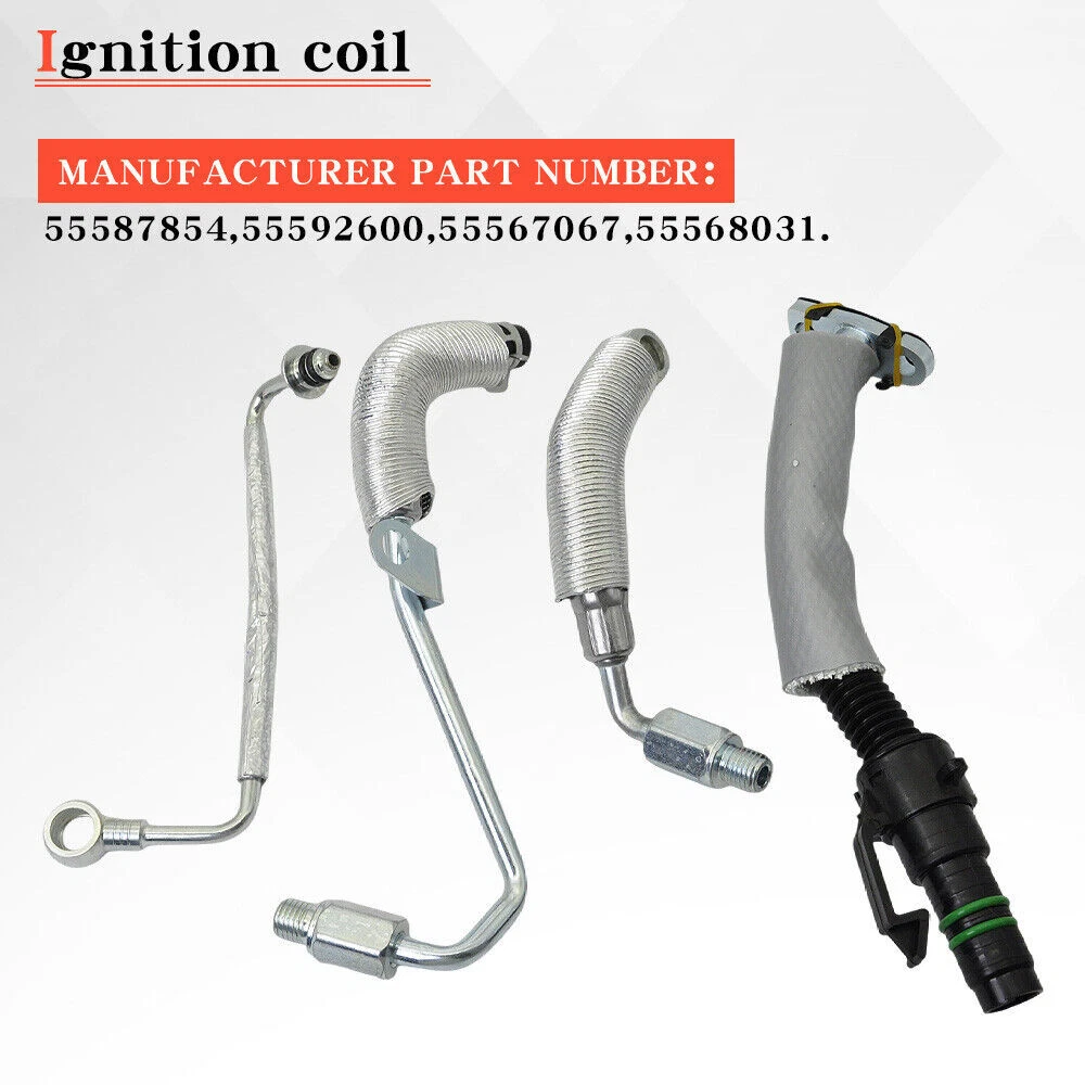 For Chevy Cruze/Buick GM 1.4L 55567067 Turbo Oil Return Drain Oil Feed Pipe Kit Product Description Description: 100% Brand New. (Never Been Used or Installed) Engineered improvements have been incorporated into parts with a high failure rate to improve performance and longevity. A proper functioning Turbocharger Oil Line is needed to avoid engine failure Direct replacement for a proper fit every time This part has undergone SAE J343 testing for burst, tensile, cold bend and leakage Turbocharger Oil Return Line also available Fitment: Fit for 2013-2019 Buick Encore 1.4L L4 Fit for 2011-2019 Chevy Cruze 1.4L L4 Fit for 2012-2019 Chevy Sonic 1.4L L4 Fit for 2013-2019 Chevy Trax 1.4L L4 Fit for 2016 Chevy Cruze Limited 1.4L L4 Package Includes: TURBO OIL FEED PIPE *1 TURBO OIL RETURN DRAIN PIPE *1 1pcs 8.5" Turbo Charger Coolant Return Hose Line 1pcs Turbo Charger Cooling Feed Line Pipe (As pictures show)
