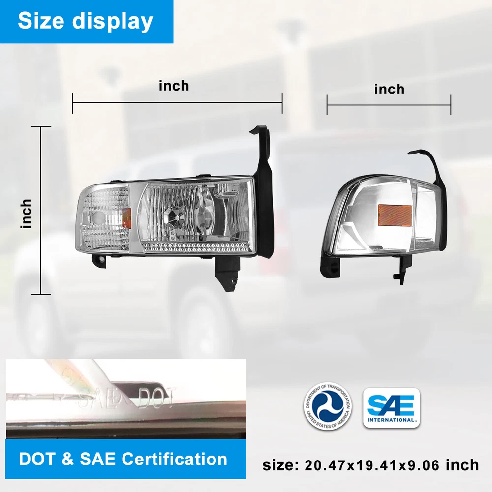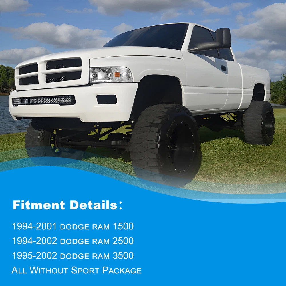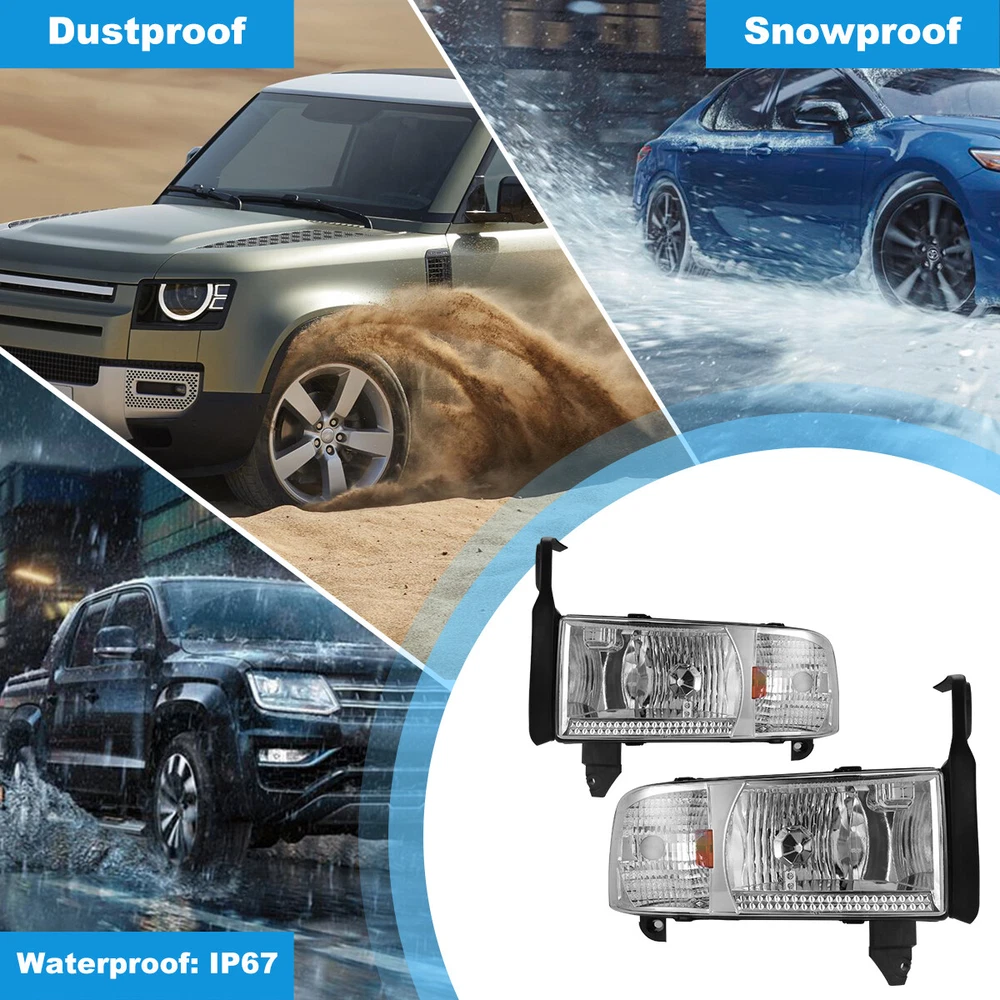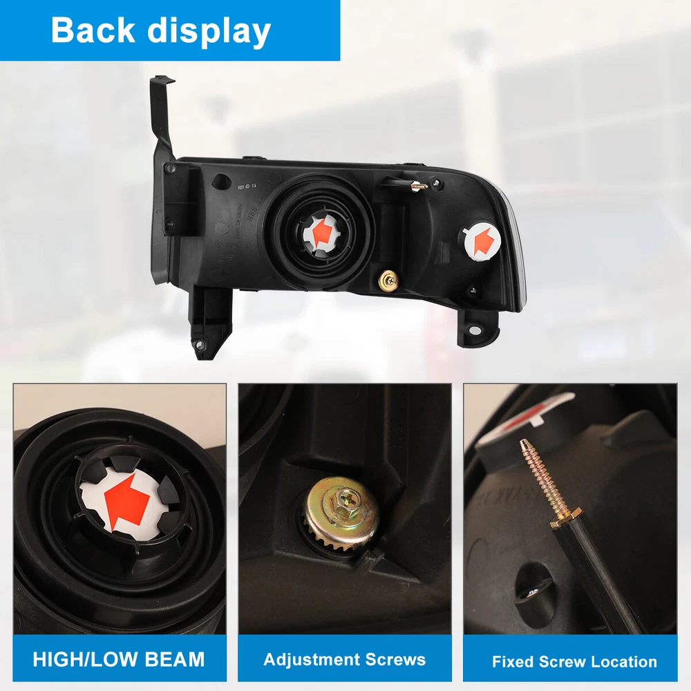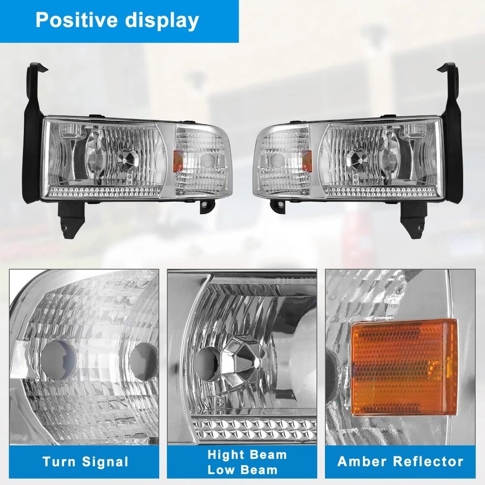 For 94-01 Dodge Ram 1500 2500 3500 Headlights Replacement Assembly Front Lamps Specification: High & Low Beam Bulb: Not included (9004, pls use the stock bulbs or the original lights of car) Turn Signal Light: Bulbs Not included Wiring Harness: Not included Color Finish: Chrome housing / Clear lens Replace Original (OE) Part #: L: 55076749AD, 55076749AI, 55076749AO; R: 55076748AD, 55076748AI, 55076748AO Fitment: 1994-2001 Dodge Ram 1500 1994-2002 Dodge Ram 2500 3500 1995-2002 Dodge Ram 4000 * Attention: All Not fit for Sport Package bumper models Package includes: 1 pair of Headlights(left and right side) Dual Beam Light Bulbs and Turn Siganl Light Bulbs are NOT included Payment Delivery details Terms of sales About us Contact us Payment 🤟 We accept PayPal (Recommended), credit card, VISA, Google Pay & Discover etc. 🤟 Please submit your payment within 7 days after your purchase. 🤟 If not, eBay will automatically open an Unpaid Item Dispute on our behalf if the item(s) are not paid within 7 days. Delivery details 🤟 Please double check your delivery address and contact information. 🤟 All items will be shipped within 1 business days after payment received. 🤟 Tracking numbers will be easily accessible ASAP they are created and processed. Terms of sales 🤟 Free 60 days Return, we will cover the return post fee. 🤟 If a defective product was received, please do not hesitate to message us via eBay message. 🤟 We will response in 24 hours in business to resolve the problem 🤟 We stand behind our products. Items can be returned for exchange or full refund within 60 days from the date you receive. About us 🤟 Winjet has a huge warehouse and office located in the United States. 🤟 All US domestic 48 states customers are able to benefit from the FREE SHIPPING services. 🤟 Our experienced, professional customer service representatives offers prompt and courteous service. 🤟 Best quality products, outstanding services and professional experience keep our customers. Contact us 🤟 Please feel free to contact us if you have any problems. 🤟 Emails will be replied within 24 hours in working days. 🤟 After hours emails will be replied on the next business day.