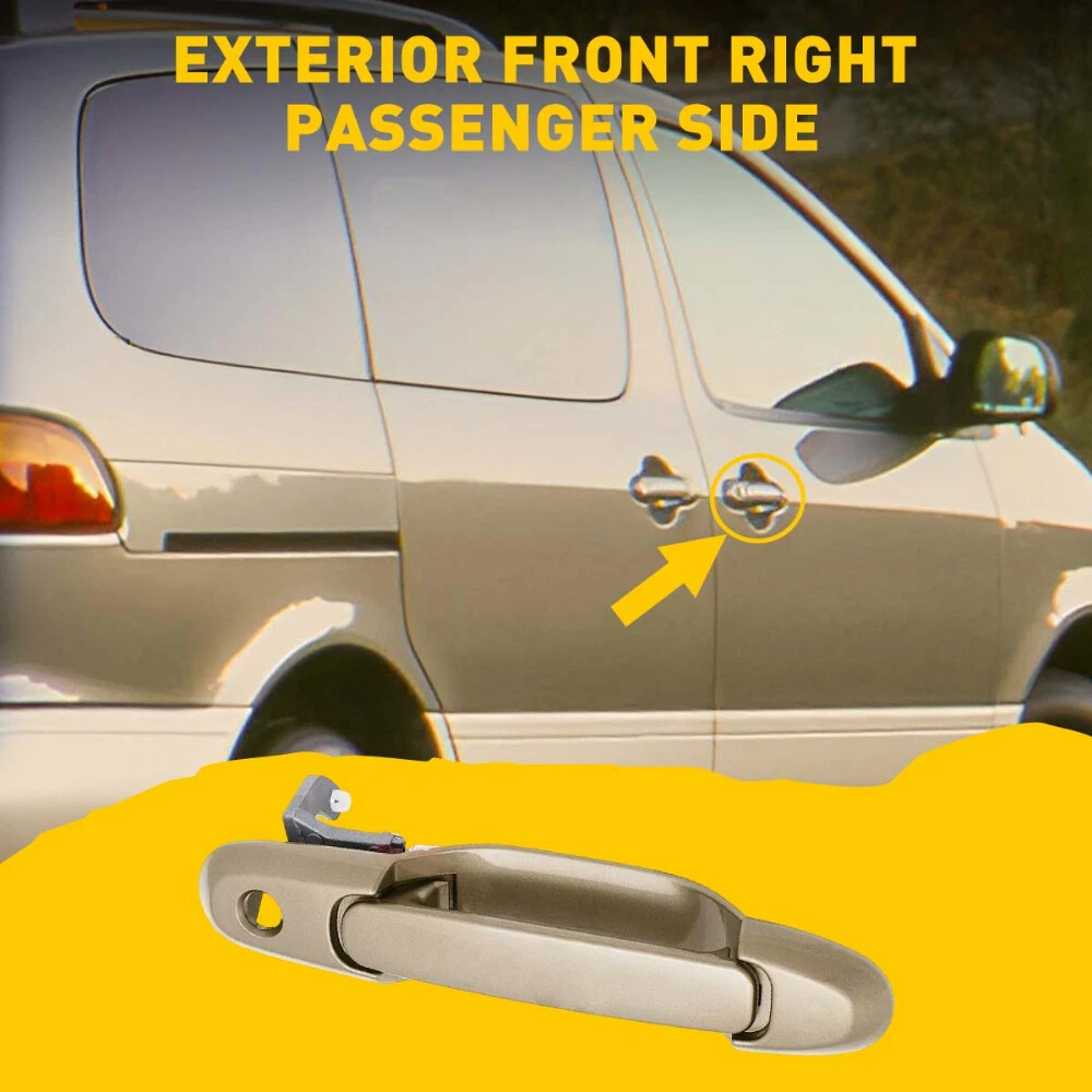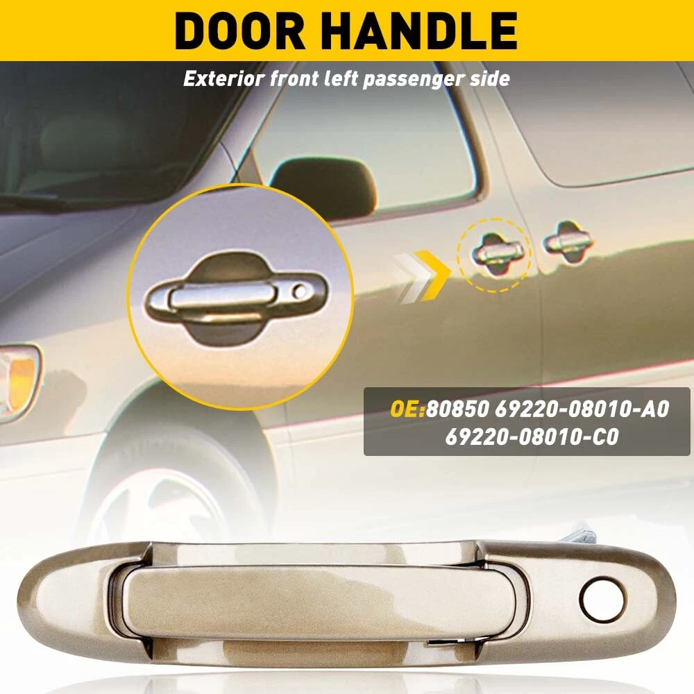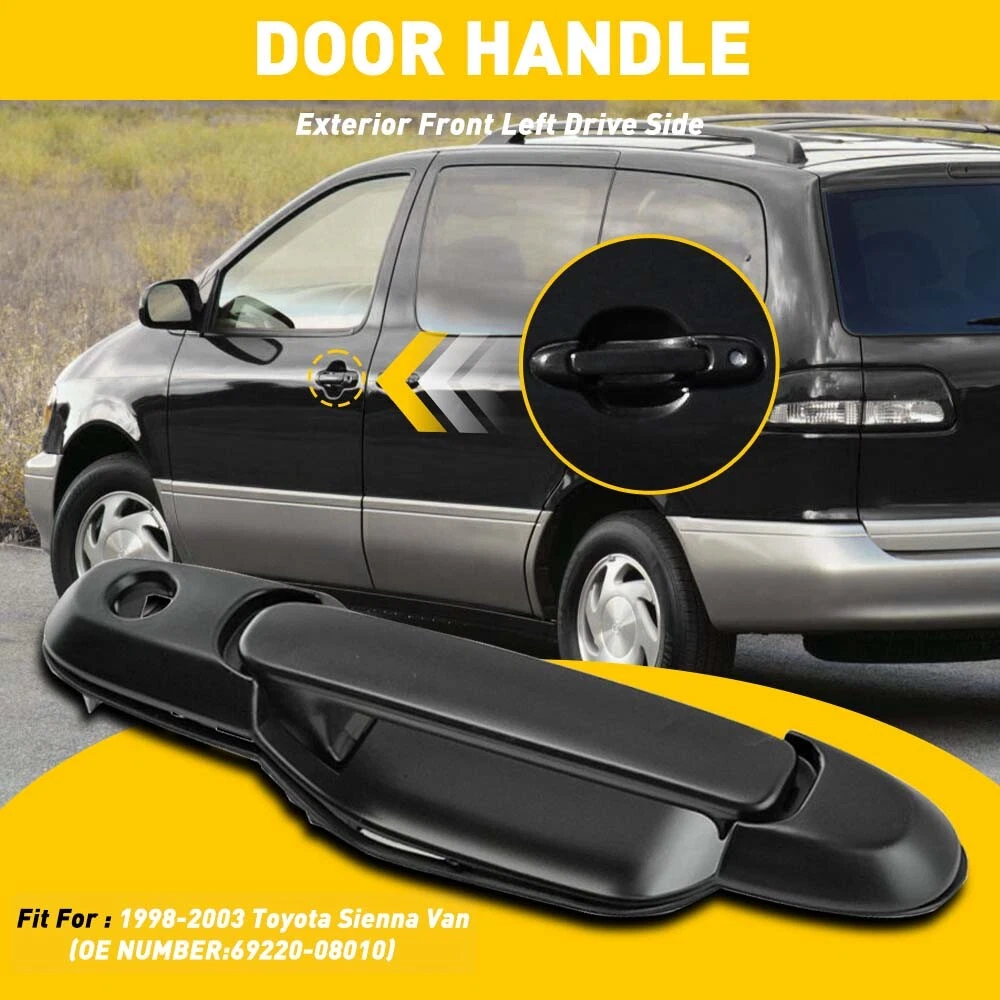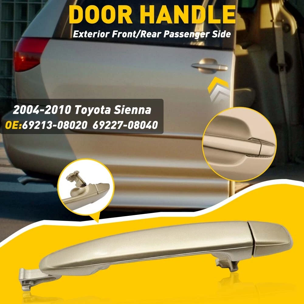 For 1998-2003 Sienna -Rear White Fit for: 1998-2003 Toyota Sienna Specifications: OE number:80359, 69230-08020-C0 Product color:White Placement on vehicle: Exterior door handle(rear left,right) Features: *Perfect fit Comply With OEM Design, Use It With Confidence. *Strict Quality Control All of our handles undergo strict quality control not just before shipping but throughout the production process. *Durable Mainly made of high-quality plastic material to ensure the durability. For 98-03 Toyota Sienna Rear Left or Right Sliding Exterior Door Handle White M For 1998-2003 Sienna -Rear White Fit for: 1998-2003 Toyota Sienna Specifications: OE number: 80359, 69230-08020-C0 Product color:White Placement on vehicle: Exterior door handle(rear left,right) Features: *Perfect fit Comply With OEM Design, Use It With Confidence. *Strict Quality Control All of our handles undergo strict quality control not just before shipping but throughout the production process. *Durable Mainly made of high-quality plastic material to ensure the durability. Packaging include: Door handle*1 For 1998-2003 Sienna -Rear Gold Fit for: 1998-2003 Toyota Sienna Specifications: OE number: 80359, 69230-08020-C0 Product color:Beige Placement on vehicle: Exterior door handle(rear left,right) Features: *Perfect fit Comply With OEM Design, Use It With Confidence. *Strict Quality Control All of our handles undergo strict quality control not just before shipping but throughout the production process. *Durable Mainly made of high-quality plastic material to ensure the durability. Packaging include: Door handle*1 For 1998-2003 Sienna -Rear Black Product Name: Door Handle Style: OE Style Categories: Outside, Exterior Door, Rear Right or Left Part Number: 69230-08020-C0 Fits Model: 1998 1999 2000 2001 2002 2003 Toyota Sienna Van Description: 100% Brand New Door Handle. High quality material, best performance and reliability. Without modification, direct replacement. Based on the same original-equipment designs. Color: Black Position: Rear Right or Left Package included: 1x Exterior Door Handle To Fit: with key hole 1998 1999 2000 2001 2002 2003 Toyota Sienna Van OE Number: 69230-08020-C0 " For 1998-2003 Sienna -Front Right White Fit for: 1998-2003 Toyota Sienna Specifications: OE number: TO1310126,80357, 69210-08010-C0 Color:White Placement on vehicle: Exterior door handle(front right) Material: Plastic Features: *Perfect fit Comply With OEM Design, Use It With Confidence. *Strict Quality Control All of our handles undergo strict quality control not just before shipping but throughout the production process. *Durable Mainly made of high-quality plastic material to ensure the durability. Packaging include: Door handle*1 For 1998-2003 Sienna -Front Right Gold Fit for: 1998-2003 Toyota Sienna Specifications: OE number: TO1310126,80357, 69210-08010-C0 Color:beige Placement on vehicle: Exterior door handle(front right) Material: Plastic Features: *Perfect fit Comply With OEM Design, Use It With Confidence. *Strict Quality Control All of our handles undergo strict quality control not just before shipping but throughout the production process. *Durable Mainly made of high-quality plastic material to ensure the durability. Packaging include: Door handle*1 For 1998-2003 Sienna -Front Right Black Product Name: Door Handle Style: OE Style Categories: Outside, Exterior Door, Front Right Part Number: 80357、69210-08010-C0 Fits Model: 1998 1999 2000 2001 2002 2003 Toyota Sienna Van Description: 100% Brand New Door Handle. High quality material, best performance and reliability. Without modification, direct replacement. Based on the same original-equipment designs. Color: Black Position: Front Right Package included: 1x Exterior Door Handle To Fit: with key hole 1998 1999 2000 2001 2002 2003 Toyota Sienna Van OE Number: 80357、69210-08010-C0 For 1998-2003 Sienna -Front Left White Fit for: 1998-2003 Toyota Sienna Specifications: OE number: 80850, 69220-08010-A0,69220-08010-C0 Color:White Placement on vehicle: Exterior door handle(front left) Material: Plastic Features: *Perfect fit Comply With OEM Design, Use It With Confidence. *Strict Quality Control All of our handles undergo strict quality control not just before shipping but throughout the production process. *Durable Mainly made of high-quality plastic material to ensure the durability. Packaging include: Door handle*1 For 1998-2003 Sienna -Front Left Gold Fit for: 1998-2003 Toyota Sienna Specifications: OE number: 80850, 69220-08010-A0,69220-08010-C0 Color:beige Placement on vehicle: Exterior door handle(front left) Material: Plastic Features: *Perfect fit Comply With OEM Design, Use It With Confidence. *Strict Quality Control All of our handles undergo strict quality control not just before shipping but throughout the production process. *Durable Mainly made of high-quality plastic material to ensure the durability. Packaging include: Door handle*1 For 1998-2003 Sienna -Front Left Black Product Name: Door Handle Style: OE Style Categories: Outside, Exterior Door, Front Left Part Number: 69220-08010 Fits Model: 1998 1999 2000 2001 2002 2003 Toyota Sienna Van Description: 100% Brand New Door Handle. High quality material, best performance and reliability. Without modification, direct replacement. Based on the same original-equipment designs. Color: Black Position: Front Left Package included: 1x Exterior Door Handle To Fit: with key hole 1998 1999 2000 2001 2002 2003 Toyota Sienna Van OE Number: 69220-08010 For 2004-2010 Sienna -Rear White Fit for: 2004-2010 Toyota Sienna Specifications: OE number: 69213-08020, 69227-08040 Color:White Placement on vehicle: Exterior door handle(Rear left,right) Material: Plastic Features: *Perfect fit Comply With OEM Design, Use It With Confidence. *Strict Quality Control All of our handles undergo strict quality control not just before shipping but throughout the production process. *Durable Mainly made of high-quality plastic material to ensure the durabili