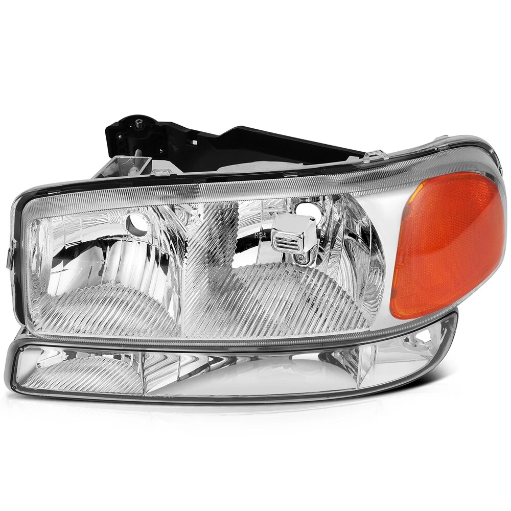 For 99-06 GMC Sierra Yukon XL Headlights Assembly Chrome Housing Headlamps Pair