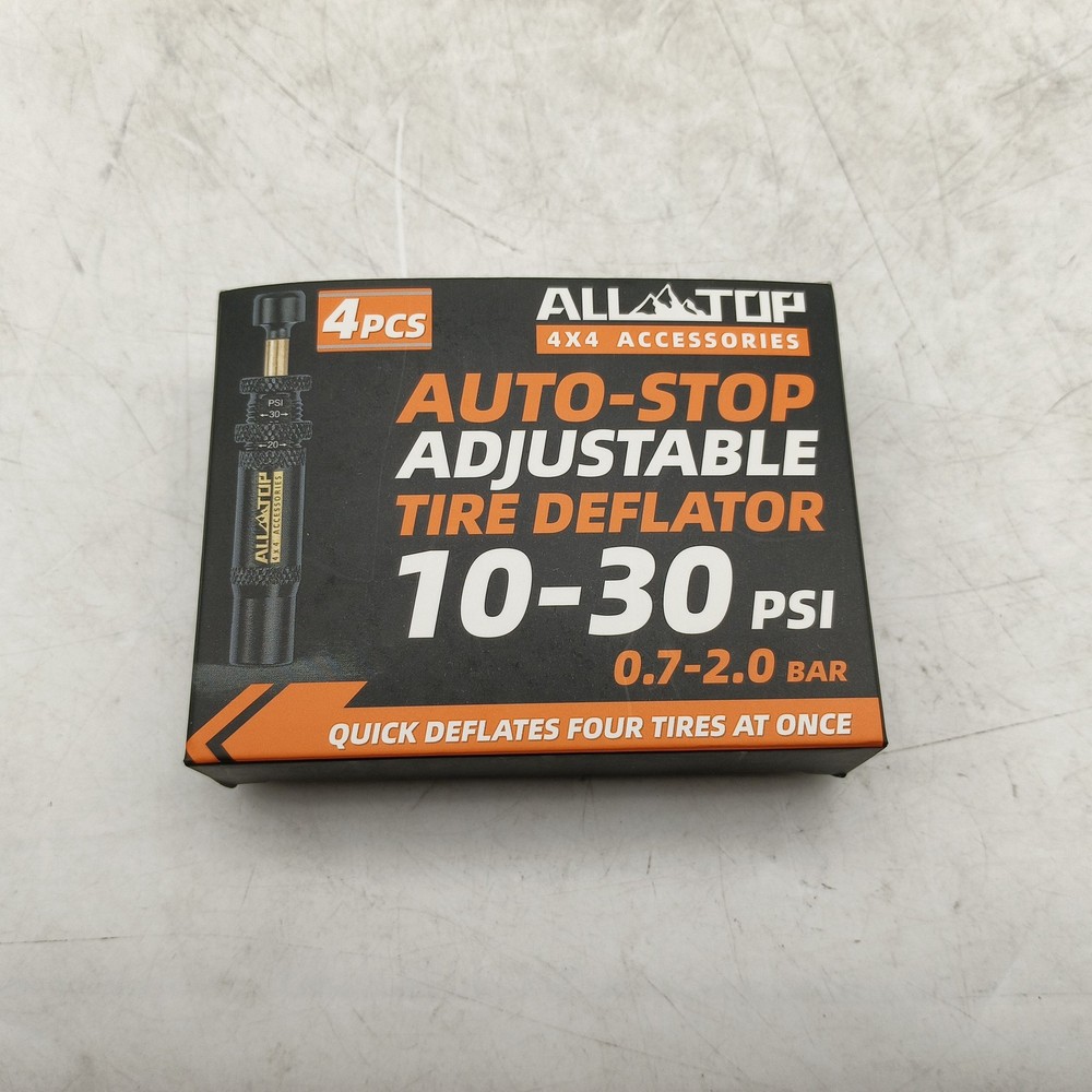 Product Description ATTENTION !!! ⚠️ Compatibility Notice (Unconfirmed compatibility? Contact us-- autozoneparts577 ) ⚠️ Technical Recommendation: To ensure precise verification, we strongly recommend submitting detailed photos of the components currently installed on your equipment. DESCRIPTION For ALL-TOP Adjustable Auto-Stop Tire Deflator Valve Kit (10-30 PSI) 4X Screw-on Adjustable Tire Deflator with Auto-Stop (10-30 PSI) - Off-Road Valve Stem Kit for Quick Tire Air Down - 4x4 Accessories for Truck, Pickup, for Jeep, Motorcycle, and More (Black) Product Specification Type:Tire Deflator Valve Kit,Color:Black,Adjustable Range:10PSI to 30PSI,Valve Type:Pressure Relief Valve,Material:Aluminum Alloy,Maximum Operating:2.1 Bars PACKAGE INCLUDES 4 x Tire Deflator Valve,4 x Caps,1 x Storage Bag Shipping Returns Contact Us For any problems, please message us first instead of opening a case. We'll work to resolve it to your satisfaction. • Processing Time: Orders placed before 12 PM PST Mon-Fri ship within 3 business days after compatibility confirmation (For SKUs where compatibility must be verified) . • Carriers: We automatically select the best carrier (UPS/FedEx/OnTrac/USPS) based on your location. • Expedited Shipping: Contact us before ordering for urgent delivery options (additional fees apply). • Partial Shipments: For multi-component kits, we may ship individual replacements if applicable. If there is any delay in shipment, it may be due to incomplete information provided, which prevents us from completing programming, or other special circumstances. Rest assured, we will promptly notify you of any important updates. We have warehouses located in the United States, China, the United Kingdom, Canada, and other regions. The inventory is dynamically allocated, and we will strive to assign the fastest available shipping channel for your order. For any problems, please message us first. We'll work to resolve it to your satisfaction. • 30-Day Returns: Full refund for any reason within 30 days of delivery. • After 30 Days: Only replacements accepted for non-defective items (case-by-case evaluation). • Refund Processing: Completed within 3 business days after receiving the return. ⚠️ CRITICAL RETURN REQUIREMENTS: Must be sealed and packaged to prevent leaks/damage. Leaking or damaged items may be rejected by our warehouse and cannot be refunded. Please feel free to contact us first if you have any questions. We provide quote requests and product sourcing services. Your satisfaction is our priority, and we’re committed to resolving concerns promptly. We typically respond within 24 hours on weekdays (Monday-Friday) , while responses during weekends may be extended up to 48 hours. Shipping For any problems, please message us first instead of opening a case. We'll work to resolve it to your satisfaction. • Processing Time: Orders placed before 12 PM PST Mon-Fri ship within 3 business days after compatibility confirmation (For SKUs where compatibility must be verified) . • Carriers: We automatically select the best carrier (UPS/FedEx/OnTrac/USPS) based on your location. • Expedited Shipping: Contact us before ordering for urgent delivery options (additional fees apply). • Partial Shipments: For multi-component kits, we may ship individual replacements if applicable. If there is any delay in shipment, it may be due to incomplete information provided, which prevents us from completing programming, or other special circumstances. Rest assured, we will promptly notify you of any important updates. We have warehouses located in the United States, China, the United Kingdom, Canada, and other regions. The inventory is dynamically allocated, and we will strive to assign the fastest available shipping channel for your order. Returns For any problems, please message us first. We'll work to resolve it to your satisfaction. • 30-Day Returns: Full refund for any reason within 30 days of delivery. • After 30 Days: Only replacements accepted for non-defective items (case-by-case evaluation). • Refund Processing: Completed within 3 business days after receiving the return. ⚠️ CRITICAL RETURN REQUIREMENTS: Must be sealed and packaged to prevent leaks/damage. Leaking or damaged items may be rejected by our warehouse and cannot be refunded. Contact Us Please feel free to contact us first if you have any questions. We provide quote requests and product sourcing services. Your satisfaction is our priority, and we’re committed to resolving concerns promptly. We typically respond within 24 hours on weekdays (Monday-Friday) , while responses during weekends may be extended up to 48 hours. powered by