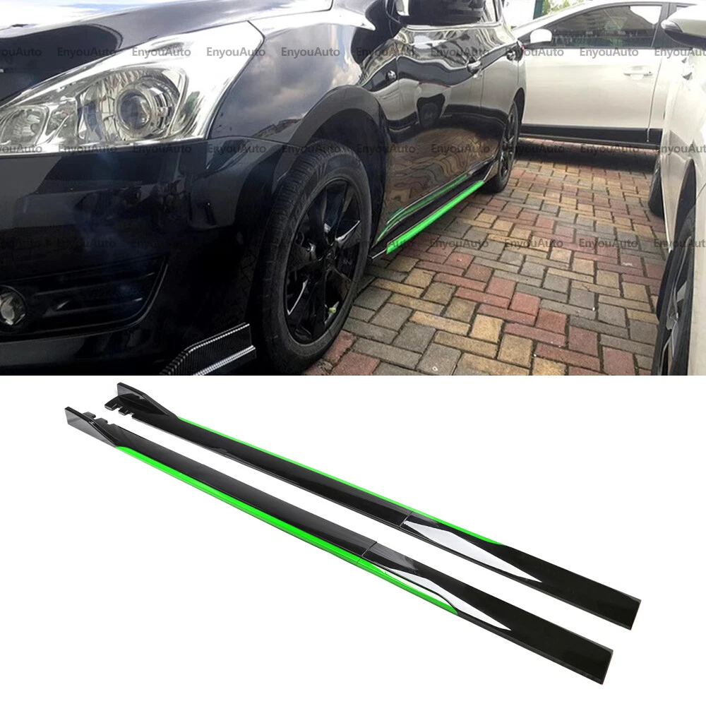 Performance Part: Yes Features: Can be cut according to the length of the side skirt of the car Brand: Unbranded Color: Black + Green Fitment Type: Direct Replacement Number of Pieces: 2 UPC: Does not apply Material: High Quality ABS Mounting Hardware Included: Yes Manufacturer Part Number: Does Not Apply Interchange Part Number: Does Not Apply Placement on Vehicle: Left, Right Type: 86 inches UNIVERSAL Side Skirt Extension Rocker Panel Splitter Surface Finish: Painted gtin13: Does not apply Attachment Method: Screws