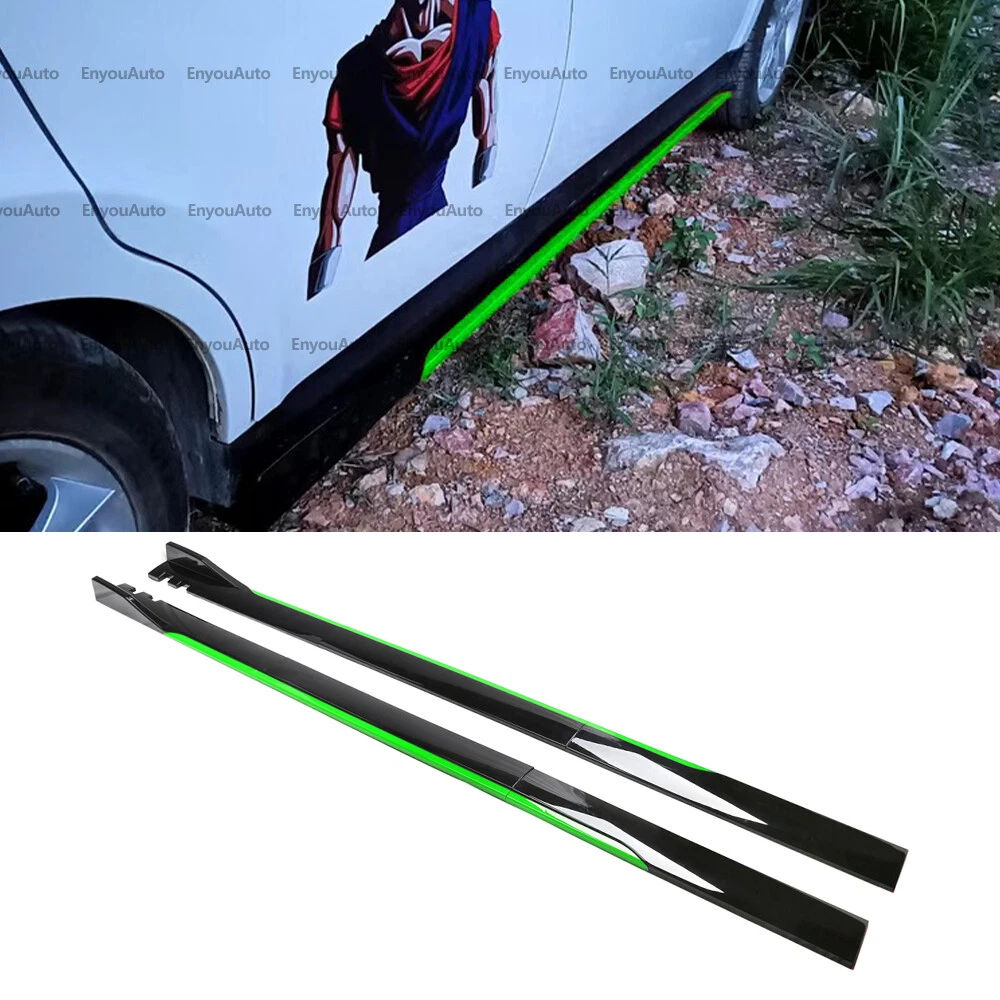 Number of Pieces: 2 Placement on Vehicle: Left, Right Manufacturer Part Number: Does Not Apply Brand: Unbranded Surface Finish: Painted gtin13: Does not apply Mounting Hardware Included: Yes Material: High Quality ABS Performance Part: Yes Color: Black + Green Interchange Part Number: Does Not Apply Type: 86 inches UNIVERSAL Side Skirt Extension Rocker Panel Splitter UPC: Does not apply Fitment Type: Direct Replacement Attachment Method: Screws Features: Can be cut according to the length of the side skirt of the car