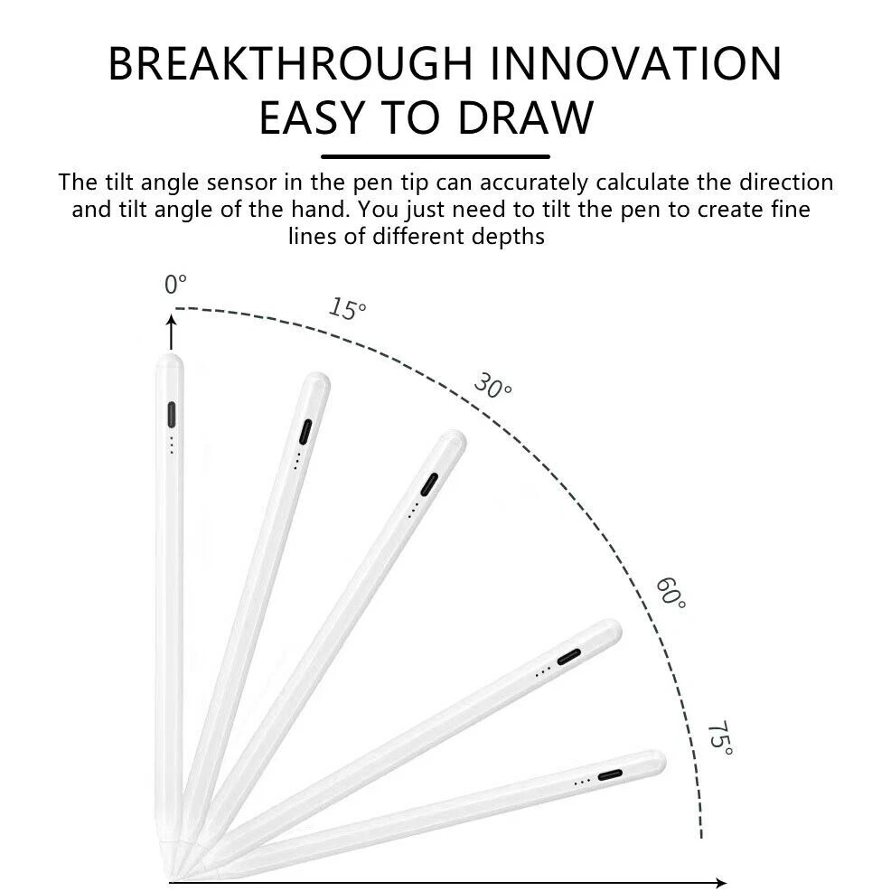 Compatible Model: For Apple iPad (6th Generation), For Apple iPad (7th Generation), For Apple iPad Air (3rd Generation), 019, For Apple iPad mini (5th Generation), 2019, For Apple iPad Pro 11 2018, For Apple iPad Pro 12.9 2018, For Apple iPad 7th Gen 2019, For Apple iPad Air (4th Generation), For Apple iPad Air 3rd Gen 2, For Apple iPad mini (6th Generation), For Apple iPad Mini 5th Gen MPN: Does not apply Brand: Unbranded Features: Magnetic, USB Powered, Palm Rejection, Nib replacement, Tilt Sens Color: White Material: Rigid Plastic Type: Stylus Compatible Brand: For Apple