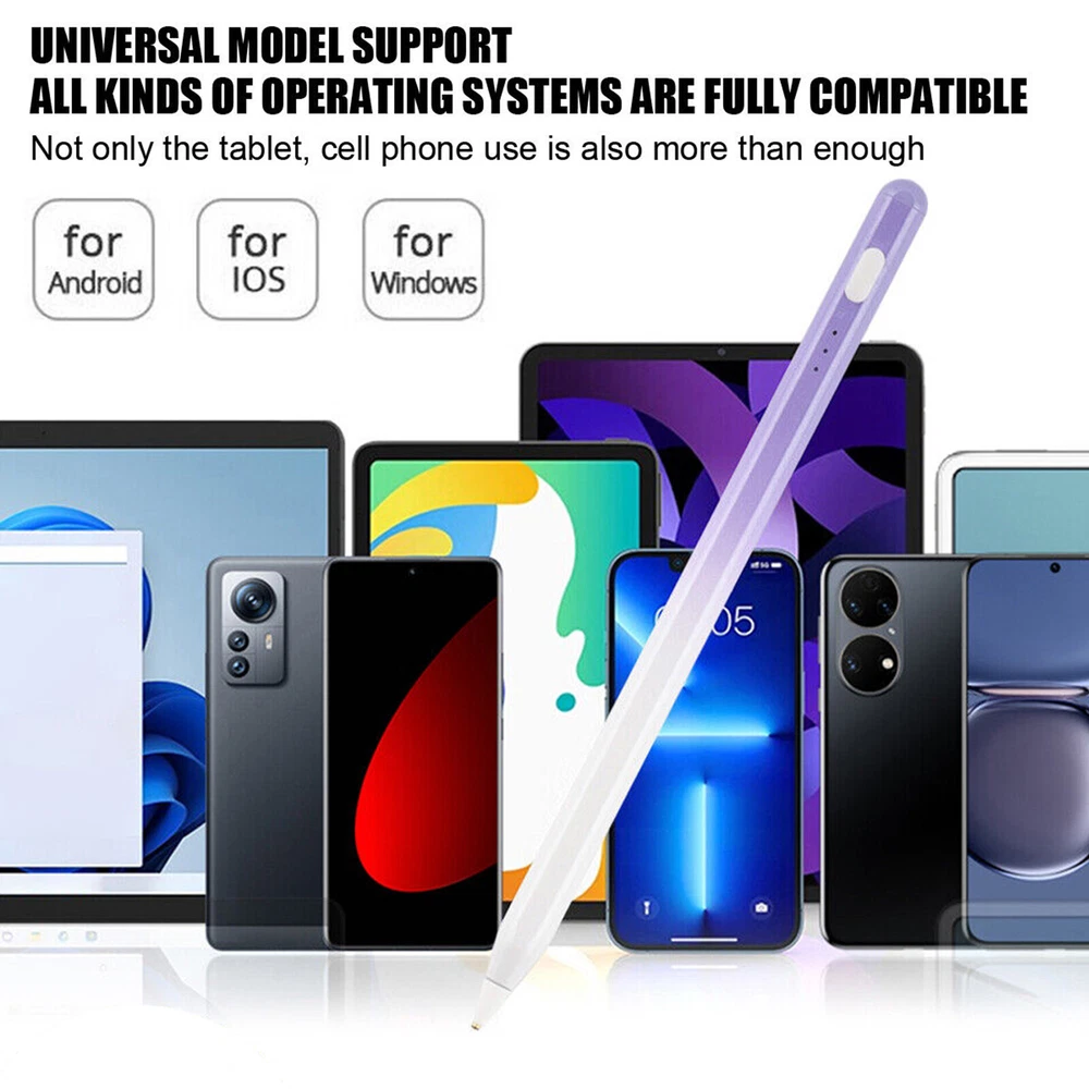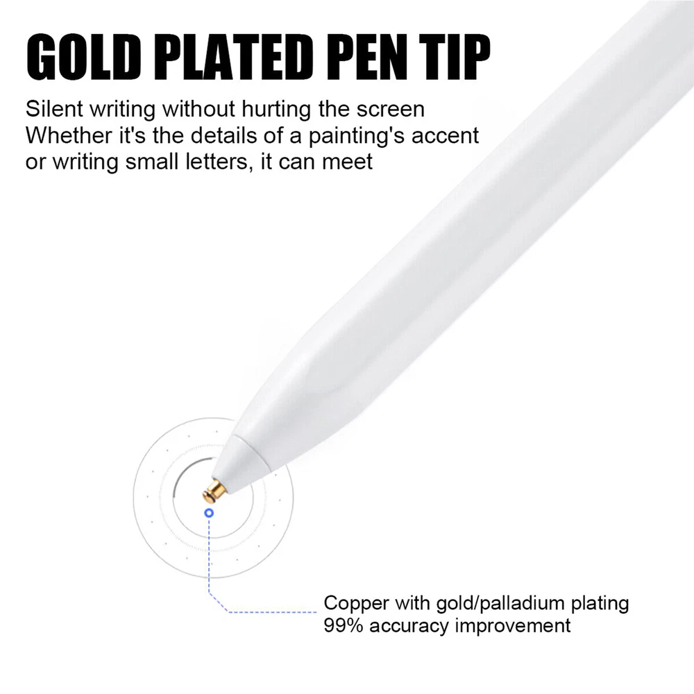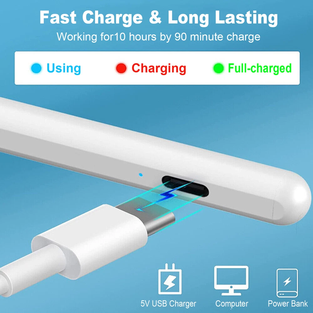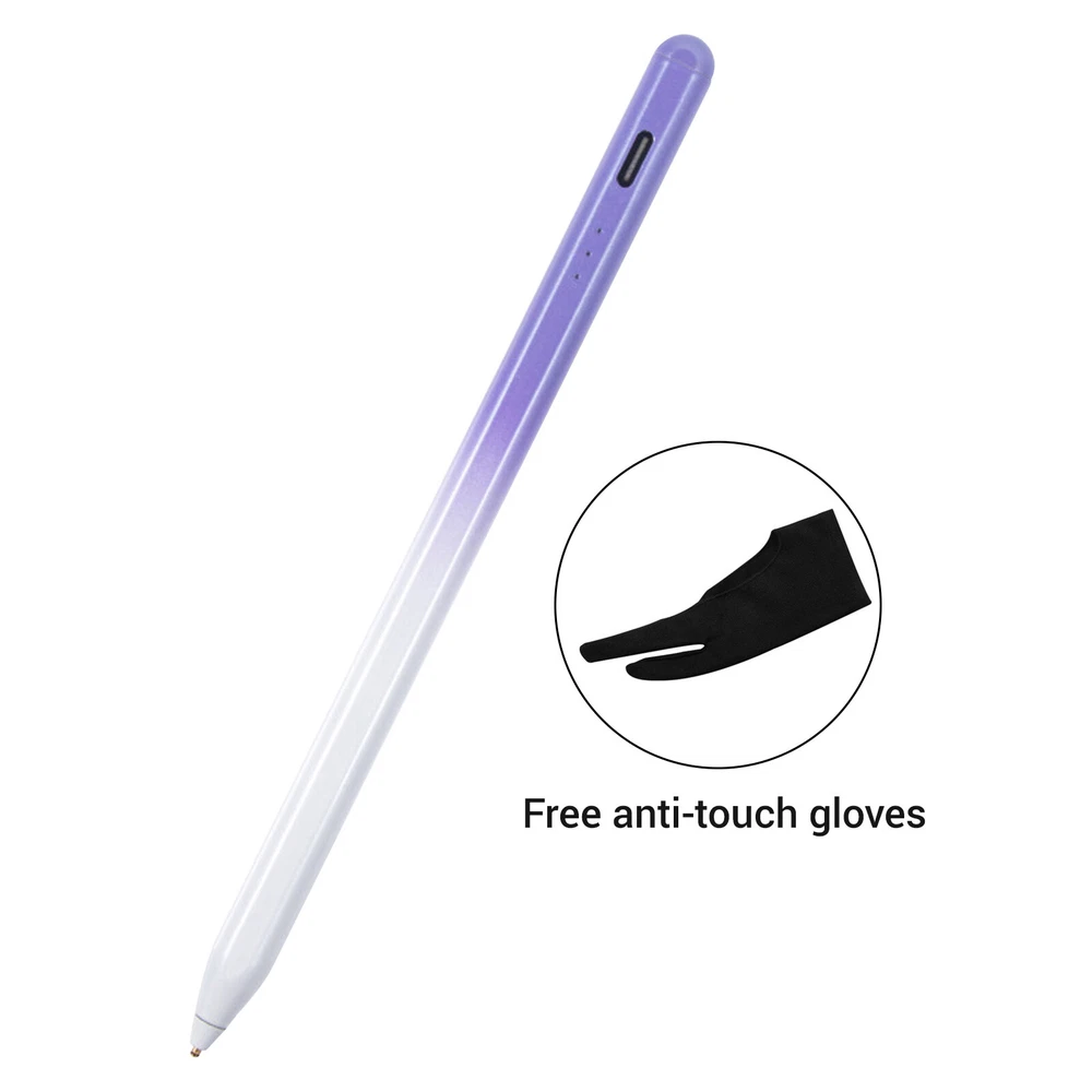 Product Description For Apple Stylus Pencil iPad 10/9/8/7/6th Gen Air 5/4/3 iPad Pro 2018-2024 Pen Features: - Colorful Gradient Design: Features the latest trendy gradient color design, with multiple colors available to satisfy personalized preferences. - High Compatibility: Compatible with a variety of capacitive screen devices, including Android phones, tablets, iPhones, and iPads, eliminating concerns about device mismatch. - Quality Material: Made with a full alloy shell, durable and comfortable to use, enhancing the user experience. - Magnetic Adsorption Design: Supports magnetic adsorption for convenient storage and to avoid loss, practical and convenient. - Suitable for All Users: Whether you're a professional artist, a student, or someone who enjoys browsing, this stylus pen can improve your digital experience. Specification: Material: Alloy Pen length: 165mm Diameter: 9mm Applicable equipment: universal for various capacitive screens Anti touch function: None Battery capacity: 130 mA Battery life: 10 hours Charging: 5V 200mA (Do not use the fast charging head!!) Indicator lights display battery level: Three indicator lights can display the remaining battery level of the stylus. Three lights on indicate that the battery is between 70% -100%, two lights on indicate that the battery is between 30% -70%, and one light on indicates that the battery is less than 30% remaining. It is time to charge Packaging list: 1 x Pen 1 x USB charging cable 1 x Instructions 1 x Anti-touch glove powered by