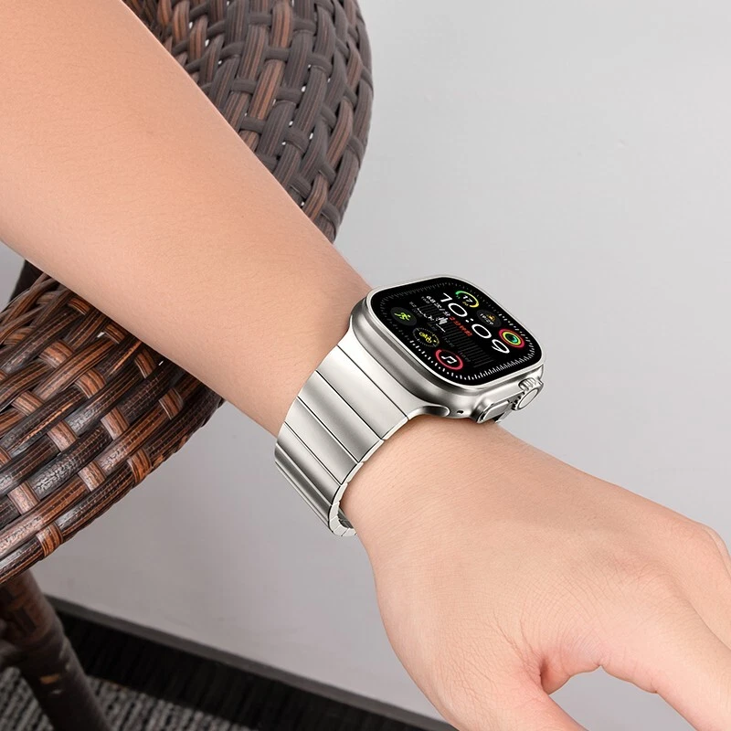 For Apple Watch 10 9 8 7 SE Magnetic buckle steel strap 42/44/46/49mm Ultra 2 Features: · 100% brand new high quality. · Material: Stainless steel. · Exquisite craftsmanship and stylish design. · Strong magnetic adsorption, firm wear; Magnetic double snap fastening, double protection. · This chain link adds a touch of luxury and is perfect for any occasion. · Quick release of buttons, no tools required, easy to wear. · Suitable for wrist size: 42/44/45/46/49mm strap fits wrist size 5.51"-7.87" (140mm-220mm); Compatible With: > For Apple Watch Ultra / Ultra 2 > For Apple Watch Series 10 / Series 9 / Series 8 / Series 7 / Series 6 / Series 5 / Series 4 / Series 3 / Series 2 / Series 1 / > For Apple Watch Nike > For Apple Watch Hermes > For Apple Watch SE Package includes: 1x Magnetic buckle steel strap ONLY !!! ( PS: The Apple Watch is Not Included )