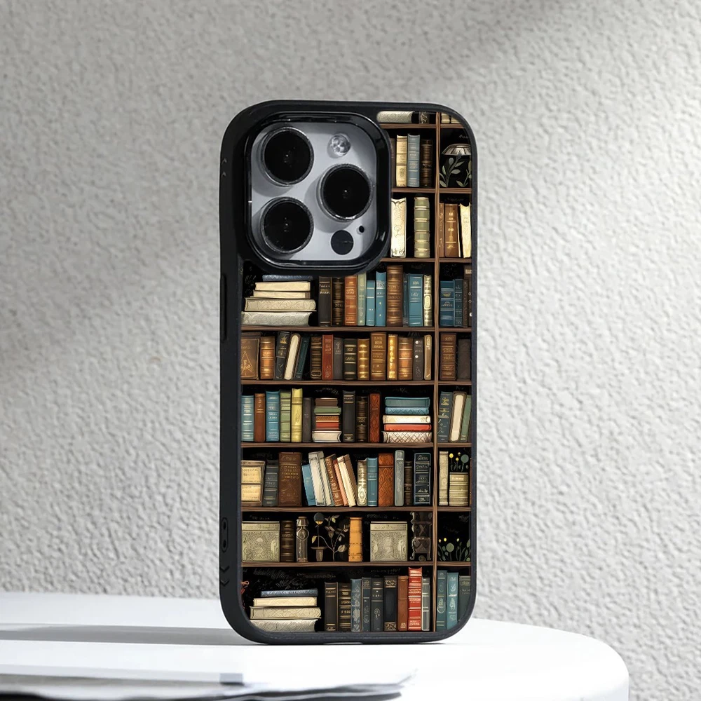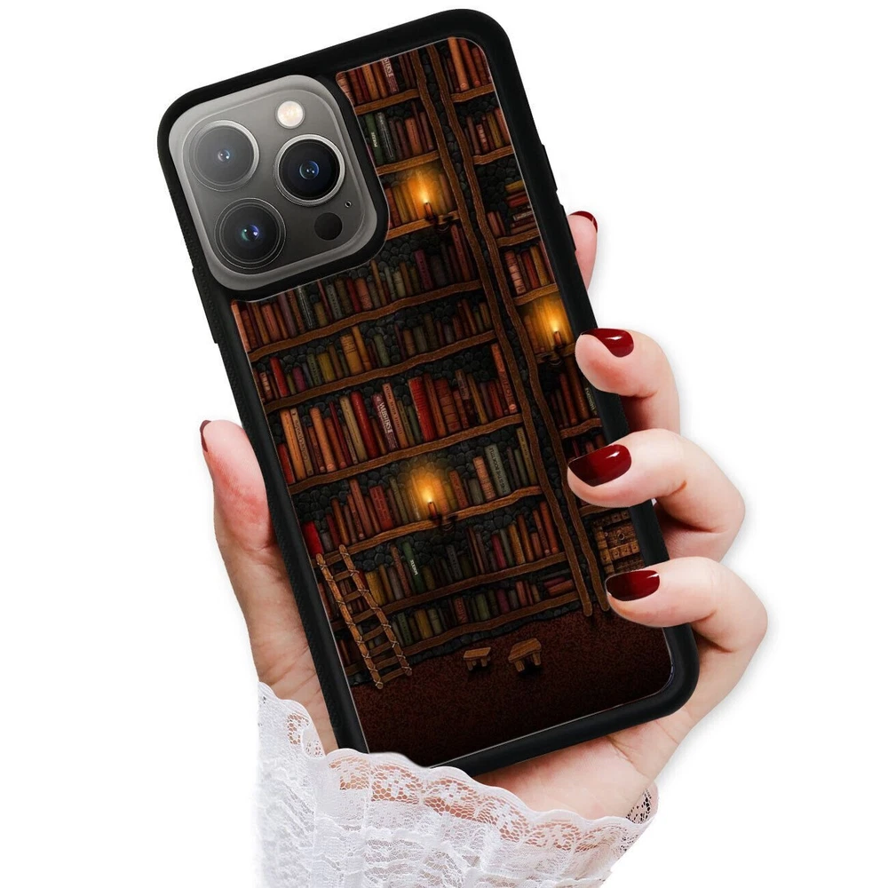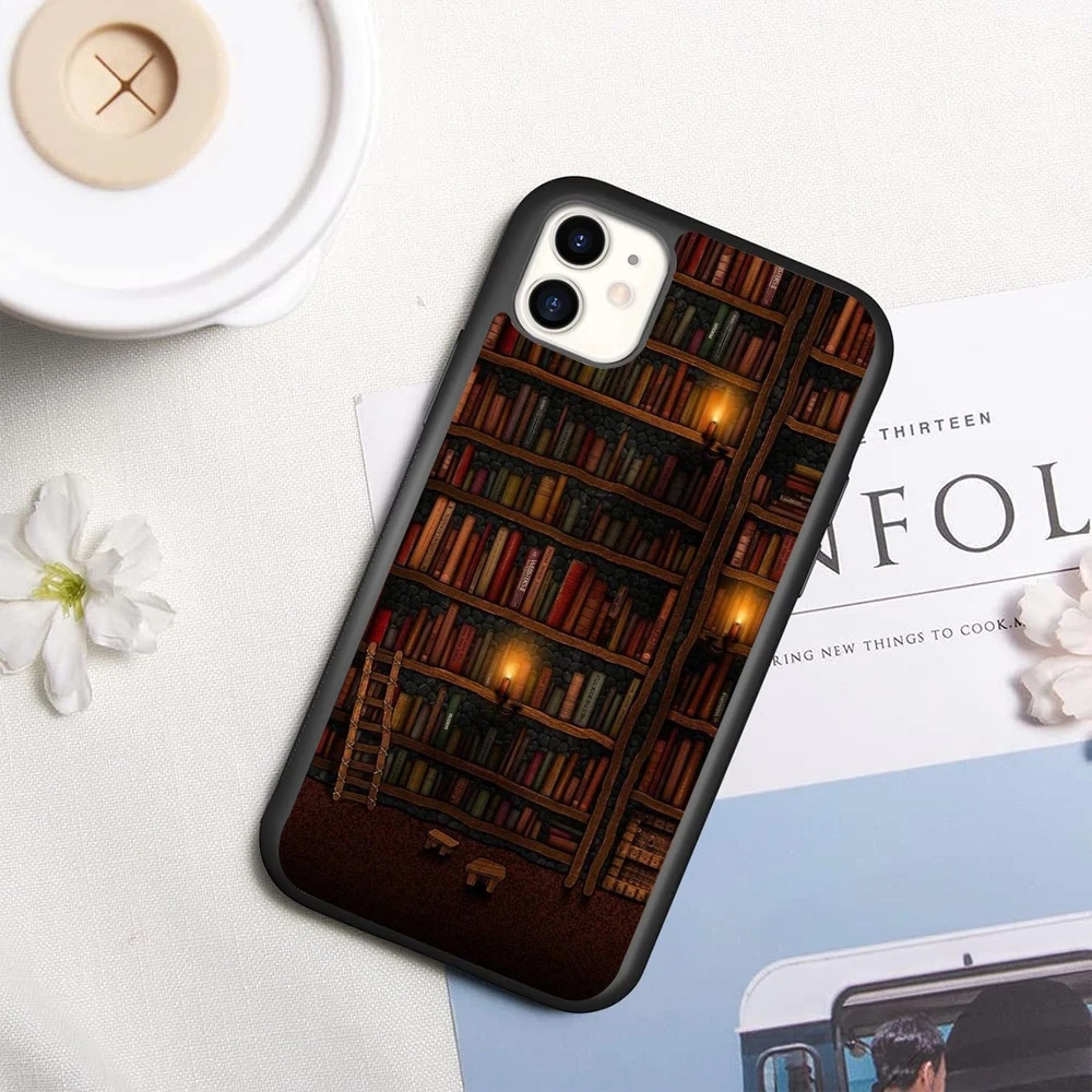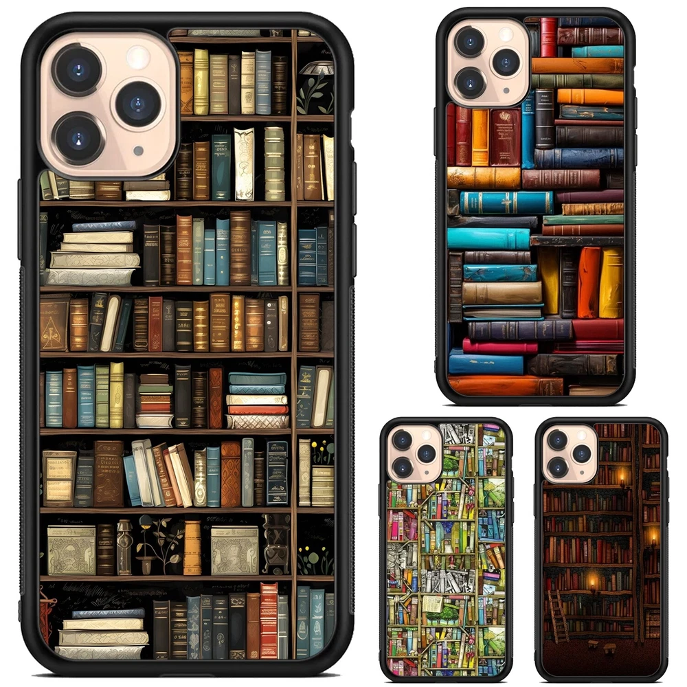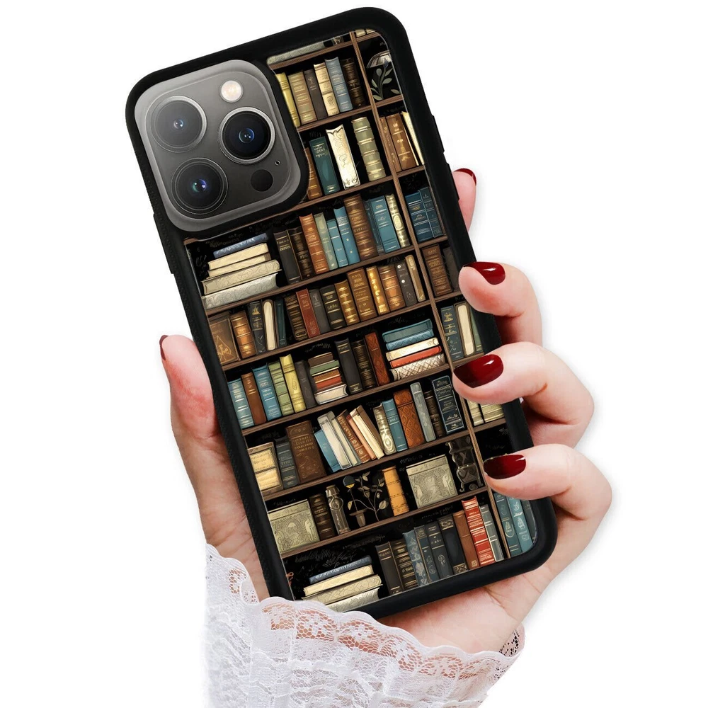 For Apple iPhone Samsung Galaxy Motorola Retro Book Library bookshelf Frame Case