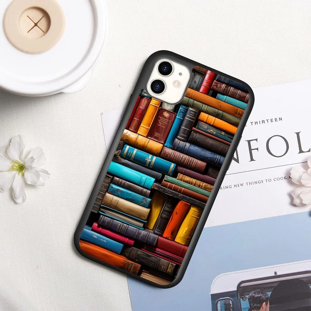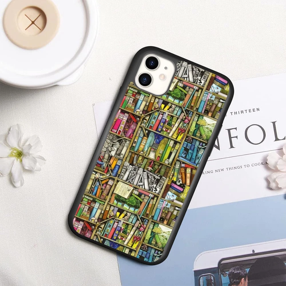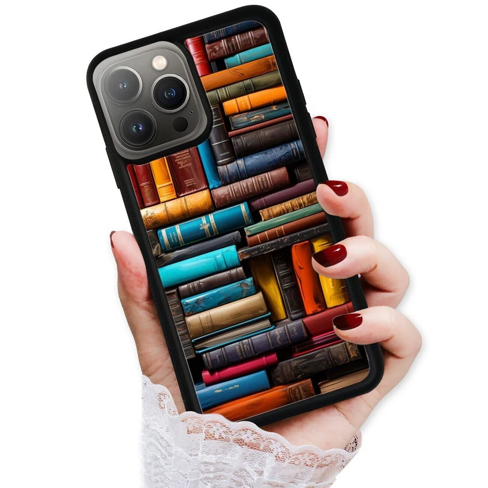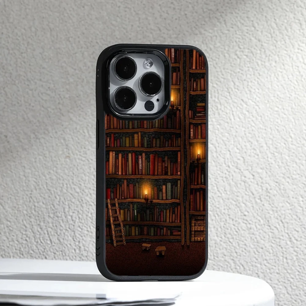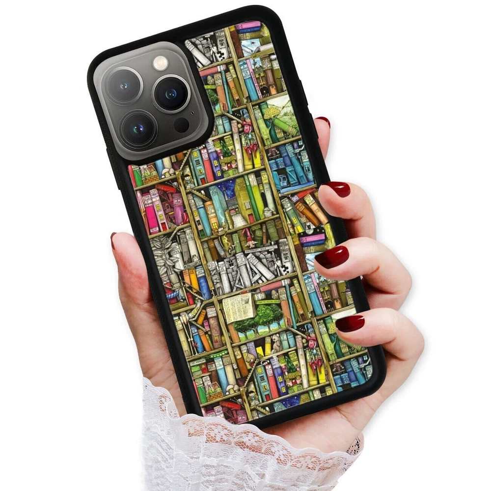 For Apple iPhone Samsung Galaxy Motorola Retro Book Library bookshelf Frame Case