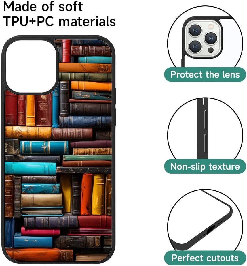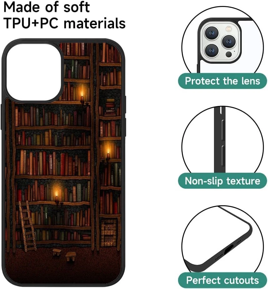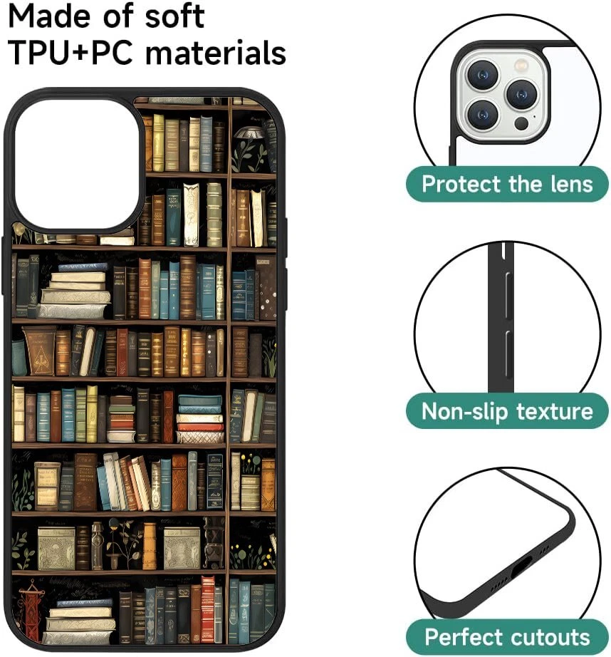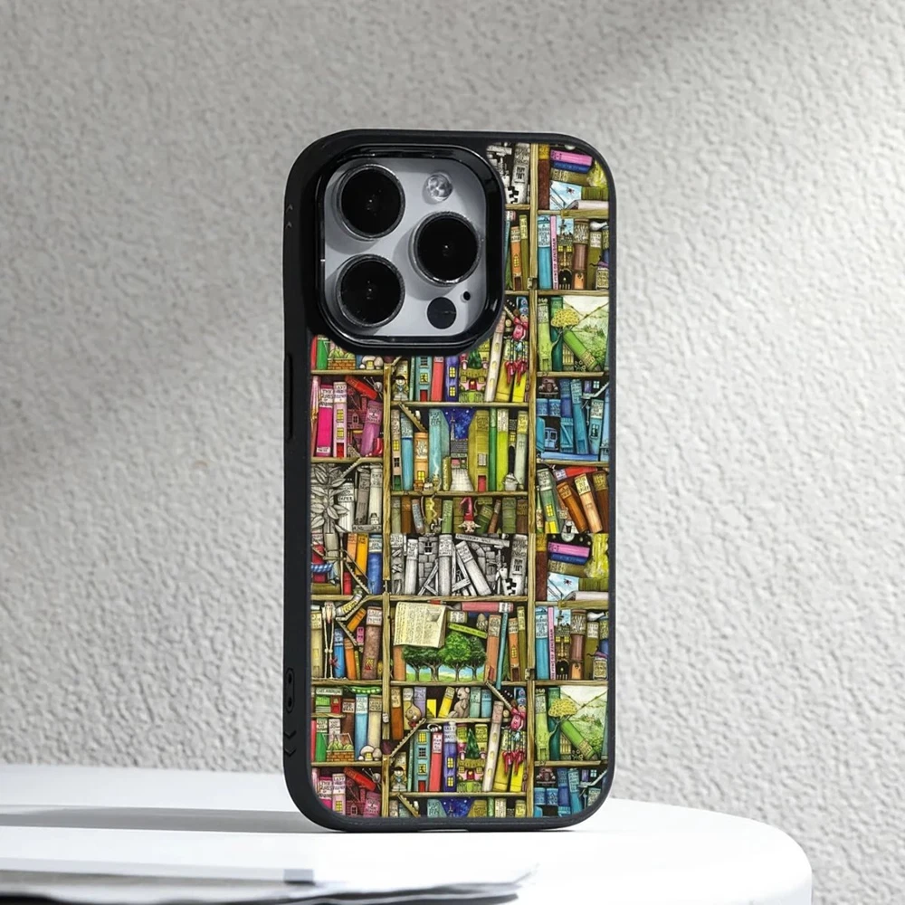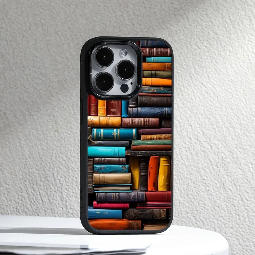 For Apple iPhone Samsung Galaxy Motorola Retro Book Library bookshelf Frame Case