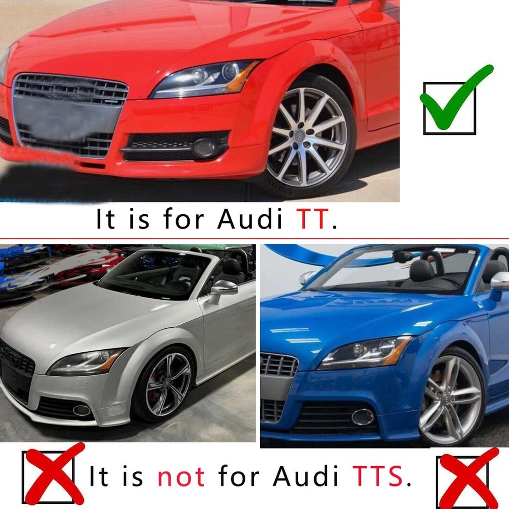 Professional Auto Parts Seller For Audi TT 8J 2006-2010 Fog Light Lamp Cover HONEYCOMB HEX Front Grille Grill Package include: 1pair HONEYCOMB Front Grille(Left & Right) Fitment: -Only Fit For Audi TT 8J Standard Bumper 2006-2010 -Not FIT S-LINE Models, Not fit Audi TTS. -IF you are not sure ,please contact us!! Specification: -Type: HONEYCOMB RS Style Front Grille -Material: high quality ABS Plastic -Color: Gloss Black with Chrome Ring -Placement on Vehicle:Front, Left, Right -Manufacturer Part Number:8J0807682 01C / 8J0807681 01C -Reference OE/OEM Number:8J080768201C / 8J080768101C Feature: -Functional open mesh that matches the main grille! Don't waste your money on the ugly closed mesh version that other sellers carry! -Made of high quality ABS plastic - same material as OEM! -Excellent fitment - direct replacement for your stock grilles! -This listing is for one pair (1 left & 1 right). -Strict quality control standards to Build and test. -No instruction included.Professional installation recommended. Notice: - Please allow 1-3CM differs due to manual measurement. - Due to the different display and different light, the picture may not reflect the actual color of the item. Thanks for your understanding. Payment 1. Please contact us first to solve if there is any problem about item before left feedback, many thanks. 2. We accept PayPal, G Pay, VISA, Master Card which permitted by eBay. 3. Our price does not include Duties, Value Added Taxes, Customs Clearance Fees, and other charges. These charges are the buyer's responsibility. 4. Please check with your country's customs office to determine what these additional costs will be before bidding/buying. Shipping 1. Item will be dispatched within handling time after payment. Normally delivered within 15~25 working days. 2. This is for USA, CANADA, AUSTRALIA, EU, ASIAN Countries. For the other countries, it may take more time to arrive. 3. Shipping time may vary depends on your area. Delivery may be delayed due to extreme weather or special circumstances. Please wait patiently. 4. Return are accepted within 30 days of purchase. Contact US 1. Please message us through eBay if you have any questions. 2. All Emails and messages will be replied to ASAP during open hours. (Monday to Saturday 9:00am - 6:00pm) 3. If you have any quality problems or you are not pleased with the purchase, please contact us through Email. 4. We will be happy to assist you if any items need to be returned or replaced.
