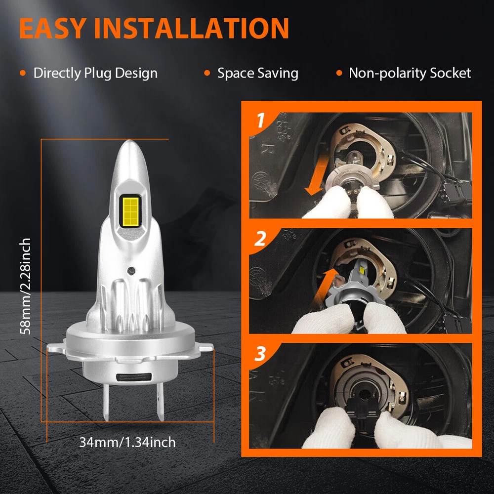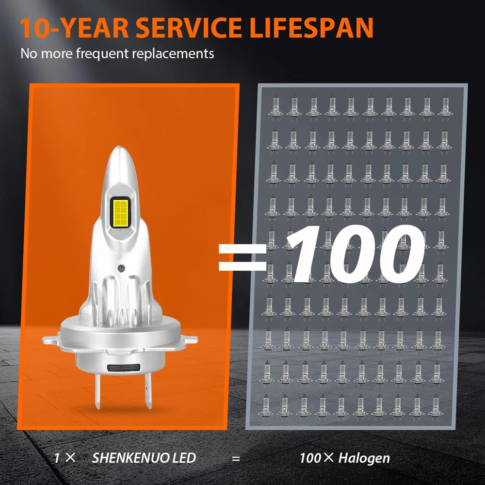 Car Light Bulb GJ Series Bulb HK Series Bulb BY Series Bulb C6 Series Bulb C9 Series Bulb S1 Series Bulb S2 Series Bulb F2 Series Bulb X7 4Side Series Bulb K9 4Side Series Bulb X15 4Side Series Bulb HID Series Bulb Other Type Bulb(Fog...etc) V5 4Side Series Bulb DF Series Bulb 6 Side Series Bulb Z4 Series Bulb LX Series Bulb DSX Series Bulb K9L 4Side Series Bulb LED Light Strip Work Light Bar Protection Sticker Car Interior/Exterior Trim Tool Promotion Other Item Description 。 H7+H7 Headlight Bulbs Specification: -Light Source:16PC 3570 LED CSP Chips -Power:100W/per bulb, 200W/per Set -Lumens:10000LM/per bulb, 20000LM/per Set -Color Temperature:6500K White -Beam Type:High/Low Beam -Certified by:CE & ROHs -Voltage: DC 9V-32V -IP Rate: IP67 Waterproof -Shell Material: 6063 Aluminum -Lifetime: More than 50000 hours -Placement on Vehicle: Front, Left, Right ● 500% Brighter: Equipped with high luminous efficacy CSP chips. 20000LM/pair, 500% Brighter than standard halogen. M12 Series LED headlight bulbs ensure the clarity of vision allows drivers easy to react to sudden movement. Effectively illuminate wildlife, falling rocks and obstacles. Huge improvement for road safety. ● Ideal Beam Pattern: SHENKENUO LED bulb features 0.12inch slim led chips distance design that almost can emit 360 degrees illumination angle. Super focused beam pattern as stock halogen lamp, no dark spots or glare to oncoming drivers, avoiding scattered light problem to ensure safety. ● 50,000 Hours Lifespan: A combination between aviation aluminum heat sink and 12,000RPM silent cooling fan design for an optimal heat dissipation. Efficient cooling system speed up heat dissipation to ensure LED headlight bulbs superior performance, lifespan up to 50,000 hours. ● 10 Mins Quick Install: Built-in driver and non-polarity plug, 1:1 same filament position as stock halogen. LED headlight mini size design for higher compatibility in factory housing. No modification required,easy installation in 10 mins. Plug & play! ● Superb Performance: CANbus ready and fit with 99% vehicles without issue. no radio interference. IP67 waterproof feature makes it work perfectly on any extreme weather, like rainy day, snowy day, foggy day, hazy weather,etc. H11/H9/H8 Foglight Specification: -LED light source: CSP LED Chips,12 SMD Chips -Luminous power: 40W -Color temperature: 6000K -Working voltage: DC 12V -Light Color: White -Shell material: space aluminum -Beam angle: 360 degrees -Working life: 50000H Package include: -4X H7 LED Headlight Bulbs -2X H11 LED Fog Light Bulbs 。 Shipping Policy Payment Method Returns Policy Shipping Policy 1) Item Located in US , We will ship all orders asap from our USA warehouse, All shipment will ship by UPS or USPS.Not include small package which less than $5. 2) Item Located in China ,We will ship from China Warehouse.( No service on Weekend and public holidays). 3) We will ship out all orders as soon as possible after payment verified, please allow up to 1-4 business days for delivery. 4) Delivery time within the U.S. is usually just 3 to 6 business days, however in rare cases it could take 6 to 7 business days. Why Choose the US Stock? 1. Us Local Shipping, No Extra Customs Cost to the US. 2. Fast Delivery: 3-6 Working days Delivery. 3. Best After-Sales Service!!! Payment Method We accept PayPal only. Payment must be made within 4 days of auction closing. (Non-payment may result in a UPI being put on your account. eBay will automatically close your account if you accumulate 4 UPI's total.) TOTAL AMOUNT DUE includes the final auction price plus S&H(Shipping and Handling). S&H will be determined based upon the SHIP TO address. PLEASE NOTE: S&H DOES NOT INCLUDE DUTIES, LOCAL TAXES OR ANY OTHER IMPORTATION FEES. Returns Policy 1. Customer satisfaction is our top goal. We believe our items are so outstanding. All products are quality checked. They are new and in good condition when shipped to our customers. We are convinced you will be happy with your Purchase. 2. If product is defective or damage upon arrival, or wrong product shipped, please contact us immediately. Returns accepted within 14 days of delivery date and item must be in original new condition, not worn or altered in any way with attached tags & wrap. Otherwise deal is final. Return shipping must be paid by buyer. 3. Please contact us first if you have any problems/questions/concerns. We will be happy to resolve any issues you may have in a cordial and friendly manner. 4. We appreciate your Postive Feedback, and will do the same in return. DO NOT leave negative feedback without first communication with us. Please allow max 2 business days for us to response. . H7+H7 Headlight Bulbs Specification: -Light Source:16PC 3570 LED CSP Chips -Power:100W/per bulb, 200W/per Set -Lumens:10000LM/per bulb, 20000LM/per Set -Color Temperature:6500K White -Beam Type:High/Low Beam -Certified by:CE & ROHs -Voltage: DC 9V-32V -IP Rate: IP67 Waterproof -Shell Material: 6063 Aluminum -Lifetime: More than 50000 hours -Placement on Vehicle: Front, Left, Right ● 500% Brighter: Equipped with high luminous efficacy CSP chips. 20000LM/pair, 500% Brighter than standard halogen. M12 Series LED headlight bulbs ensure the clarity of vision allows drivers easy to react to sudden movement. Effectively illuminate wildlife, falling rocks and obstacles. Huge improvement for road safety. ● Ideal Beam Pattern: SHENKENUO LED bulb features 0.12inch slim led chips distance design that almost can emit 360 degrees illumination angle. Super focused beam pattern as stock halogen lamp, no dark spots or glare to oncoming drivers, avoiding scattered light problem to ensure safety. ● 50,000 Hours Lifespan: A combination between aviation aluminum heat sink and 12,000RPM silent cooling fan design for an optimal heat dissipation. Efficient cooling system speed up heat dissipation to ensure LED headlight bulbs superior performance, lifespan up to 50,000 hours. ● 10 Mins Quick Install