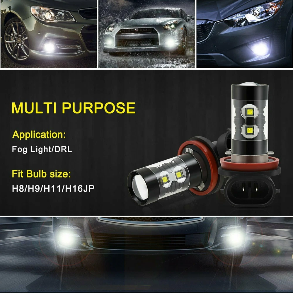 Description: -Use high-power chip -Brand new, high quality, easy to install -New LED technology reduces power consumption from 40% to 80%. -With the metal casing, it makes the bulb work in low heat. -High thermal conductivity, aluminum alloy and exquisite beauty -For replacement letter headlamps and fog lamps, etc. Features: -Number of chips: 10 -Color: white Socket type: H11/H8/H16 Voltage: 12V-24V Color temperature: 6000K Life: 50000 hours Material: aluminum alloy Life span: 50,000hrs Package Include: 2 x H11/H8/H16 Car LED Fog Light Bulb