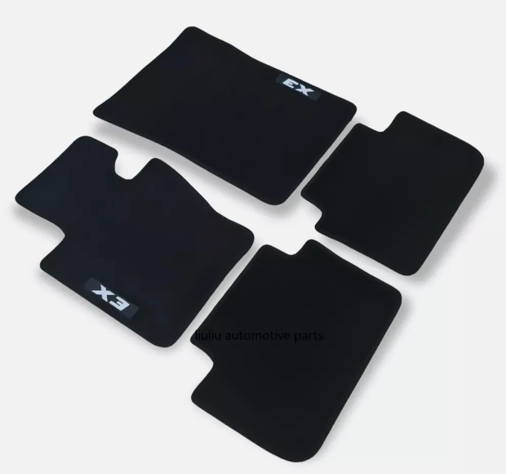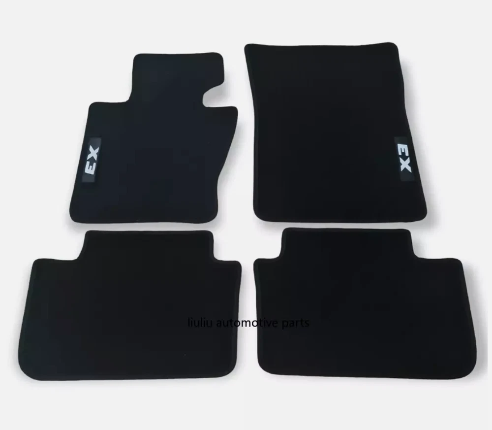 All Weather Black Heavy Duty Rubber Backing All Season Car Floor Mats For: BMW Series X3 E83 2003 2010 Car floor mats compatible with BMW X3 series E83 2003 2010 for all types of equipment, like M X3 , M Performance , Luxury etc. Made of high quality tufted velour - carpet, 850gr/1m2 - made in Netherlands. Rubber Backing Edge stripe Embroidery logo X3 Velcro stickers Anti Slip Long Lasting Waterproof Long lasting Perfect fitting Soft surface for driving comfort Easy to clean One set contains: Driver mat Co-Driver mat Rear left mat Rear Right mat