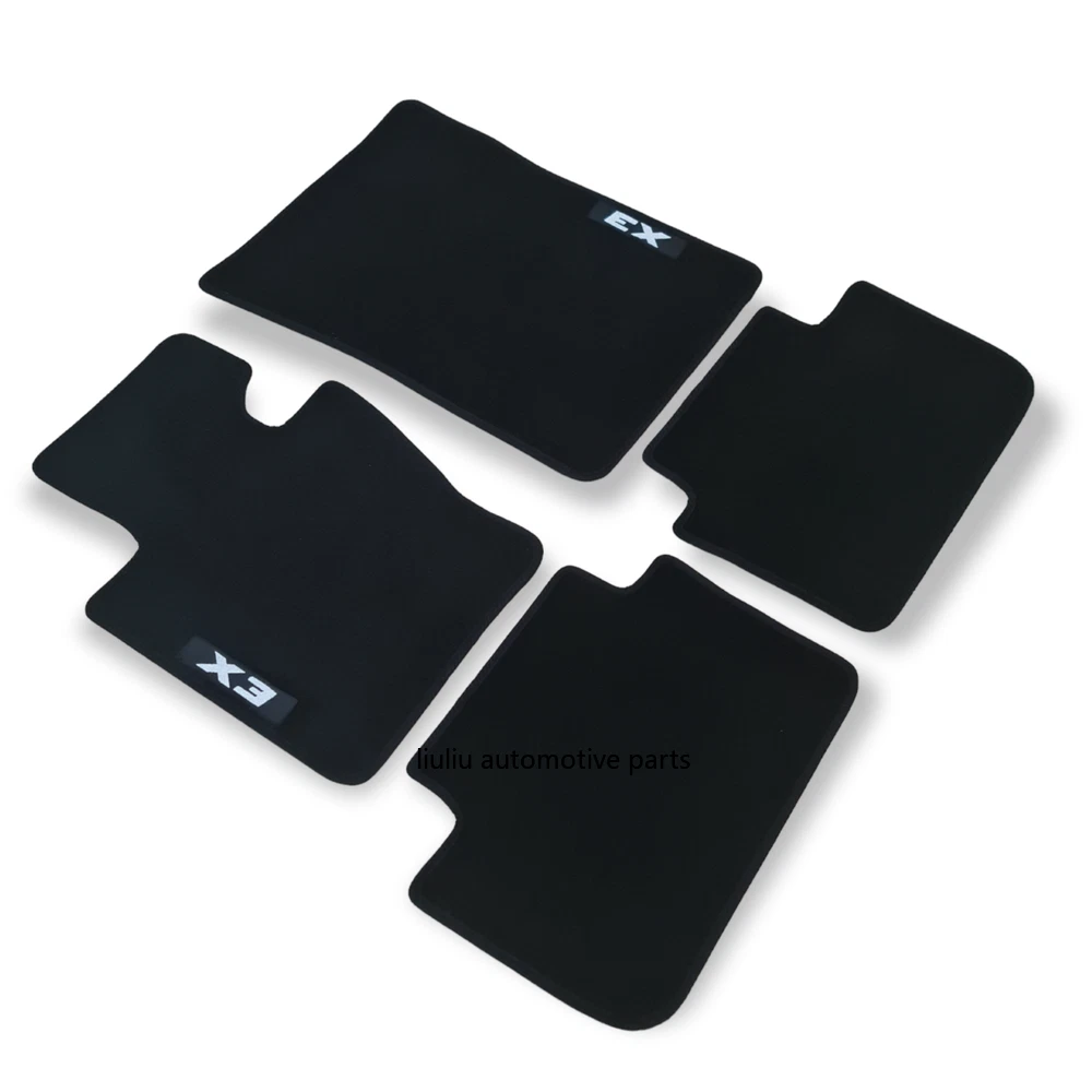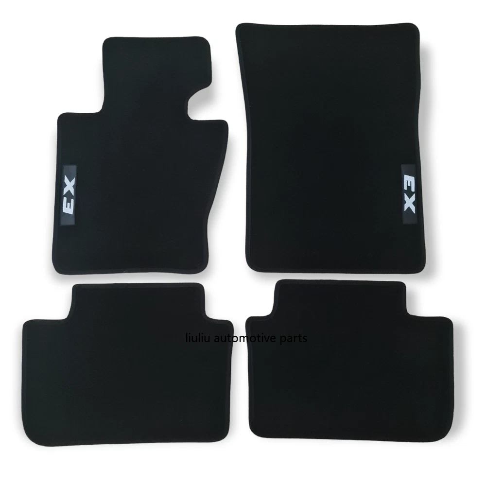 All Weather Black Heavy Duty Rubber Backing All Season Car Floor Mats For: BMW Series X3 E83 2003 2010 Car floor mats compatible with BMW X3 series E83 2003 2010 for all types of equipment, like M X3 , M Performance , Luxury etc. Made of high quality tufted velour - carpet, 850gr/1m2 - made in Netherlands. Rubber Backing Edge stripe Embroidery logo X3 Velcro stickers Anti Slip Long Lasting Waterproof Long lasting Perfect fitting Soft surface for driving comfort Easy to clean One set contains: Driver mat Co-Driver mat Rear left mat Rear Right mat