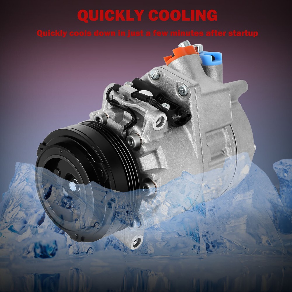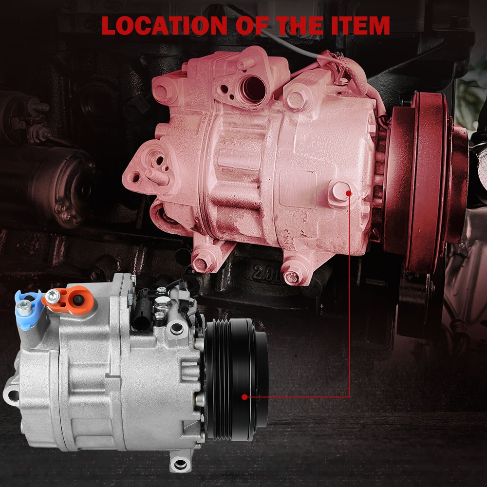 Compatibility should be checked and confirmed before placing order! Steps of confirming the compatibilities: Manage " My Garage ", and chose the right one when placing order; Or chose the " Year / Make / Model / Trim / Engine " of your vehicle on the compatible chart; Or Contact us if you have any question in confirming the compatibility, to make sure you will get the right and compatible item. Application: 2004-2006 X5 4.4i Submodel 2004-2006 X5 4.8is Submodel Package Content: 1 x AC Compressor W/Clutch Pay Attention: 1>Please refer to the picture and confirm it same as that you want,before paying for it. 2>please make sure the installation site is clean. Or, it will cause operating obstruction, even make the temperature of the compressor very high, and the belt on the clutch may melt. 3>Tested for noise, vibration, durability, vacuum decay, and pressure decay to ensure no leaks and longer life. 4>This item is with oil when sent to you, so there is no need to add oil when you use it the first time. You will get what you see in the picture showed. About US: We are committed to making the best auto-parts products and providing you with better services. So if you have any quesiton or problem, please fell free to contact us about that. Payment: Paypal and other methods which are acceptalbe by eBay. Shipping: All item will be packed with well condition in box or envelope, we make sure the item is in good protection, also please check all the item when you get the package. Product will be shipped within 2 business days after full payment is received and verified. All domestic orders will be shipped via USPS, UPS or FedEx from our US warehouse and usually arrives to your door in about 2-7 business days. Returns & Refund: 30-day free return will be provided. -Please note that the situations below will not be incounted: -Ordered by mistake. -Don't like it. -Duplicated orders. -Damaged product during installation. Contact Us: Any quesiton or problem, do contact us please. We are always online to answer. WARNING: Cancer and Reproductive Harm - www.P65Warnings.ca.gov. End Save for Web Slices