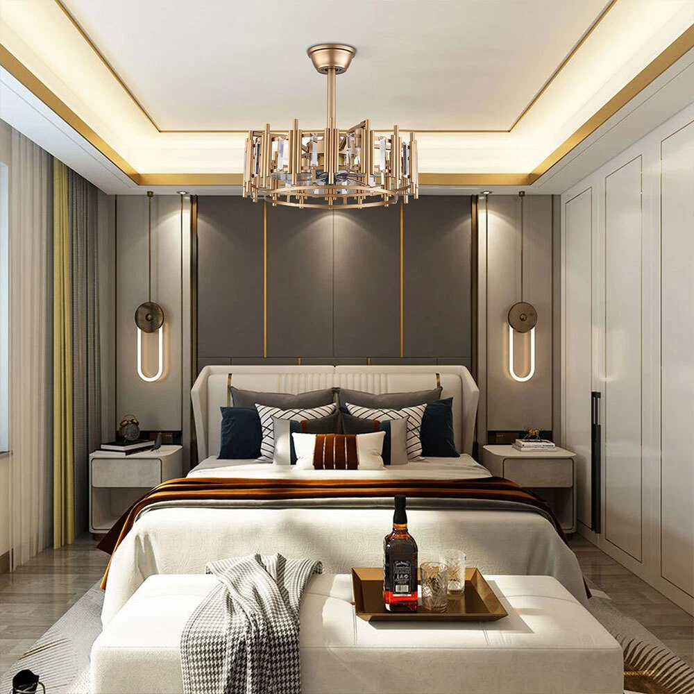 For Bedroom 3 Speed Caged Ceiling Fan with Light 20 Inch Modern Luxury Bladeless 20" Bladeless Ceiling Fan Light Dimmable Led 3 Speed Chandelier Remote Control Dimensions Fixture Height: 7.87" (20 Cm) Fixture Width: 20" (50cm) Bulb Information Bulb Requirements: Use (4) E27bulbs, Maximum 60watts, Options Include Incandescent, Fluorescent, Led, Halogen, Etc. (Bulbs Are Not Included) Wattage: Max 60w Voltage: Ac110-120v Remote Control: Yes Material and Colour Material: Retro Metal Colour: Gold 🔹Easy to Install Surface Mounted. Products Include English Manuals, Remote Control and Installation Instructions, with the Provided Bracket, Providing Easier Installation and Detailed Installation Instructions. 🔹Applicable Scenarios The Chandelier Is Suitable for Home and Commercial Spaces,Such As Living Room, Dining Room, Kitchen Island, Bedroom, Foyer, Farmhouse , bar, Restaurant, Gallery, Exhibition Room, Hotel, Coffee Shop, Office Package Included 1*Fan Light (Bulbs Not Included) 2*down Rods (12cm & 25cm) 1*Accessories Package 1*User Manual Description: ⭐Light & Fan This Ceiling Fan with Is Designed for Who Need Marvelous Update for Your House. Suit for Ceiling from 7.5-11.5 Feet , and Room from 10-25like Children Room, Bedroom, Kitchen Island or Dinning Room, Easy to Install: Hard Wire. Perfect Design to Illuminate Your Space, Whether It Is a Kitchen Island, Dining Room, Bedroom, Foyer or Any Other Place. ⭐3 Gear Wind The Enclosed Ceiling Fan Speed Vary from Soft to Cool, Match Daily Needs; Abs Fan Blades, Durable, Lightweight and Easy to Clean ⭐Remote Control Smart Ceiling Fan Include a Remote for You to Control the Fan Anywhere in the House(Max Distance of 20 Meters). One 12v 23a Alkaline Batteries Is Needed and Included ⭐Timing Function Smart Timing Set to Automatically Power off Light and Fan Afte You Fall Asleep ⭐Mute Motor Indoor/Outdoor Ceiling Fan Is Equipped with a Whisper Wind Motor Which Makes No Noise, Stay Away from Any Noise Interference While Providing a Quiet and Comfortable Environment Suggestion 1️⃣for a Safe and Secure Installation, Please Ensure That the Electrical Box to Which This Fixture Will Be Mounted Is Properly Attached to a Structural Member of the Building. 2️⃣all Wires Are Connected. When Unpacking, Be Careful Not to Pull with Wires As a Bad Connection May Result. 3️⃣do Not Connect Electricity Until Your Fixture Is Fully Assembled. Payment Delivery details Terms of sales About us Contact us Payment We accept ebay payment 。 Fees such as import duties, taxes are not included in the item price or shipping costs. These charges are the buyer's responsibility. Delivery details Shipping: 2-9 working days to: USA Terms of sales We maintain high standards of excellence and strive for hundred percent customer satisfaction. Feedback is very important to us. We hope that you contact us immediately before you give neutral or negative feedback, so that we can address your concerns. It is impossible to address issues if we do not know about them! About us Your satis faction is our ultimate goal. We work hard to earn your trust and future business. Our certified technicians have tested each item before shipping. The unit comes with 1 year limited warranty on all manufacturing defects. a) If you receive a defective item, you may return it or ask for a discount. Please contact us within 14 days after you receive the package. b) What you returned must be intact and in its original packaging as re? u. Customer is responsible for shipping costs of the returned item. c) We will cover the cost of shipping back t with the shipping rate indicated in the registration page. We will send you a new unit or refund the full payment you paid. Thank you. Contact us Business Hour Business Hour: Monday To Friday: 8:30 AM to 5:00 PM (Beijing China time) Due to time zones, our reply to your questions may not be immediately. But within above working time, we will reply your email within 24 hours. If it's non-workdays, please kindly be patient and wait till Monday. Please contact us with ebay message. Please feel free to contact us if you have any questions. Monday To Friday: 8:30 AM to 5:00 PM (Beijing China time) Due to time zones, our reply to your questions may not be immediately. But within above working time, we will reply your email within 24 hours. If it's non-workdays, please kindly be patient and wait till Monday. Please contact us with ebay message. Please feel free to contact us if you have any questions. On Jan 5, 2026 at 23:03:18 PST, seller added the following information:
