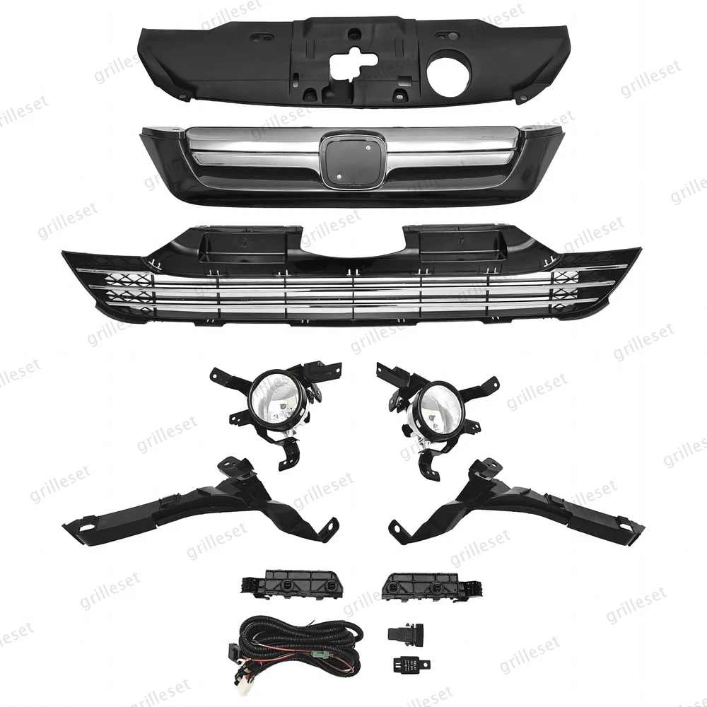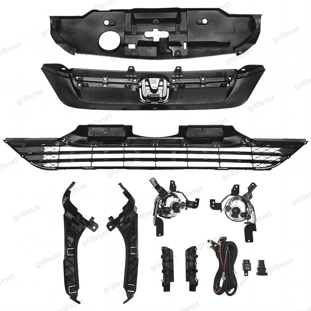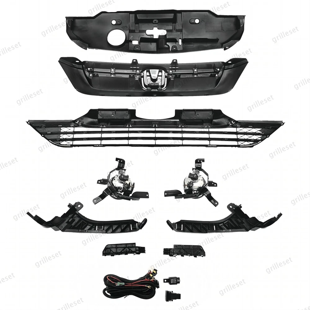 Fit for : 1 Set (9 PCS) Includes:(See more pictures for details) 1 Pc front radiator support cover 1 Pc front upper black grille with chrome trim 1 Pc front lower black grille with 3 strips chrome trim 2 Pcs front headlight brackets 2 Pcs front bumper brackets 2 Pcs fog lights assembly with bulb Item OE number : 71128-SWA-003ZA;71121-SWA-003;71123-SWA-000;71190-SXS-A00;71140-SXS-A00;71198-SWA-003;71193-SWA-003;08V31-SWA-1M002;08V31-SWA-1M001 Installation : Perfect fit direct replacement, no modifications required. Installation manual not provided; we recommend professional installation. Item's-Features : Superior quality kit 100% brand new Made from high-quality materials Excellent replacement part, no modifications needed Other parts fit for