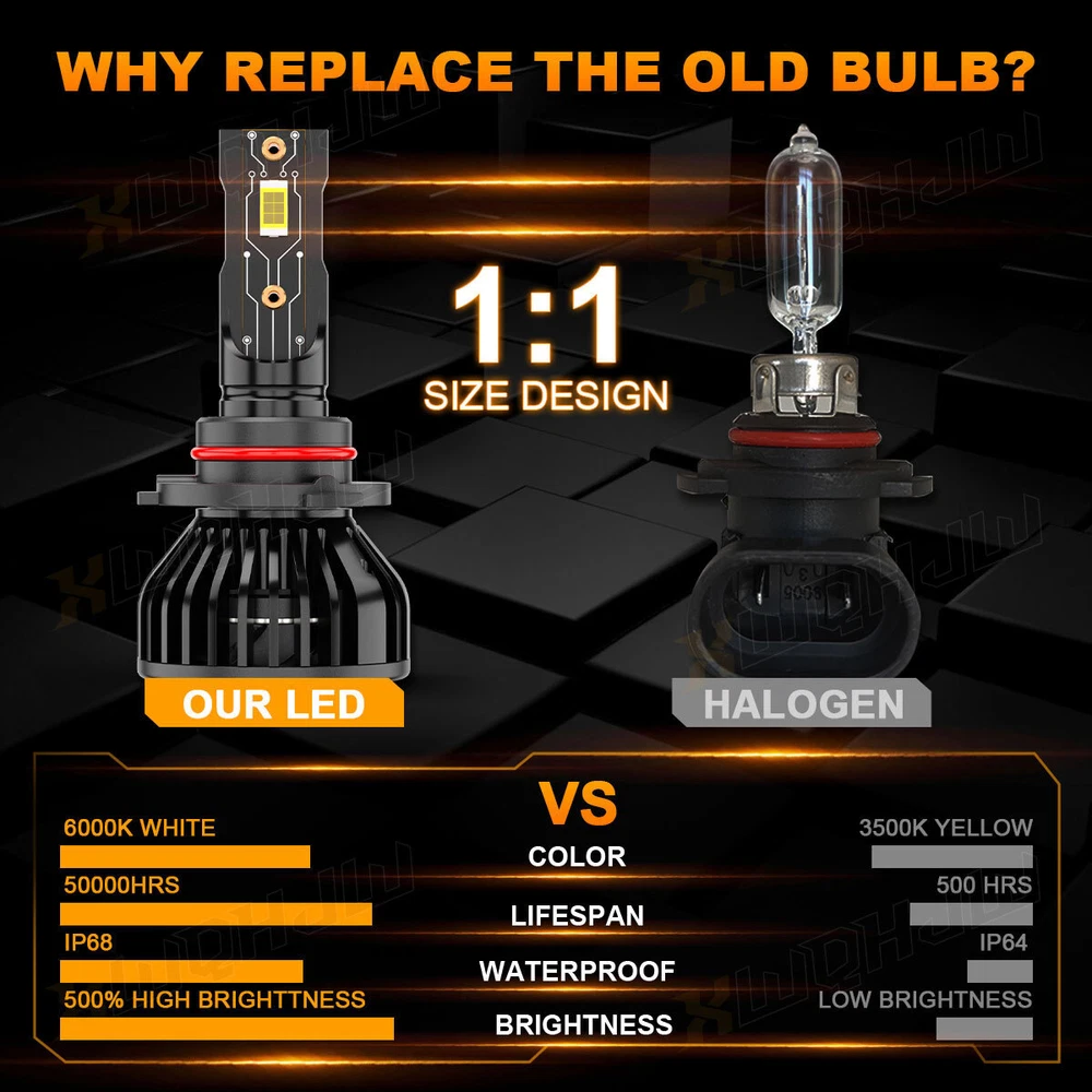 The XWQHJW NEW Super LED Bulbs stand at the zenith of automotive lighting. With an extraordinary 40,000 lumens output, they ensure unmatched brightness and road visibility. Using the advanced CSP LED chip technology, these bulbs symbolize the forefront of LED lighting performance. Two Aces——What Makes the XWQHJW Bulbs Invincible? 70W 40000LM Top Tier CSP LED Chips ● 70W High-power LED Chip ● 40,000LM Ultimate Light Output ● 46% High Light Efficiency (Ordinary LEDs only have 25%) ● Anti-light decay, after 50,000 hours of lighting test, brightness only reduced by 2%. Low Temperature Signify Stability and Safety ● The only triple copper tube heat dissipation design on the market ● After 30 minutes of daily commuting, the chip temperature is only 92°C/197.6°F. The same power LED from other brands has a temperature of 108°C/226.4°F. Halogen bulb temperatures exceed 700°C/1292°F. How Do I Know These LED Bulbs are Right for My Vehicle? Plese check the size on Ebay fitment guide system ( Ebay filter system may not be up to date. ) Plese check your vehicle user manual or original halogen bulb, the part number is marked above. Plese search "automotive bulb look-up" online, and enter your vehicle info to find out the correct size. Or in 'Customer questions & answers', write down your vehicle year, make, and model, we will help you check. XWQHJW Q&A RETURNS SHIPPING PAYMENT CONTACT US XWQHJW Q&A Q1: Will this bulb fit my vehicle? A1: We can match almost any vehicle to one of our bulb sizes. eBay only lets us include some vehicle fitments per listing, but if your vehicle does not show up on the compatibility table at the top of our listings, welcome you to contact us for free consulation before purchasing a product. Q2: My item has not arrived, what's taking so long? A2: Sometimes items take longer than expected, especially if it’s going far or to rural area. Check with your post office to see if your item has been held up. Sometimes Royal Mail will not update a tracking number until it has arrived at its destination. If your item still don't arrive after a few days, let us know so we can double check for you and help solve it asap. Q3: My bulbs won't fit, help! A3: Special bulb holder may be required. See if you can take the holder from the stock bulb. If not, let us know. The bulb size may be wrong, double check the item you received with the item you ordered. Do you have an aftermarket lighting housing? These may not be perfectly fitted for aftermarket bulbs and will require some manual modifications. Q4: Neither side lighting up? Both sides flicker, hyper flash, or work inconsistantly. A4:Check the light fuses, and then check the ballast plugs to insure correct installation. If this doesn't work, there may be a voltage problem with the vehicle. You probably just need a relay or capacitor. Even though some bulbs are builtin resistors, they may still need a decoder. Q5:Why after installing the bulb, there have the flicker/error message/radio interference? A5: Some car's system is sensitive to the led bulb, we can send the decoder/resistor to help you solve the problem. RETURNS (1) We offer 60 days return policy. Please contact us within 60 days t from the date you receive your order if you have any issues with the product or want return .Refund will be send after we got your resend package. (2) All returned items should be in the original packaging , return tracking information should be provided. (3) Buyer is responsible for return shipping cost due to the problem not caused by item quality itself. (4) Items to be returned must be in resalable condition, for example: Item do not fit your vehicle perfect The item arrived be broken Parcel Lost If you have problems with the above issue, please Contact Us immediately. SHIPPING Domestic(U.S.) Shipping All items will be shipped out within 1 or 2 business days with cleared payment. Please included your phone number to the payment note for prompt and secure shipment. Tracking numbers for all orders are added to eBay once they have been dispatched; please login to eBay to find the tracking information for your order. Most items are shipped USPS first class mail, delivery usually takes just 4-6 business days. Additionally, we do not ship on weekends. International Shipping Puerto Rico: As we use standard USPS, PR is considered a US territory for mailing purposes, and can be selected as such at checkout. Shipping will be domestic U.S. rates. For Canada & Mexico or other countries We use the eBay's Global Shipping Program. Once you’ve paid for your item, we'll send it to the global shipping center within 1 or 2 business days. From there, it's sent to you. Lost Shipments For non-signature required shipments: If the tracking information that corresponds to a shipment confirms that the product was delivered to the intended address, the customer assumes all responsibilities and liabilities for the receipt of the shipment.The Customer is the one who provided XWQHJW with the ship to information, and in doing so absolves XWQHJW of any liabilities for missing or stolen deliveries. Customs Fees for International Shipping Shipments are marked with the value of your purchase price. International customers are responsible for any tariffs or customs fees that may be associated with their shipment. Please check your country's laws and regulations before your purchase. PAYMENT Variety of payment methods are accepted, such as credit, debit, gift cards, Apply pay, Google Pay, Paypal and Paypal Credit. We only ship to the confirmed shipping address given with the payment. If you want to ship to other address, please change your shipping address before you make payment. To avoid initiating an unpaid item claim, please pay within 7 days. CONTACT US If you have ANY questions with shipping, product or service, please Contact Us first before leaving feedback/write a review or filing a return case. We will solve the problem! We always put our customers firs
