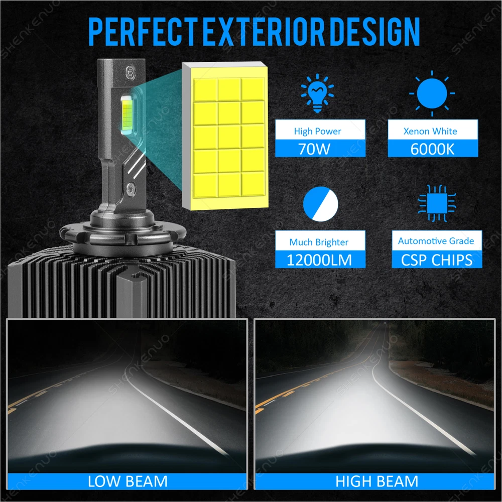 Car Light Bulb GJ Series Bulb HK Series Bulb BY Series Bulb C6 Series Bulb C9 Series Bulb S1 Series Bulb S2 Series Bulb F2 Series Bulb X7 4Side Series Bulb K9 4Side Series Bulb X15 4Side Series Bulb HID Series Bulb Other Type Bulb(Fog,DRL...etc) V5 4Side Series Bulb DF Series Bulb 6 Side Series Bulb Z4 Series Bulb LX Series Bulb DSX Series Bulb K9L 4Side Series Bulb LED Light Strip Work Light Bar Protection Sticker Car Interior/Exterior Trim Tool Promotion Other Item Description 。 *PLEASE NOTE SOME VEHICLES MAY NOT BE LISTED IN THE COMPATIBILITY CHART, IF UNSURE MESSAGE US FOR COMPATIBILITY OR COMPARE TO YOUR EXISTING BULB. *Replace for factory HID / xenon bulbs only. Do not fit for halogen bulbs or LED bulbs LED Headlight Kit D1S Replace Factory HID Headlight High&Low Beam Bulb / Low Beam Bulb 70W/set 12000LM/set 6000K White 1x Pair(2pcs) (This kit is for vehicles with factory HID bulbs, it will not work with vehicles with factory Halogen) 1 .HIGH BRIGHTNESS : Lastest CSP TX3570 led chips with 6000K cool white light ;400% brighter than your stock Halogen headlights. technology to ensure a perfect beam pattern without any dark spots or foggy light. 2. POWERFUL HEAT DISSIPATION : Aluminum heat sink and 12,000 RPM Turbo Cooling fan with high efficiency colling to ensures your LED Headlight bulbs Over 50,000 hrs of brilliant continuous light. Control driver has intelligent control chip,can monitor fan speed for optimal heat protection and performance and provide wide voltage,constant current IC. 3. EASY INSTALLATION : Can be installed in 10 mins. No relay. No capacitors. No extra wiring. Plug and play. 4. IP68 WATERPROOF : Water-proof and heat-protected with integrated cooling chip and fan for heat dissipation. Rainproof driver, housing, and fan works even in extreme situations. Automatic short-circuit protection. Attention: If you are unsure your bulb type, please do remember send message to tell us your car make, model, year and other information which is helpful to check bulb type. 。 Shipping Policy Payment Method Returns Policy Shipping Policy 1) Item Located in US , We will ship all orders asap from our USA warehouse, All shipment will ship by UPS or USPS.Not include small package which less than $5. 2) Item Located in China ,We will ship from China Warehouse.( No service on Weekend and public holidays). 3) We will ship out all orders as soon as possible after payment verified, please allow up to 1-4 business days for delivery. 4) Delivery time within the U.S. is usually just 3 to 6 business days, however in rare cases it could take 6 to 7 business days. Why Choose the US Stock? 1. Us Local Shipping, No Extra Customs Cost to the US. 2. Fast Delivery: 3-6 Working days Delivery. 3. Best After-Sales Service!!! Payment Method We accept PayPal only. Payment must be made within 4 days of auction closing. (Non-payment may result in a UPI